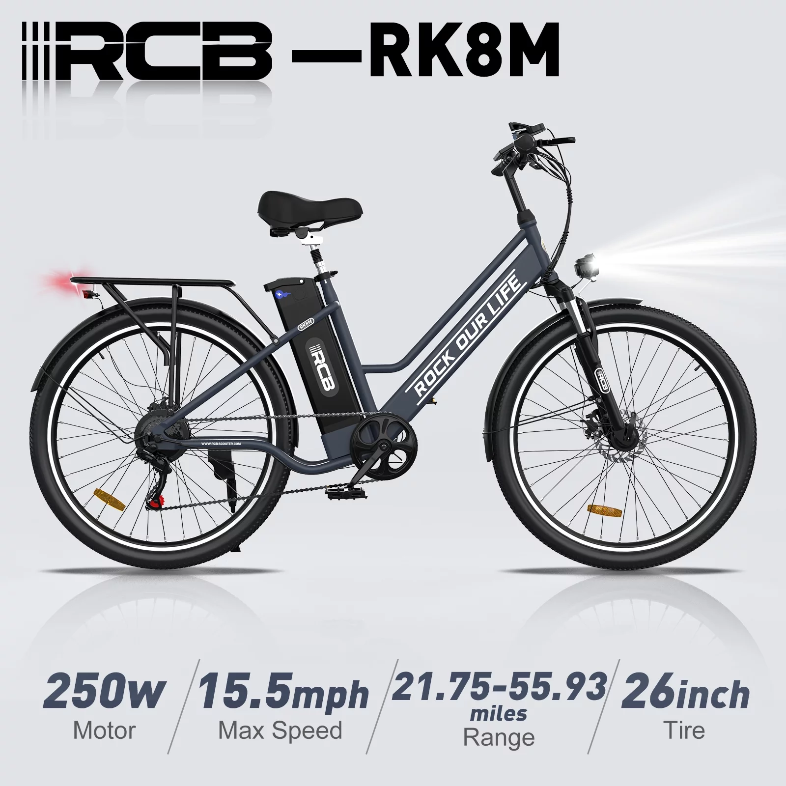 RCB 500W Electric Bike 26 Electric Bicycle for Adults with 36V/12 Ah Removable Battery, Electric Bicycle E-bike up to 56 miles for Man Woman