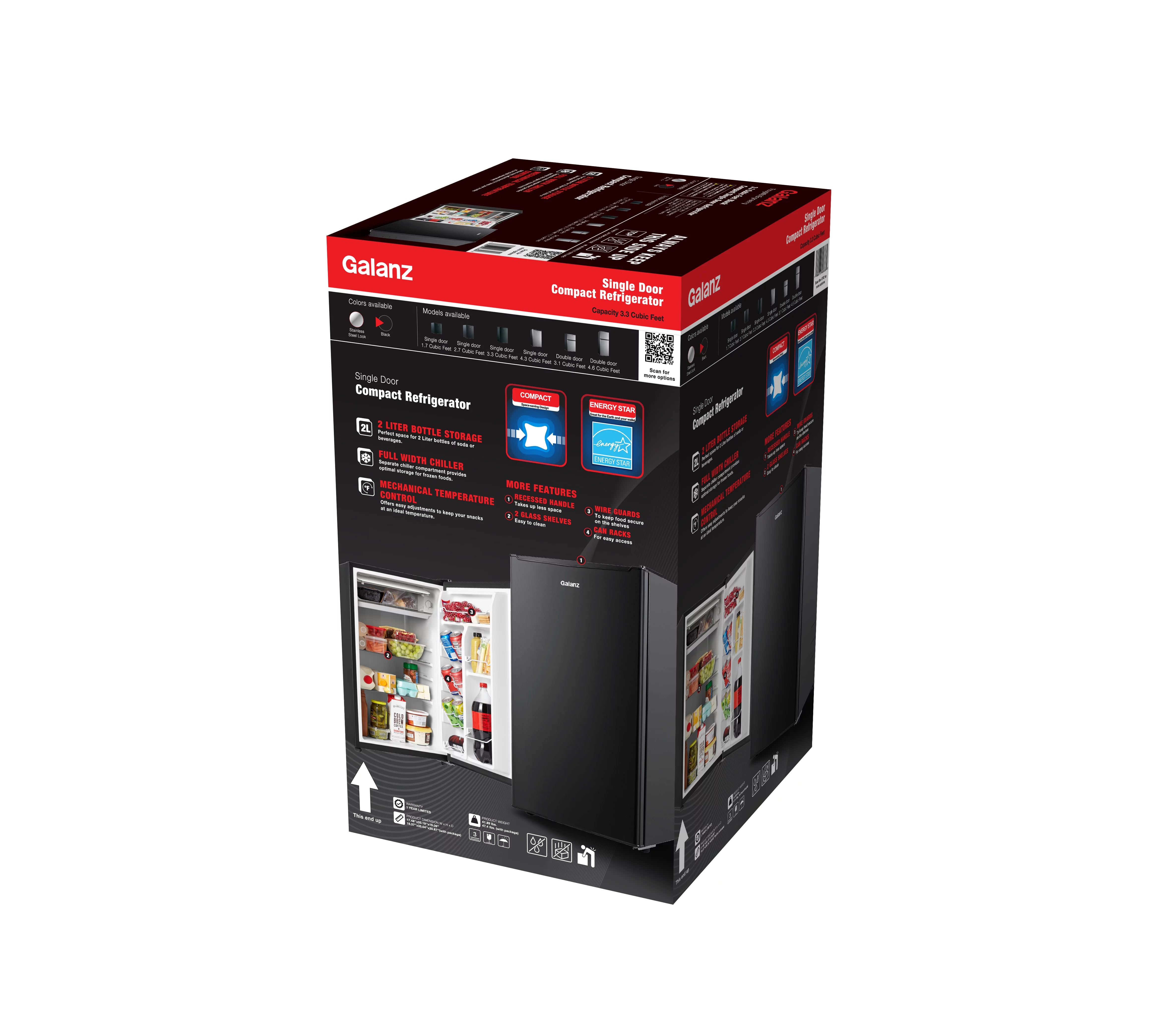 Galanz 3.3 Cu ft One Door Mini Fridge, Black Estar, New