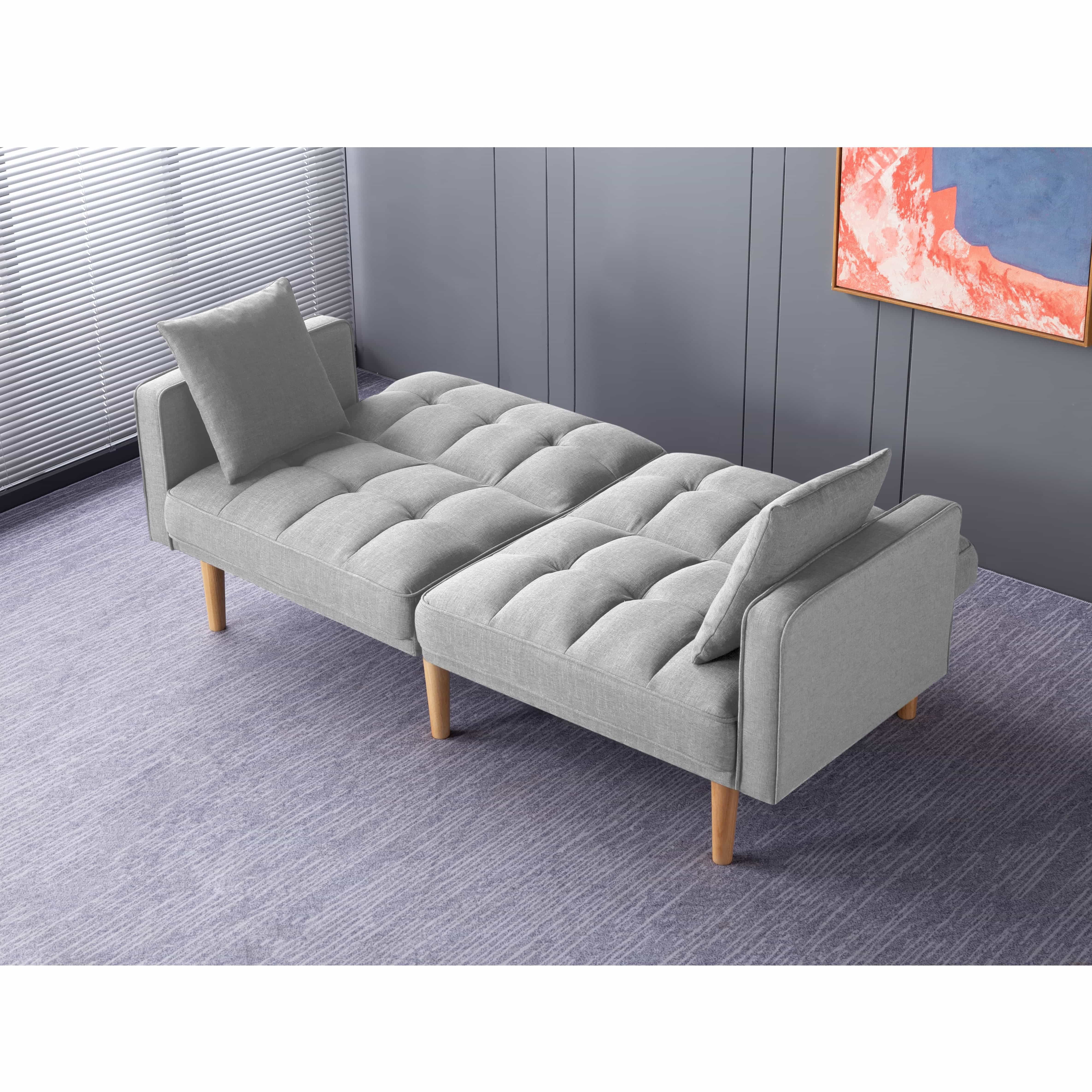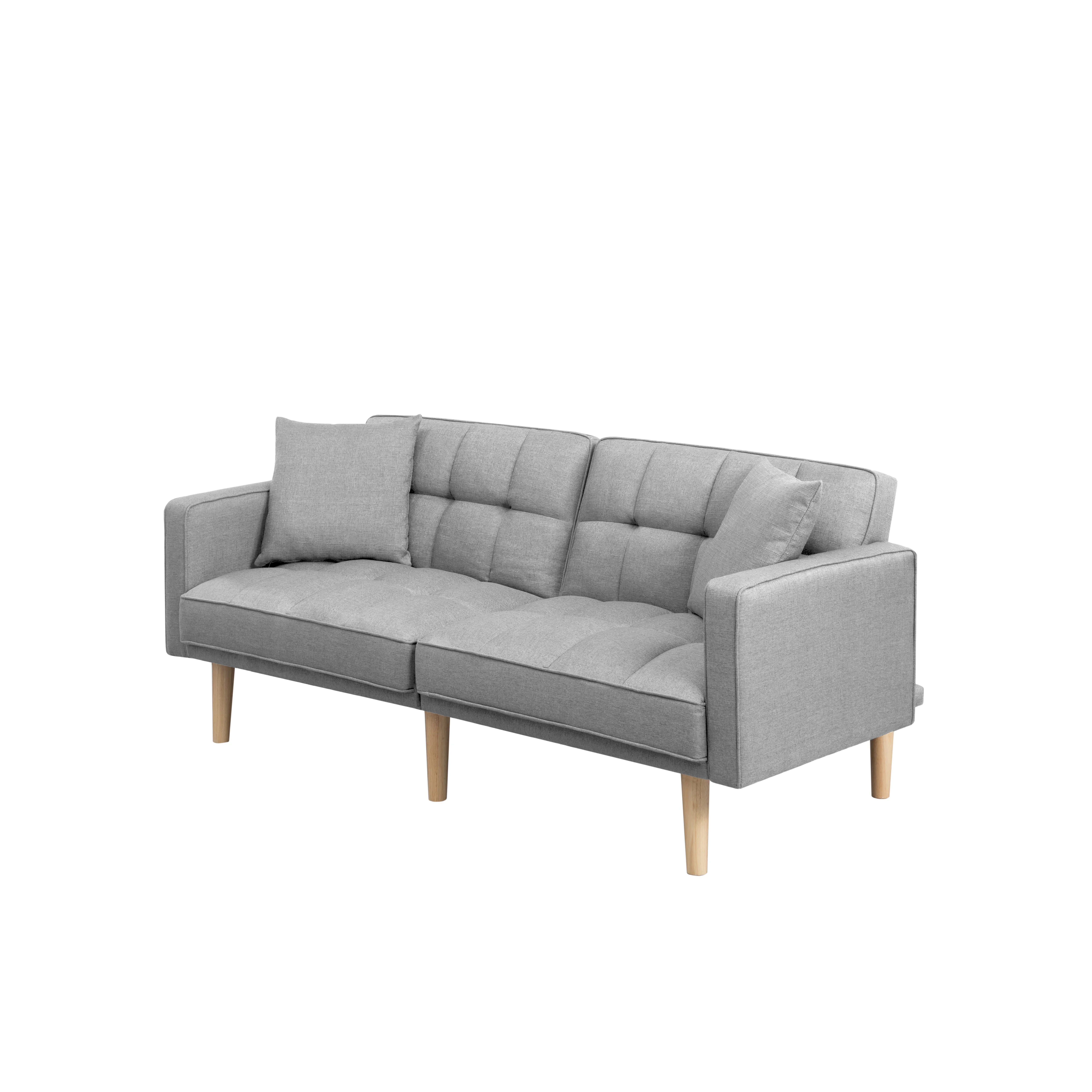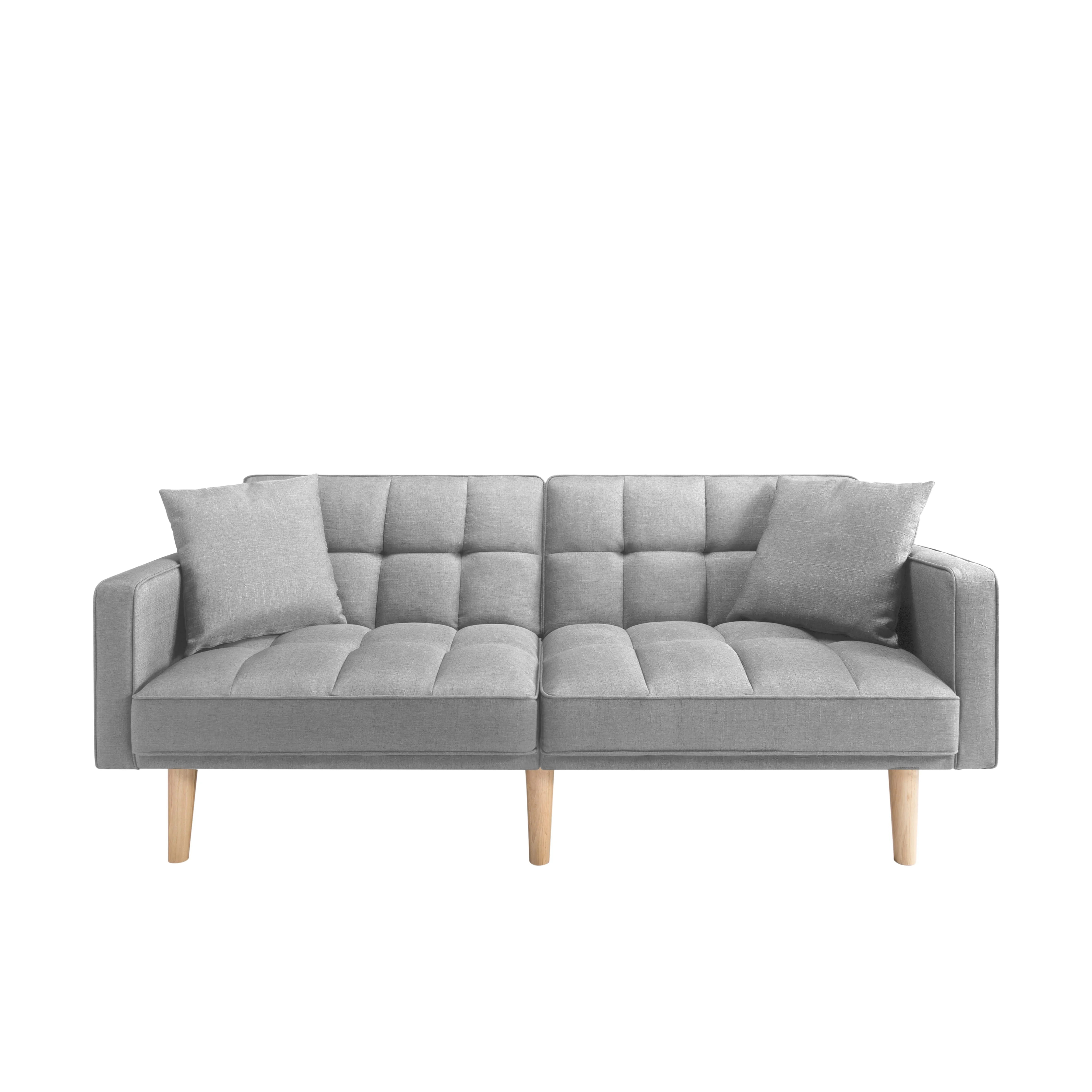 BSHTI 70.9 inch Futon Sofa Bed,Modern Adult Sleeping Chouch with 2 Pillows for Livingroom(Light Gray) - Curated Treasures Market