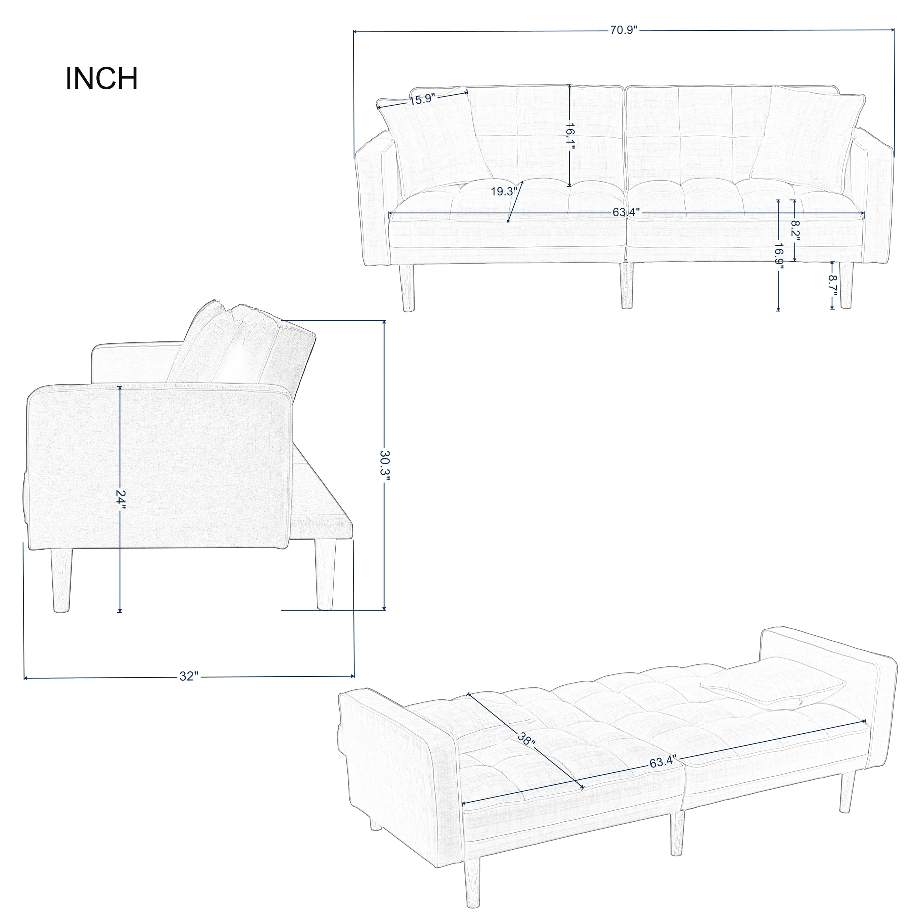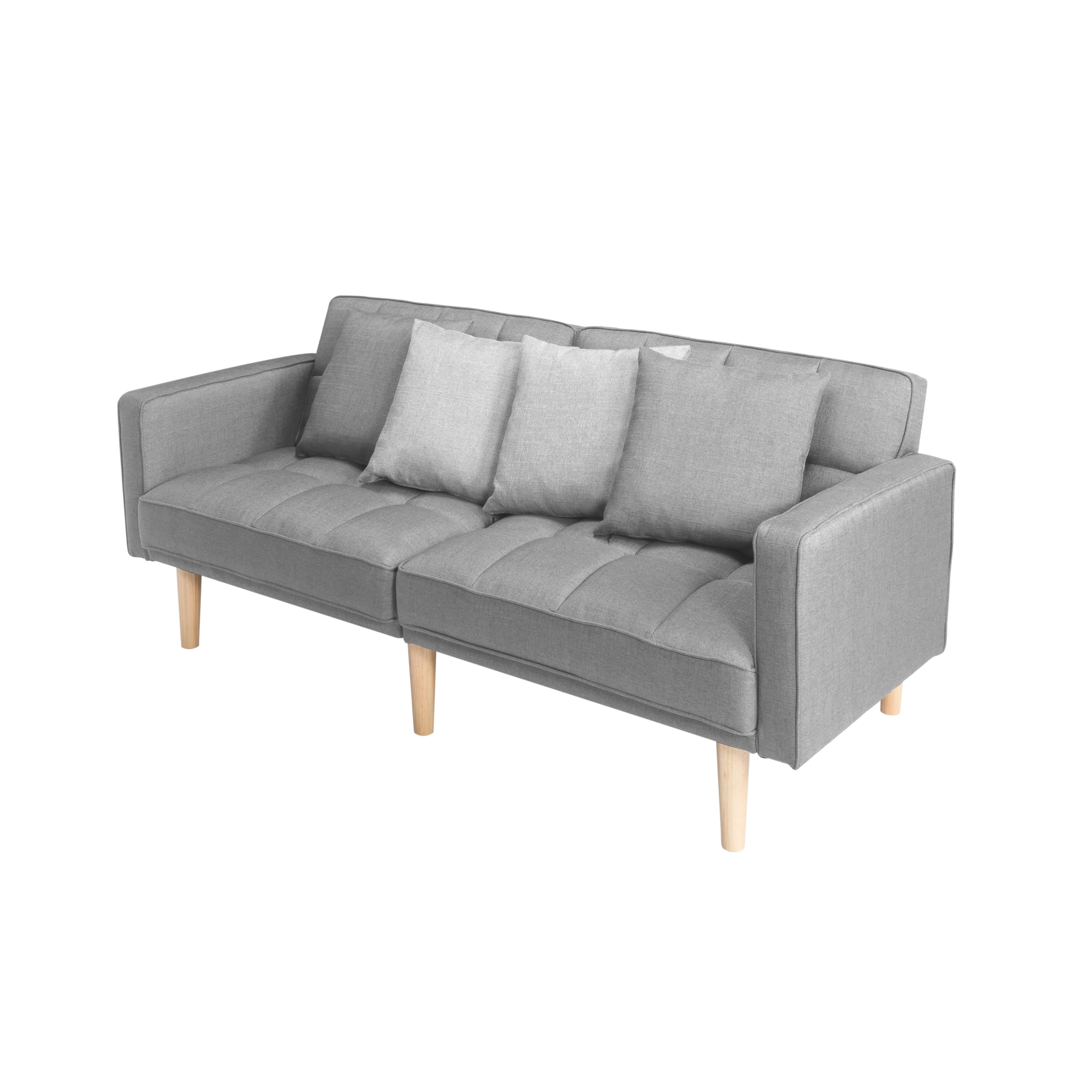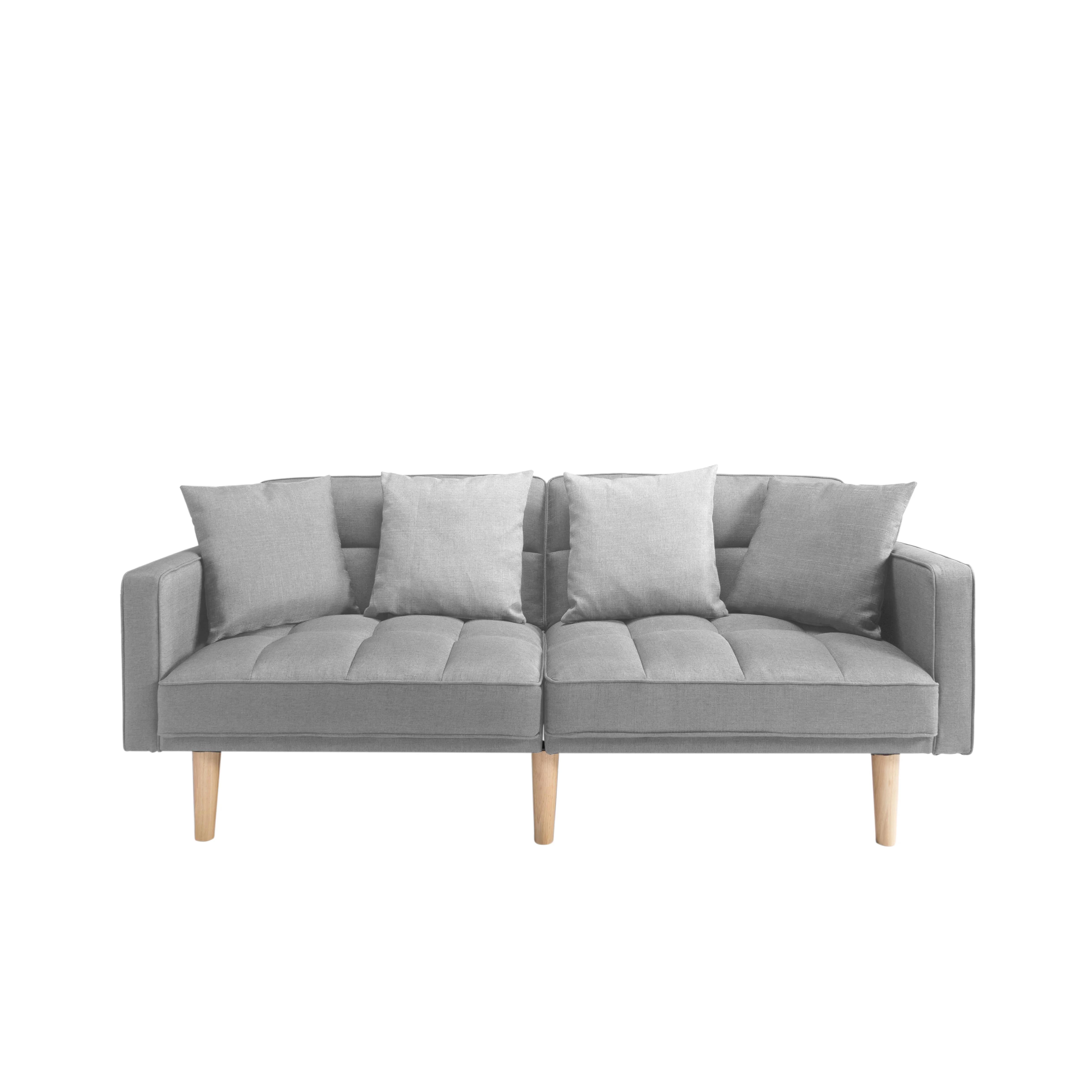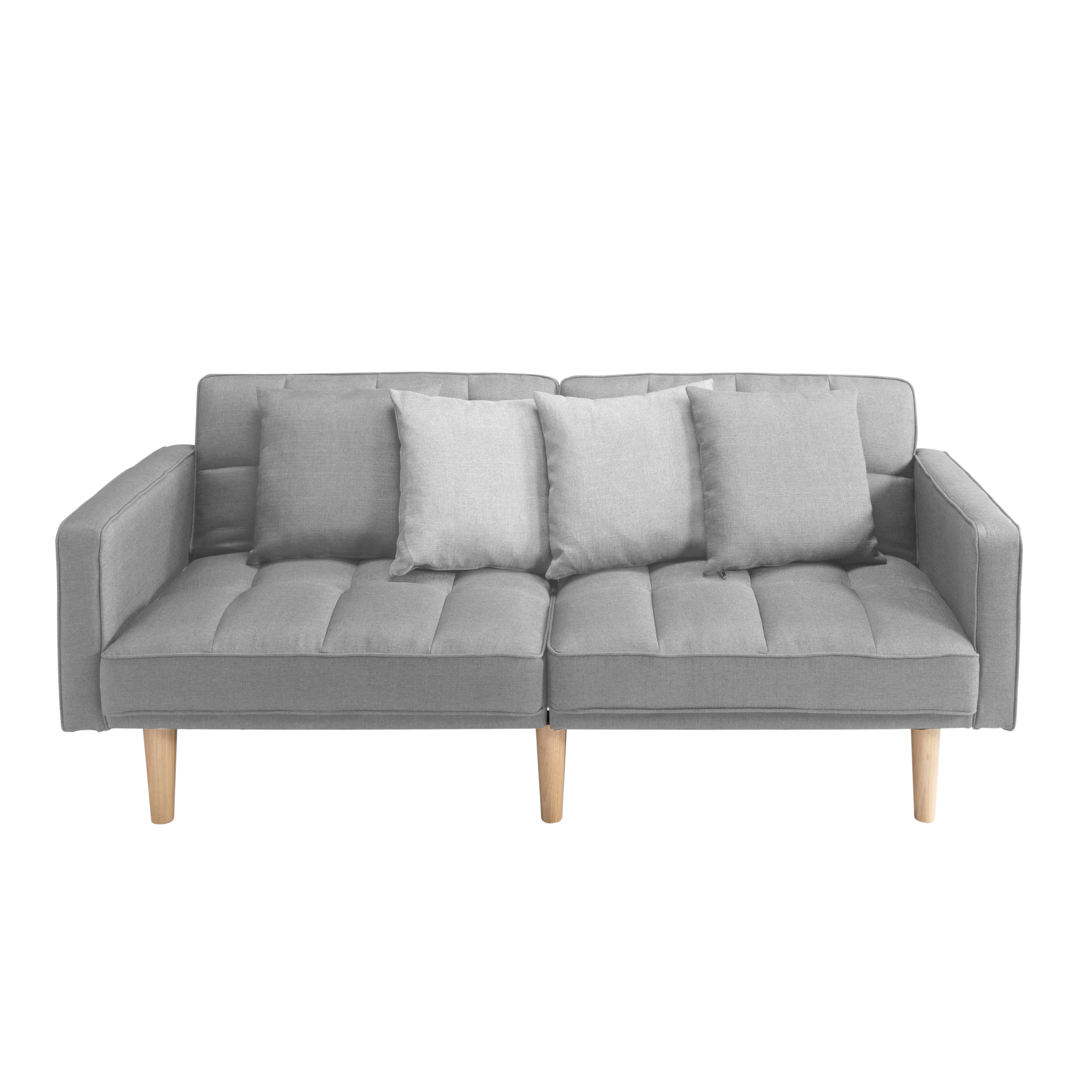 BSHTI 70.9 inch Futon Sofa Bed,Modern Adult Sleeping Chouch with 2 Pillows for Livingroom(Light Gray) - Curated Treasures Market