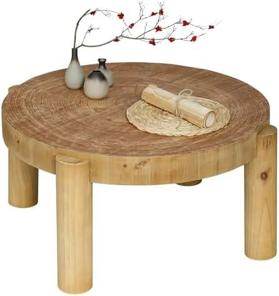 Round Wood Coffee Table - 31.5" Wooden Coffee Tables Living Room with Solid Pine Wood Legs and Natural Wood Veneer Mid Century Modern Circle Coffee Tables Natural Wood Color - Curated Treasures Market
