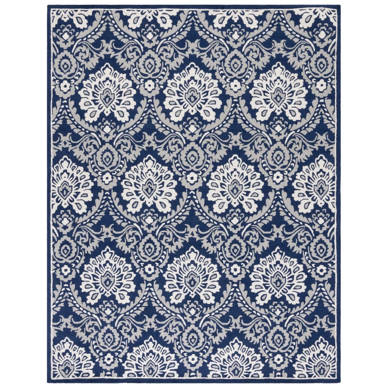 SAFAVIEH Blossom Travis Damask Area Rug, Navy/Ivory, 6' x 9' - Curated Treasures Market