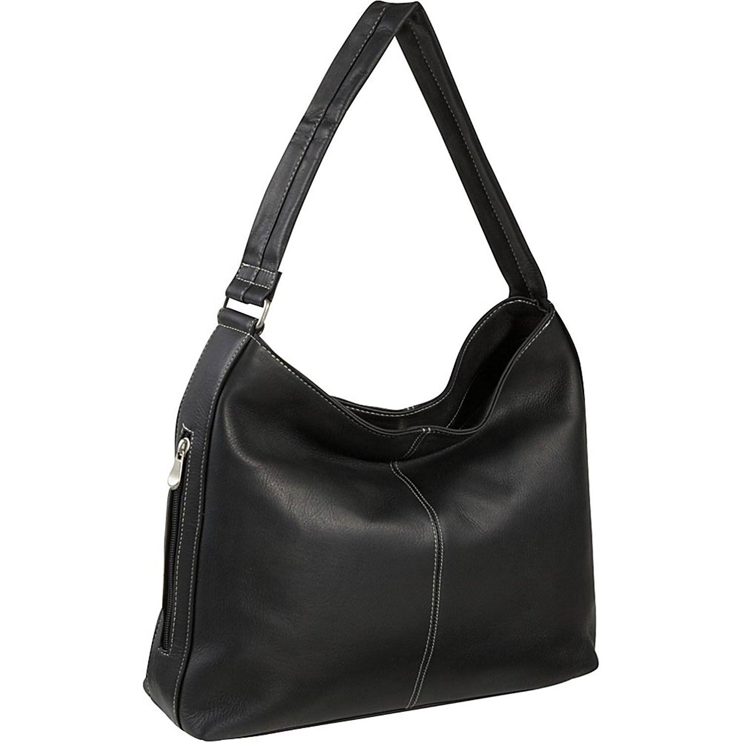LeDonne Leather Shoulder Tote with Side Zip Pocket - Black - Megean
