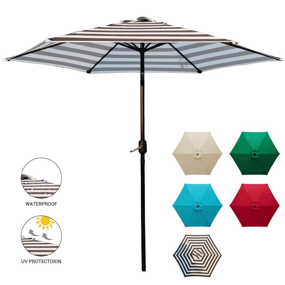 Laurel Canyon 9 ft. Market Outdoor Patio Umbrella with Push Button Tilt and Crank in Black and White - Avayadevconnect