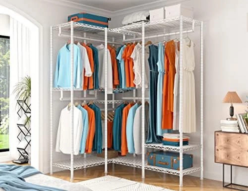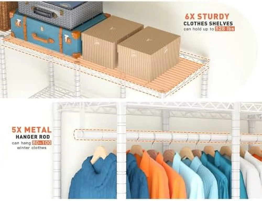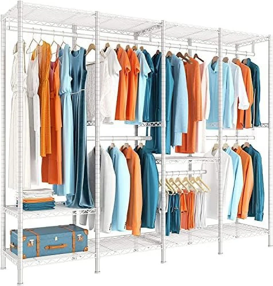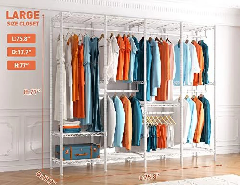 TJCGDTY Heavy Duty Clothing Racks for Hanging Clothes Load 985 LBS Portable Closet Metal Clothing Rack Free Standing Closet Rack Wire Garment Rack 15.8" W*17.7" D*77" H Whi - Curated Treasures Market