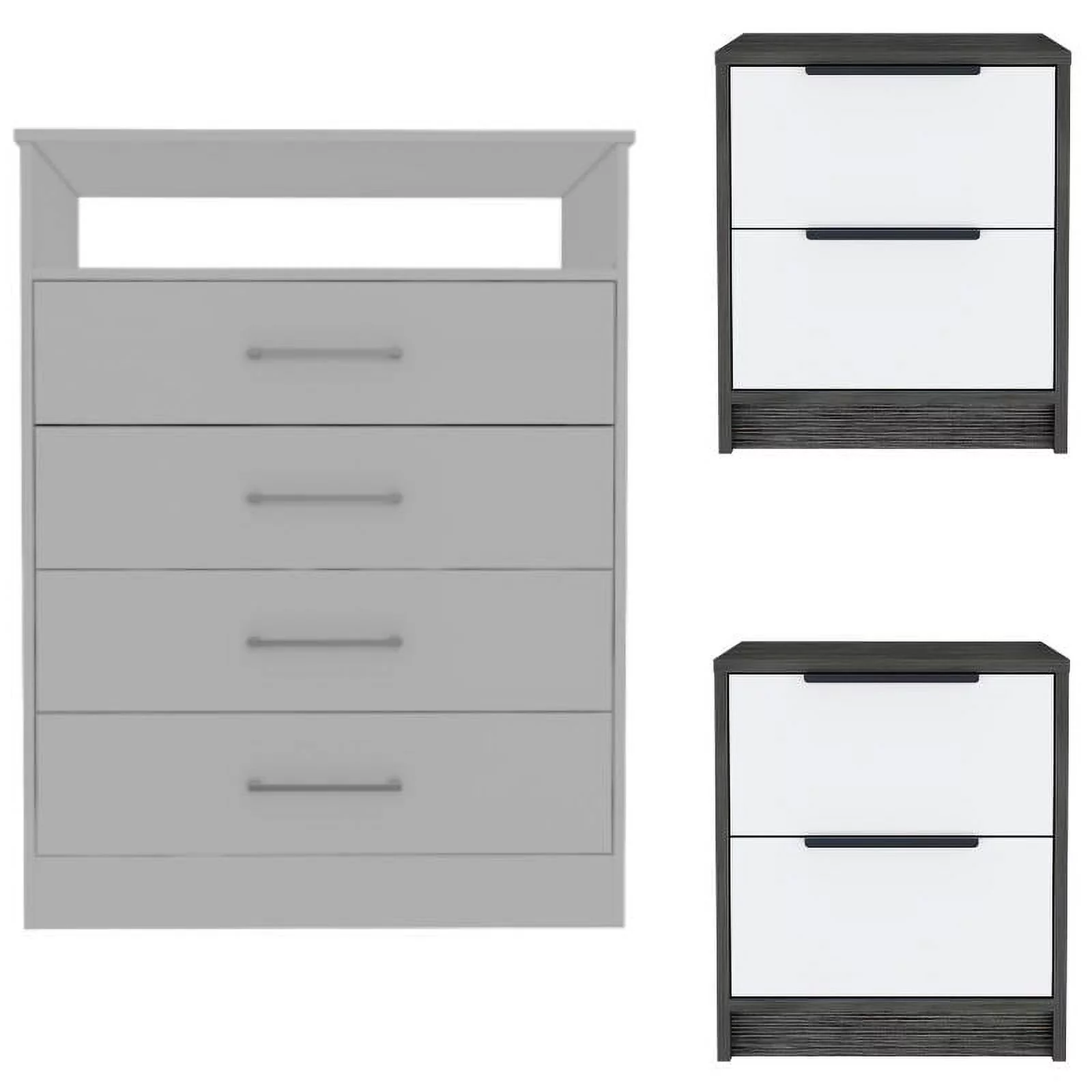 Home Square 3-Piece Set with 4-Drawer Dresser and 2 Night Stands For Bedroom