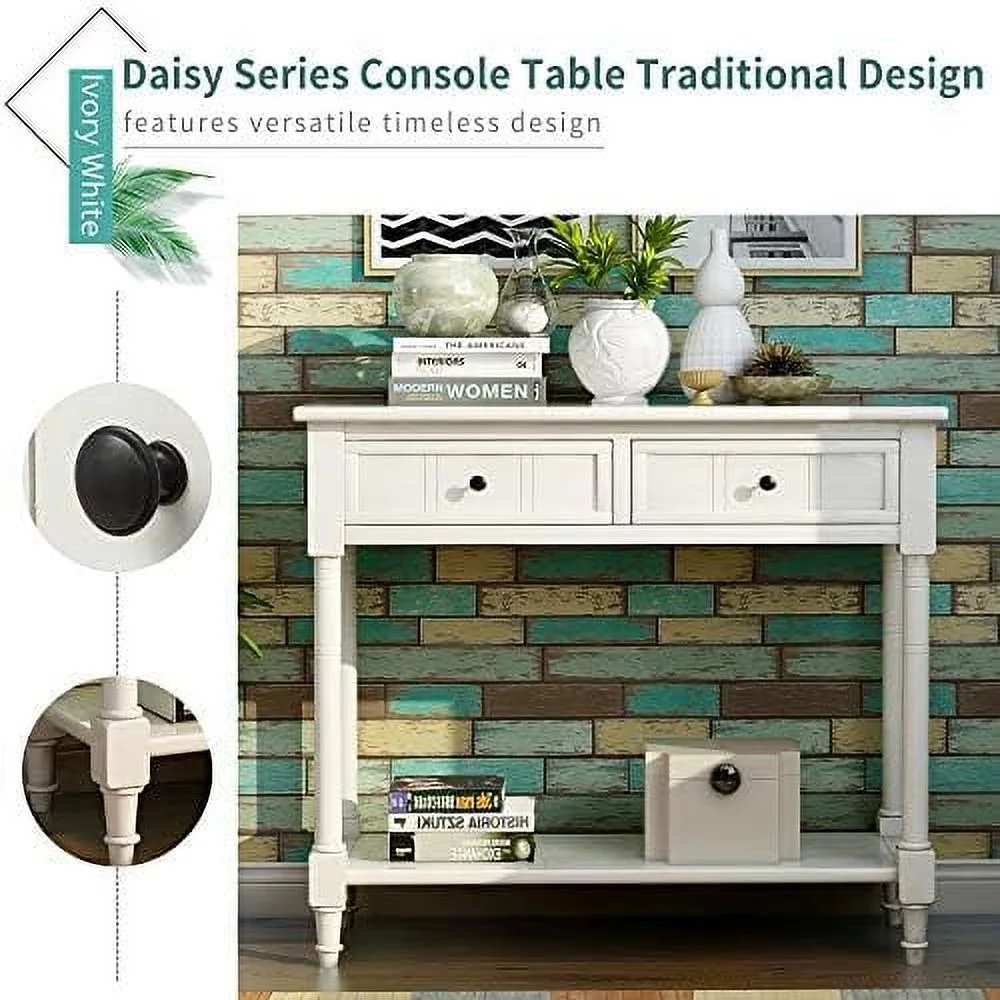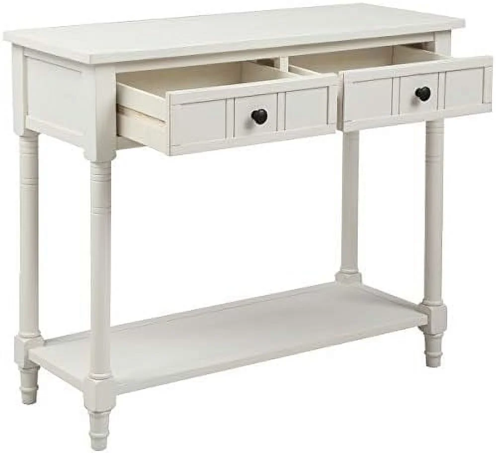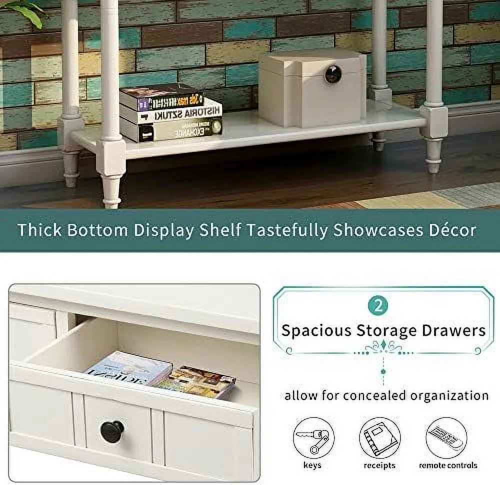 TJUNBOLIFE Vintage 2-Drawer Console Table for Entryway Entry Hallway Foyer Living Room Sofa Table Stand with Bottom Open 143lbs Weight Capacity (Ivory?White) - Curated Treasures Market