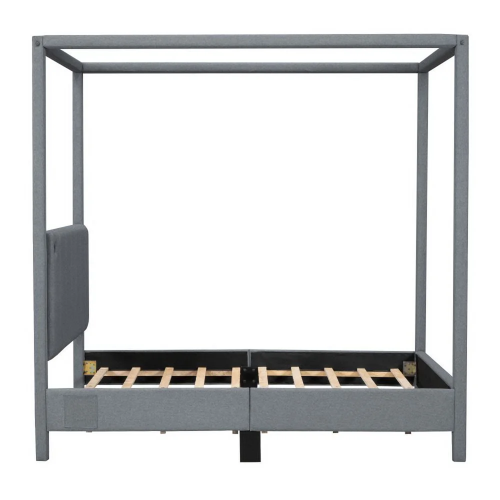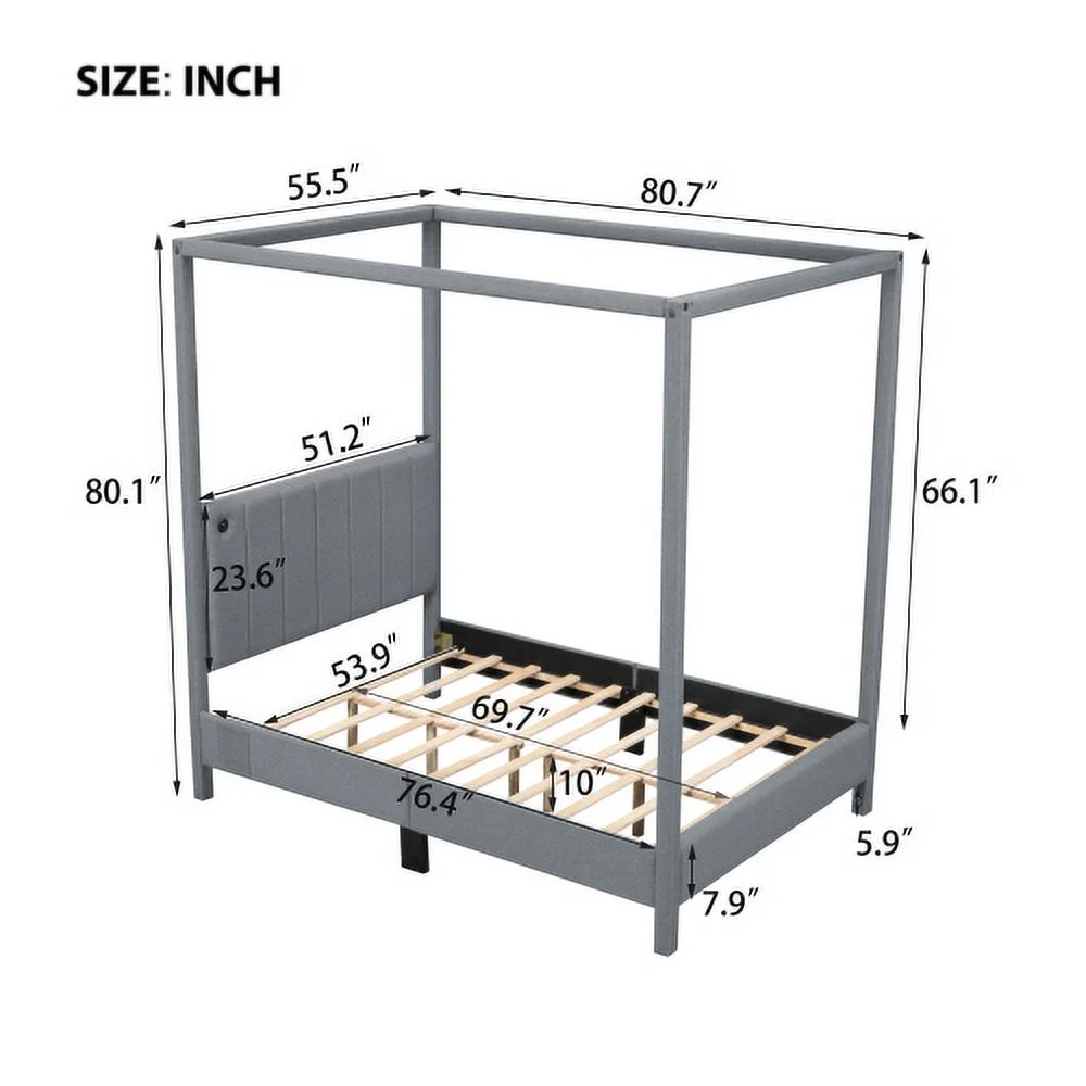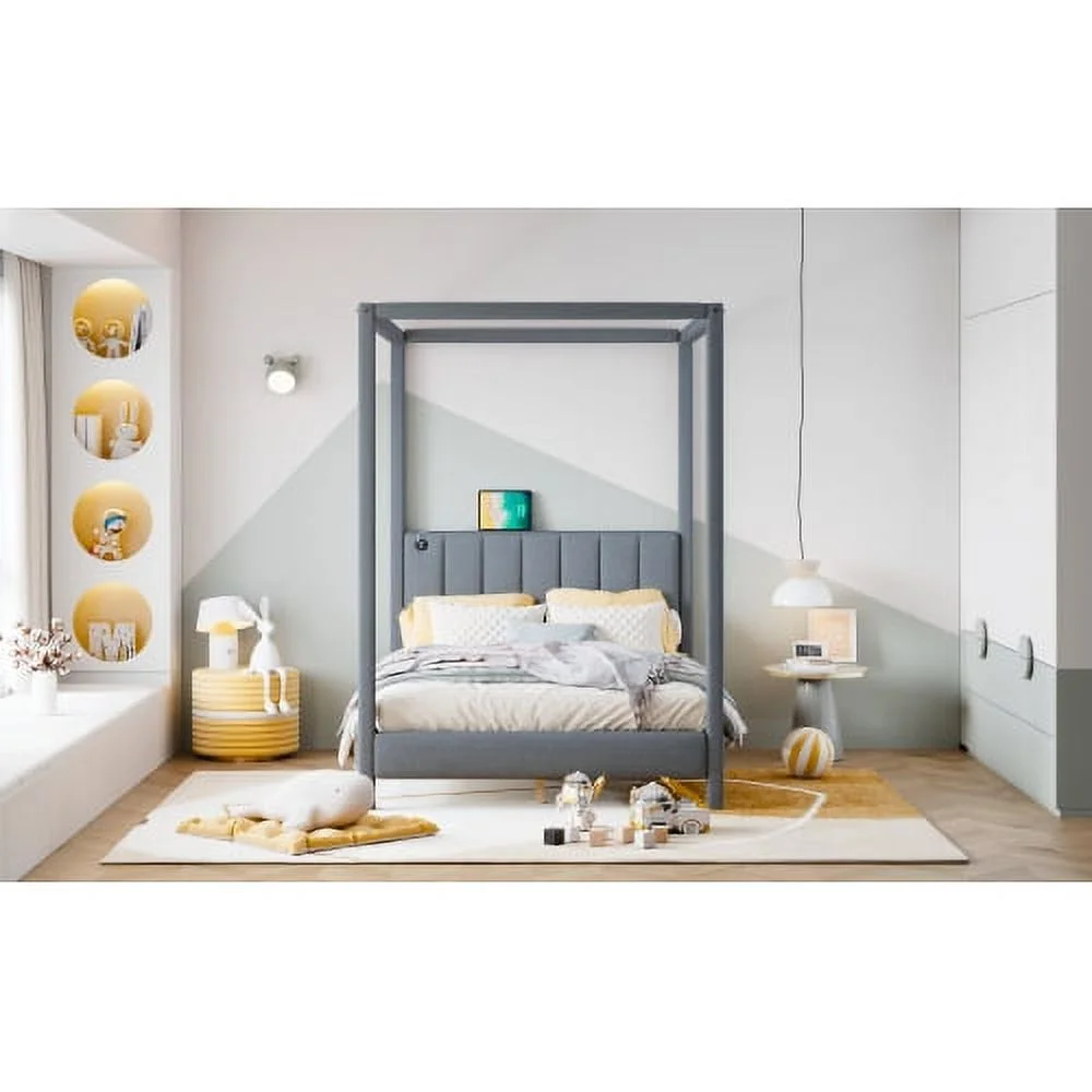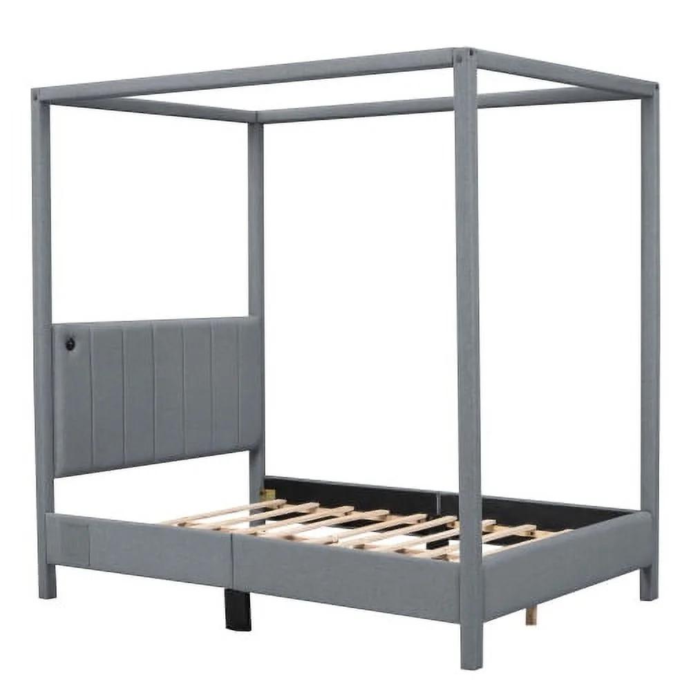 ZJbiubiuHome Full Size Canopy Platform Bed with USB and Type-C Ports Canvas Gray - Curated Treasures Market