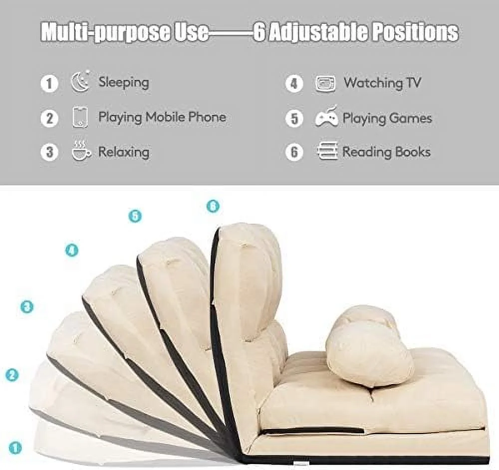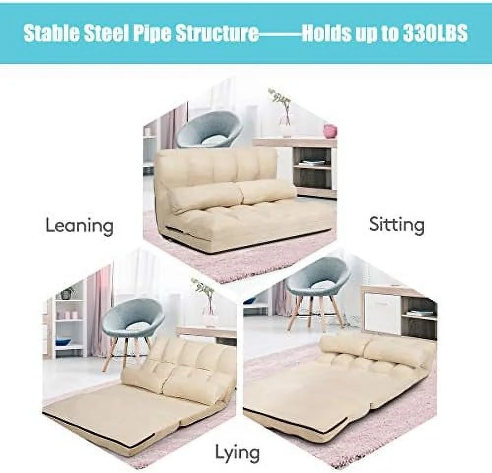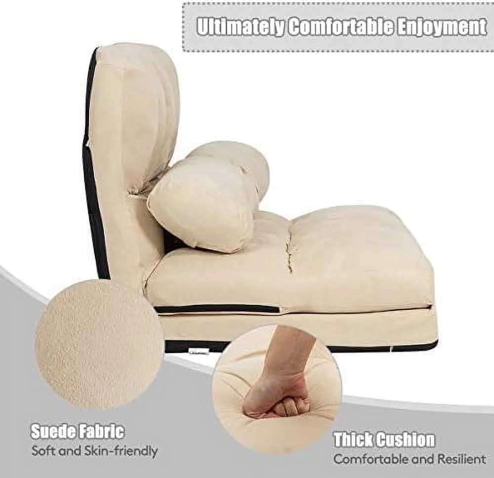 GVJMTKP Adjustable Floor Sofa Foldable Lazy Sofa Sleeper Bed 6-Position Adjustable Suede Cloth Cover Floor Gaming Sofa Couch with 2 Pillows for Bedroom/Living Room/Balcony (Blue) - Curated Treasures Market