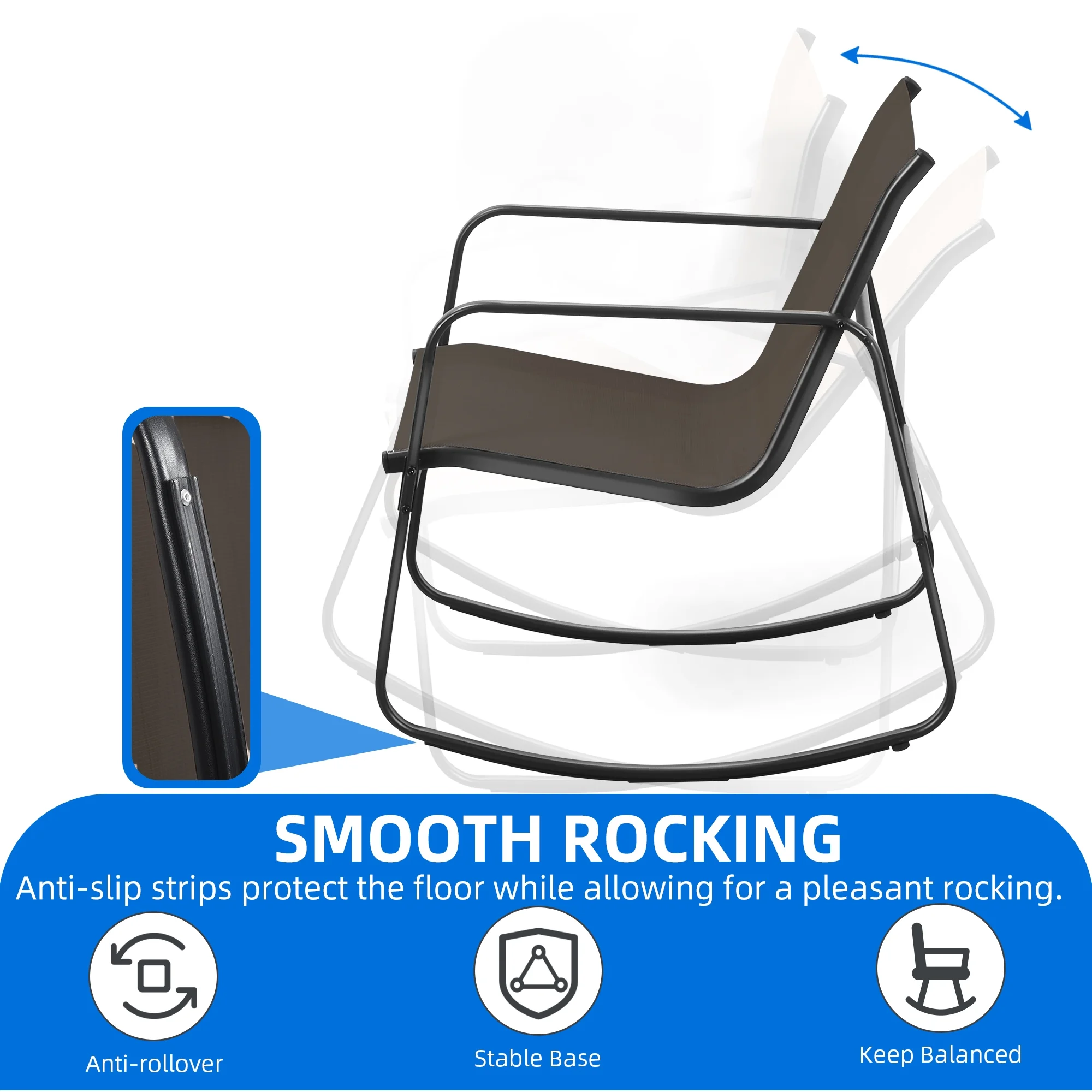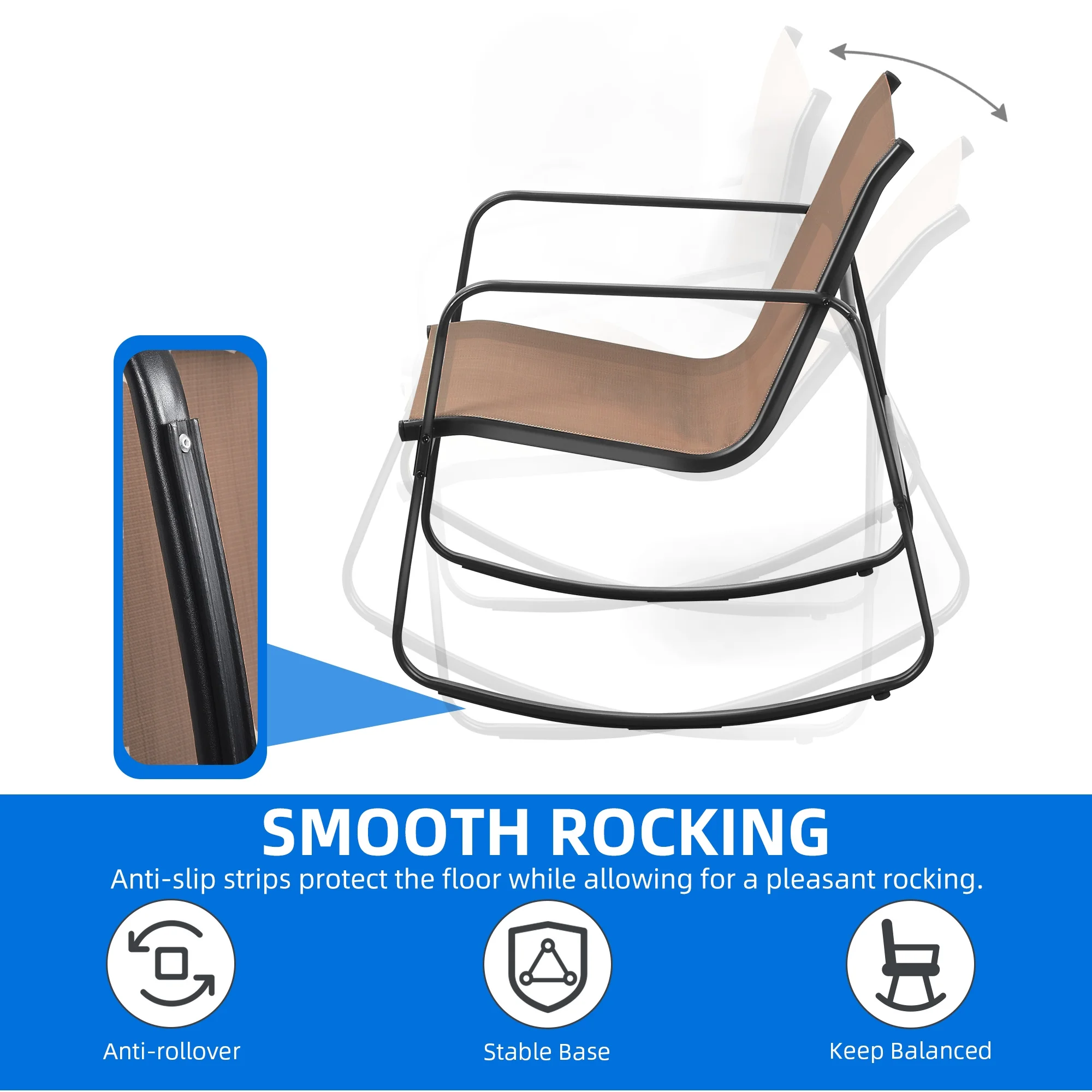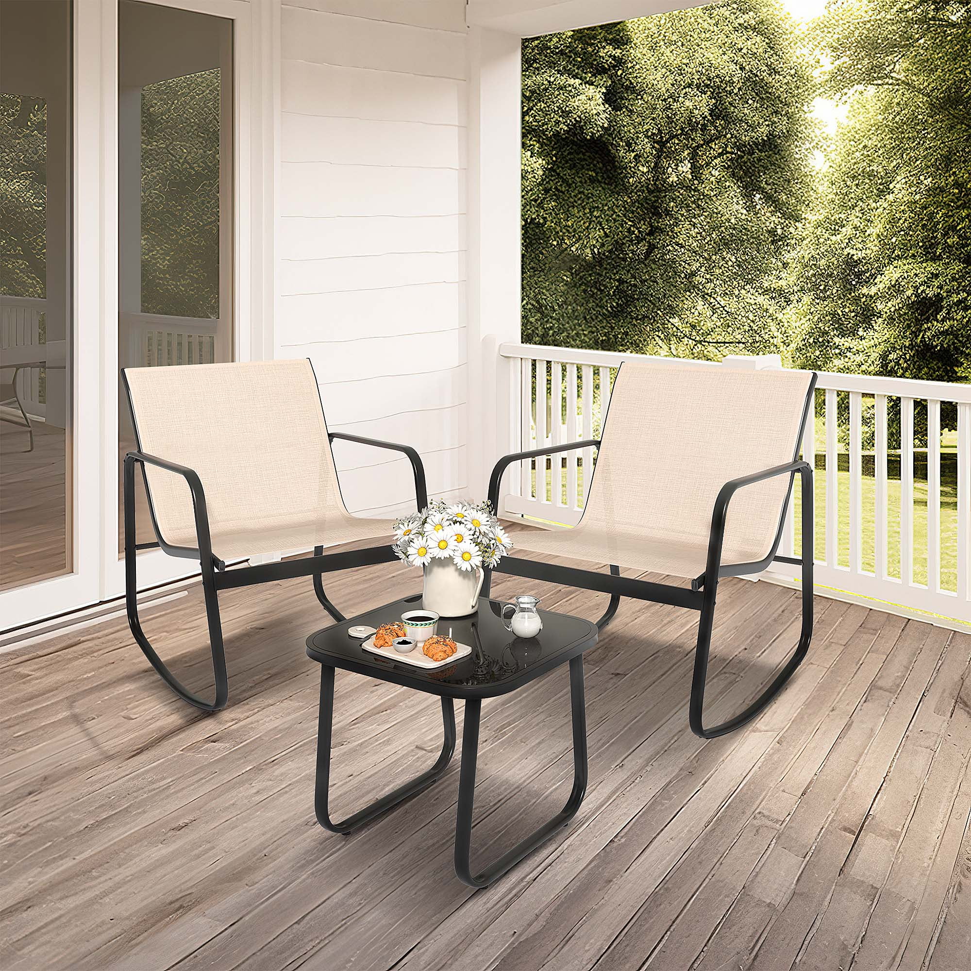 Dextrus 3 Pieces Outdoor Bistro Set - 2 Rocking Chairs with Glass Coffee Table ( Brown ) for Outdoor Indoor