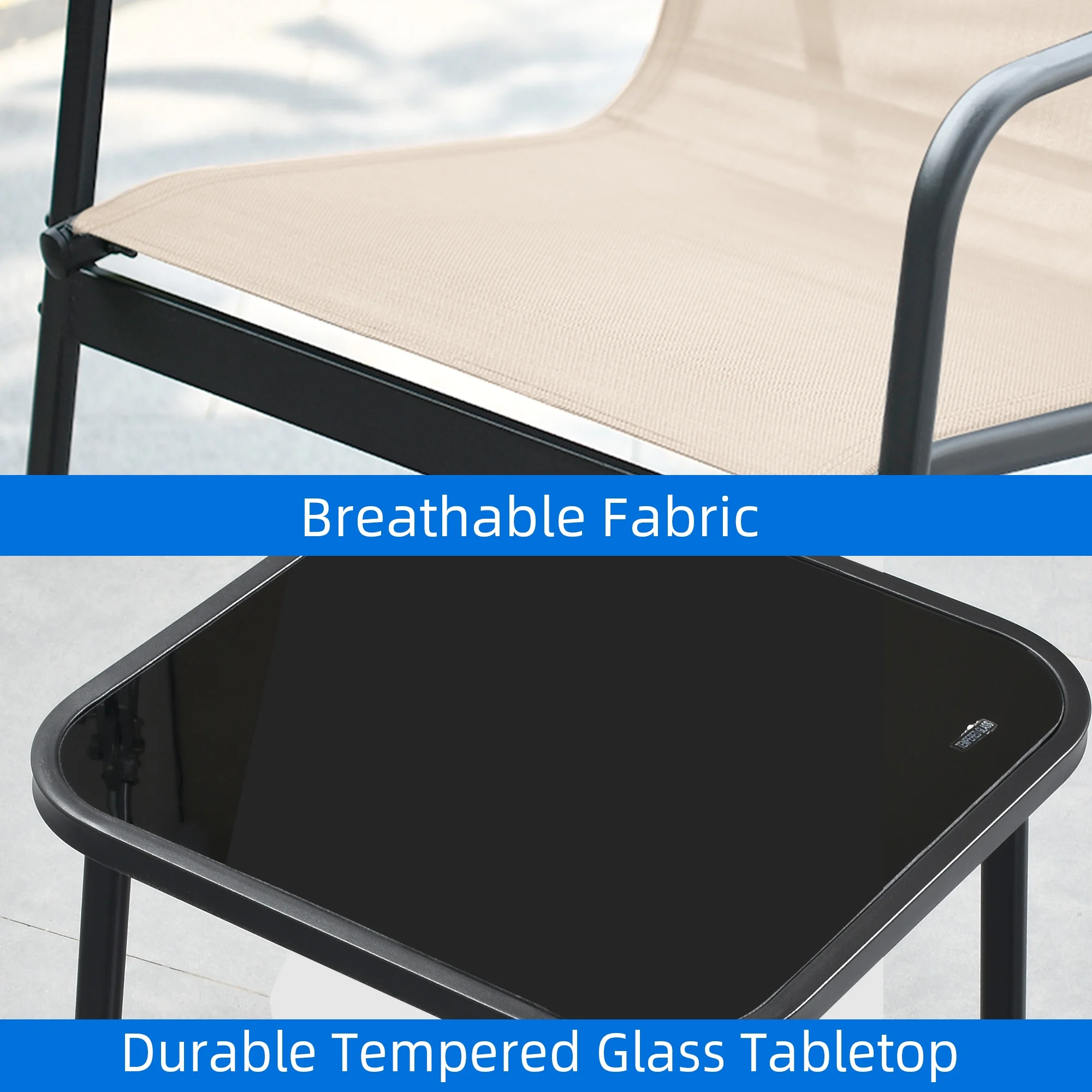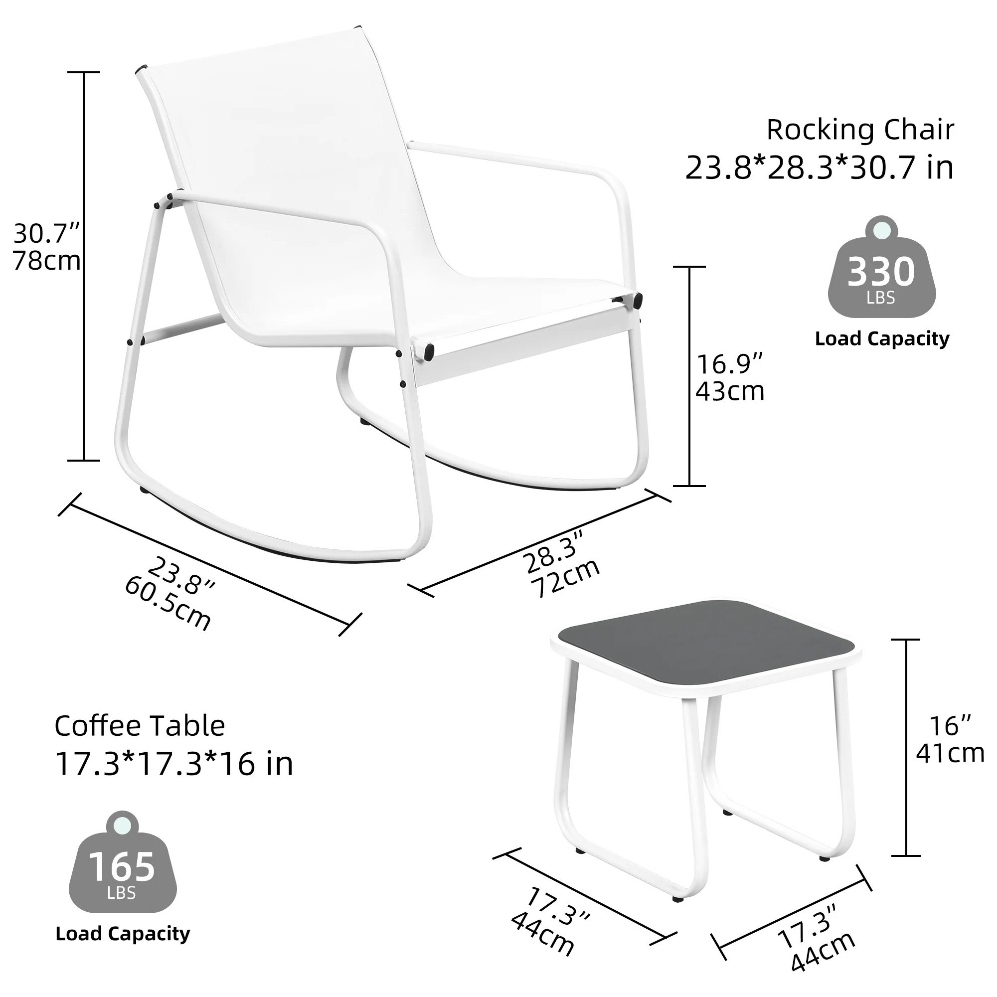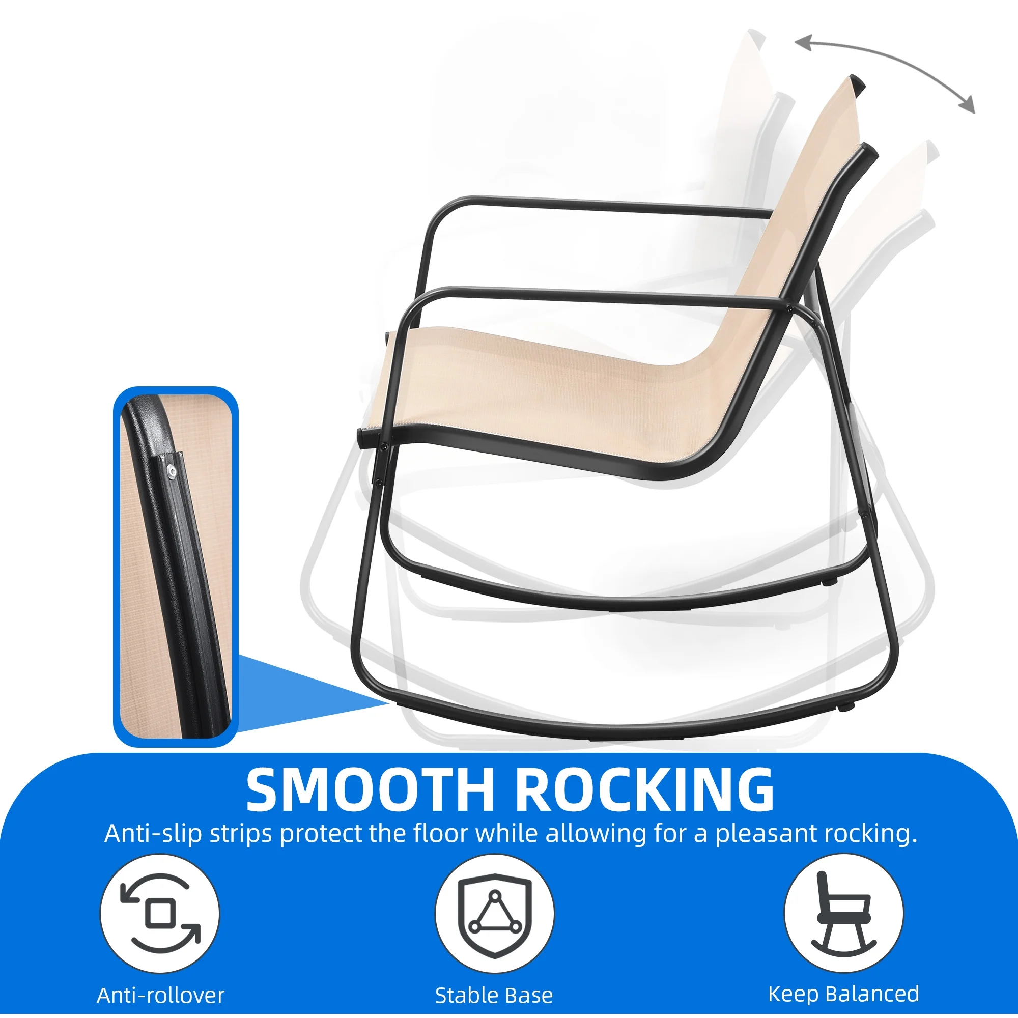 Dextrus 3 Pieces Outdoor Bistro Set - 2 Rocking Chairs with Glass Coffee Table ( Brown ) for Outdoor Indoor