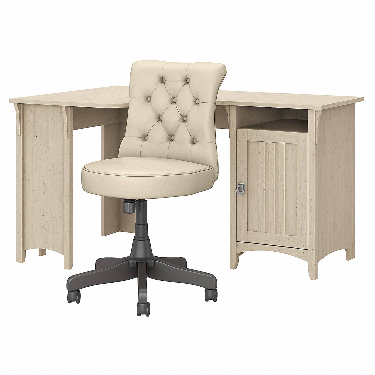 Bush Furniture Salinas 55W Corner Desk with Mid Back Tufted Office Chair, White - Megean