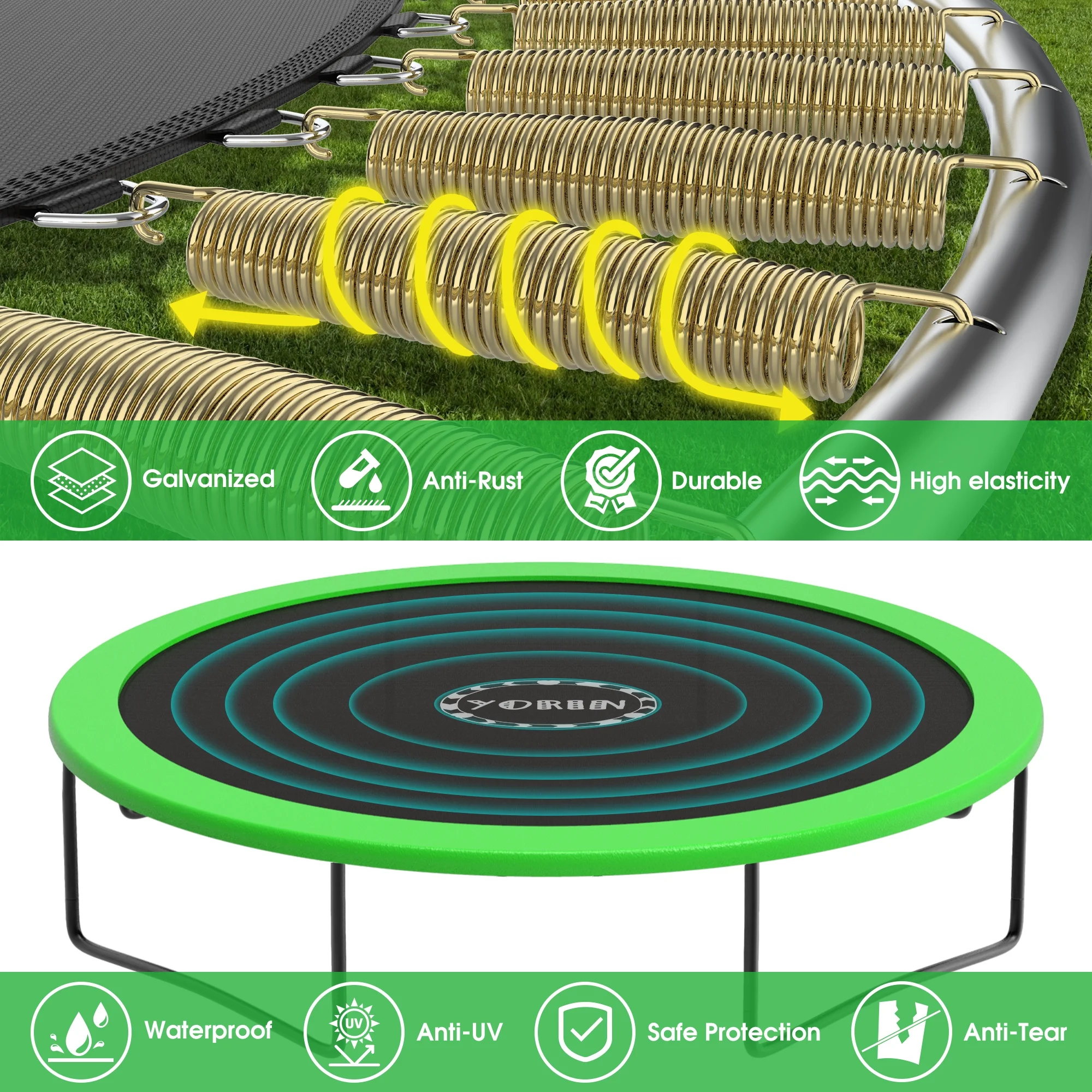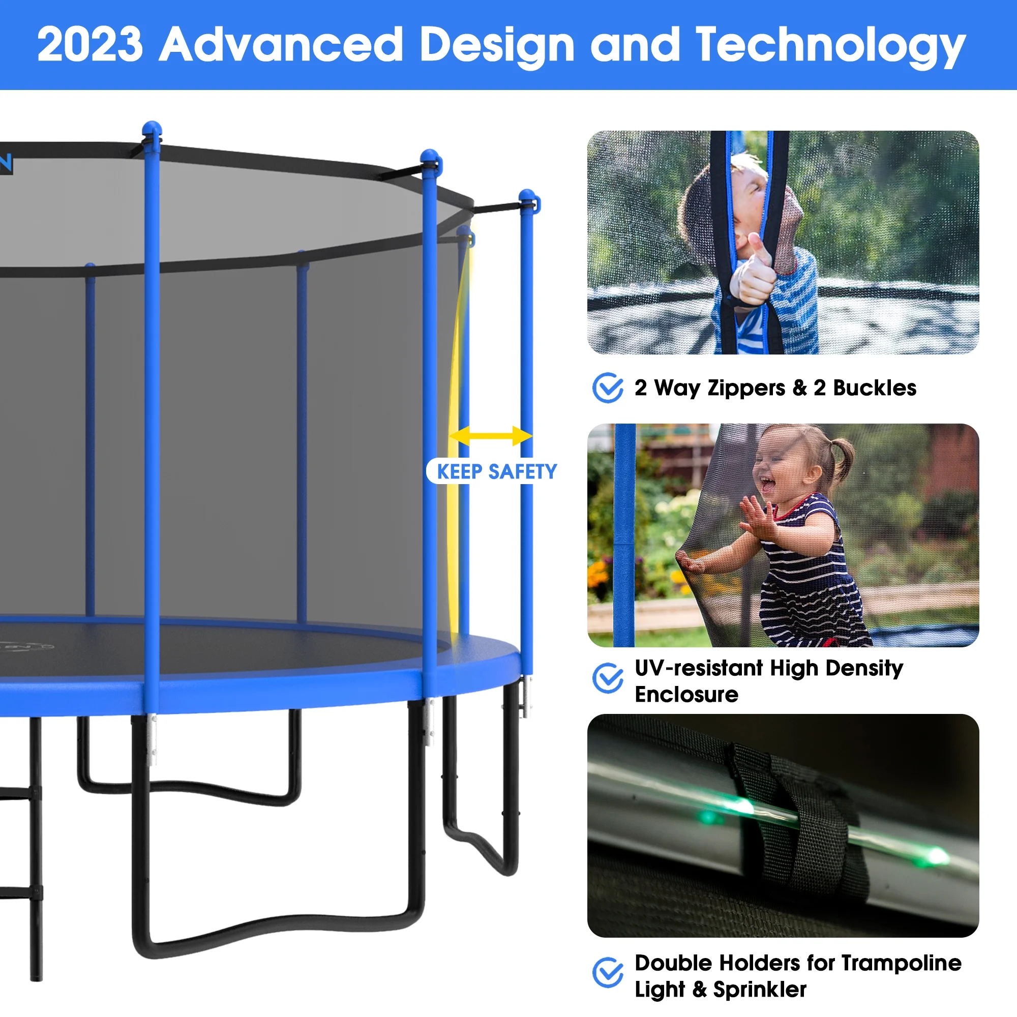 YORIN 1200LBS 12FT 14FT 15FT Trampoline for Kids Adults, Trampoline with Safety Enclosure Net, Basketball Hoop and Ladder, Outdoor Heavy-Duty Trampoline