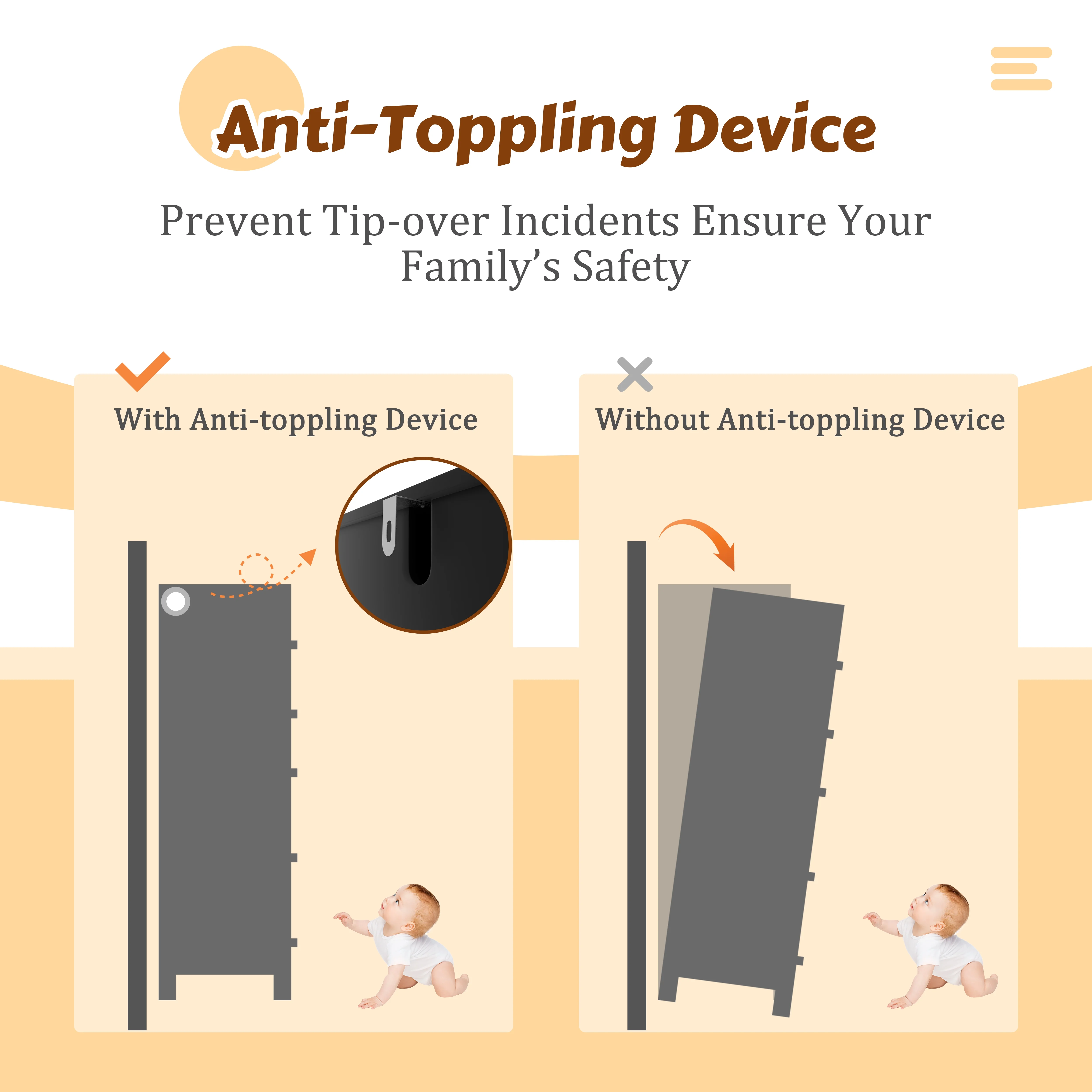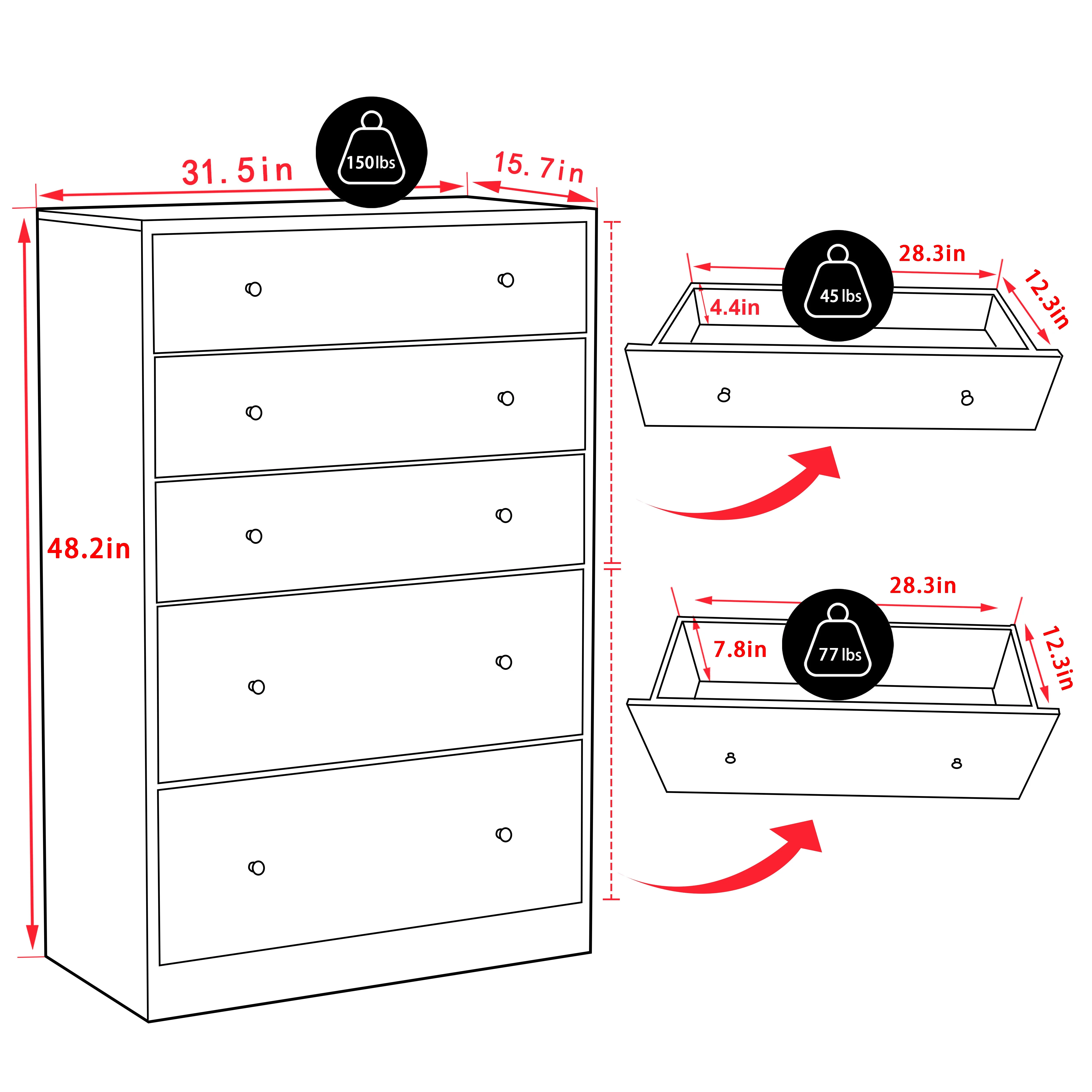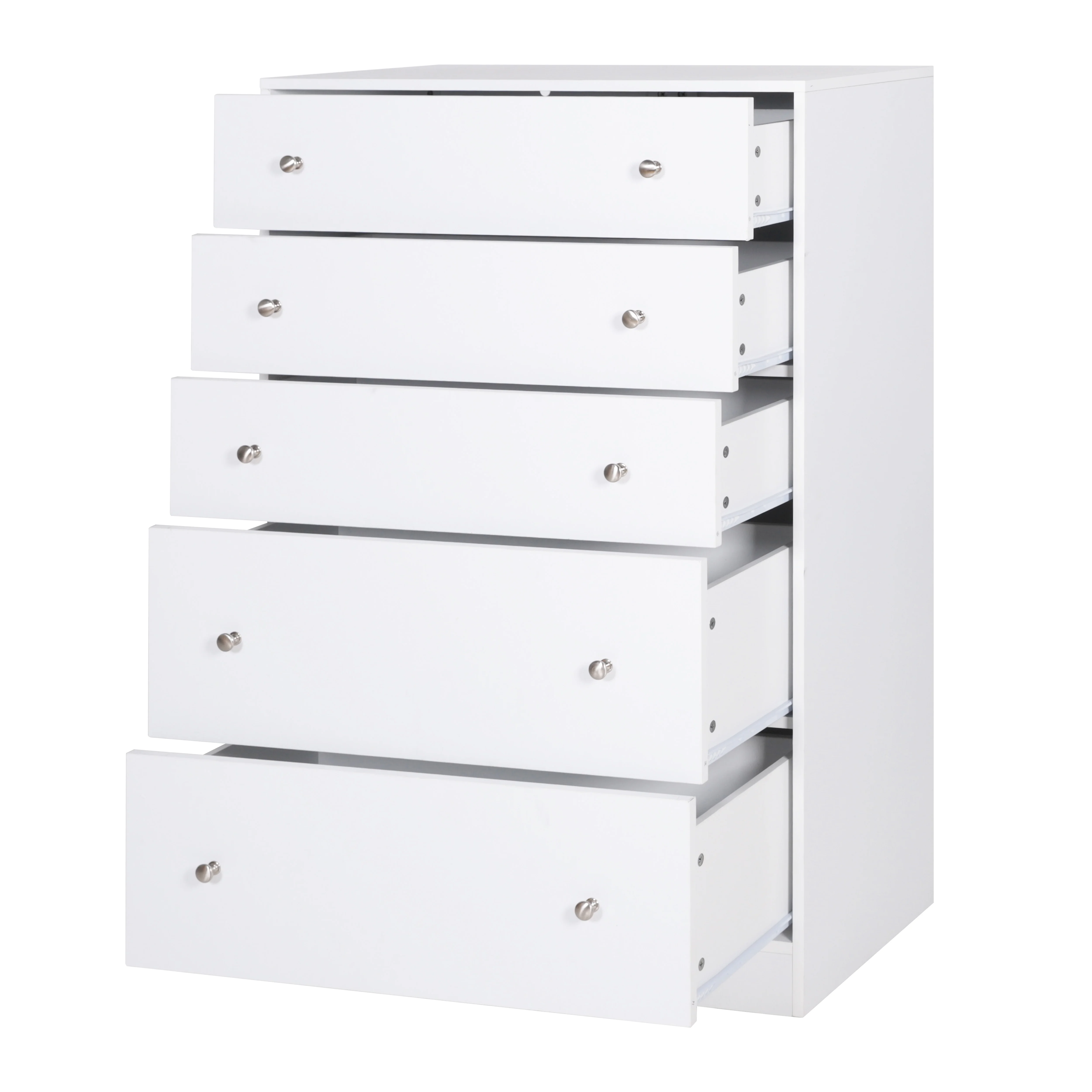 VEIKOUS 5-Drawer Dresser, Clothes Dresser Chest w/Metal Knobs for Bedroom and Kids Room, White