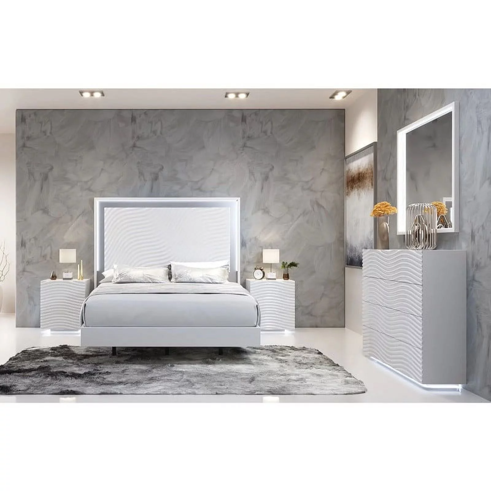 Wave Modern 5-Piece Bedroom Set in White. King Size