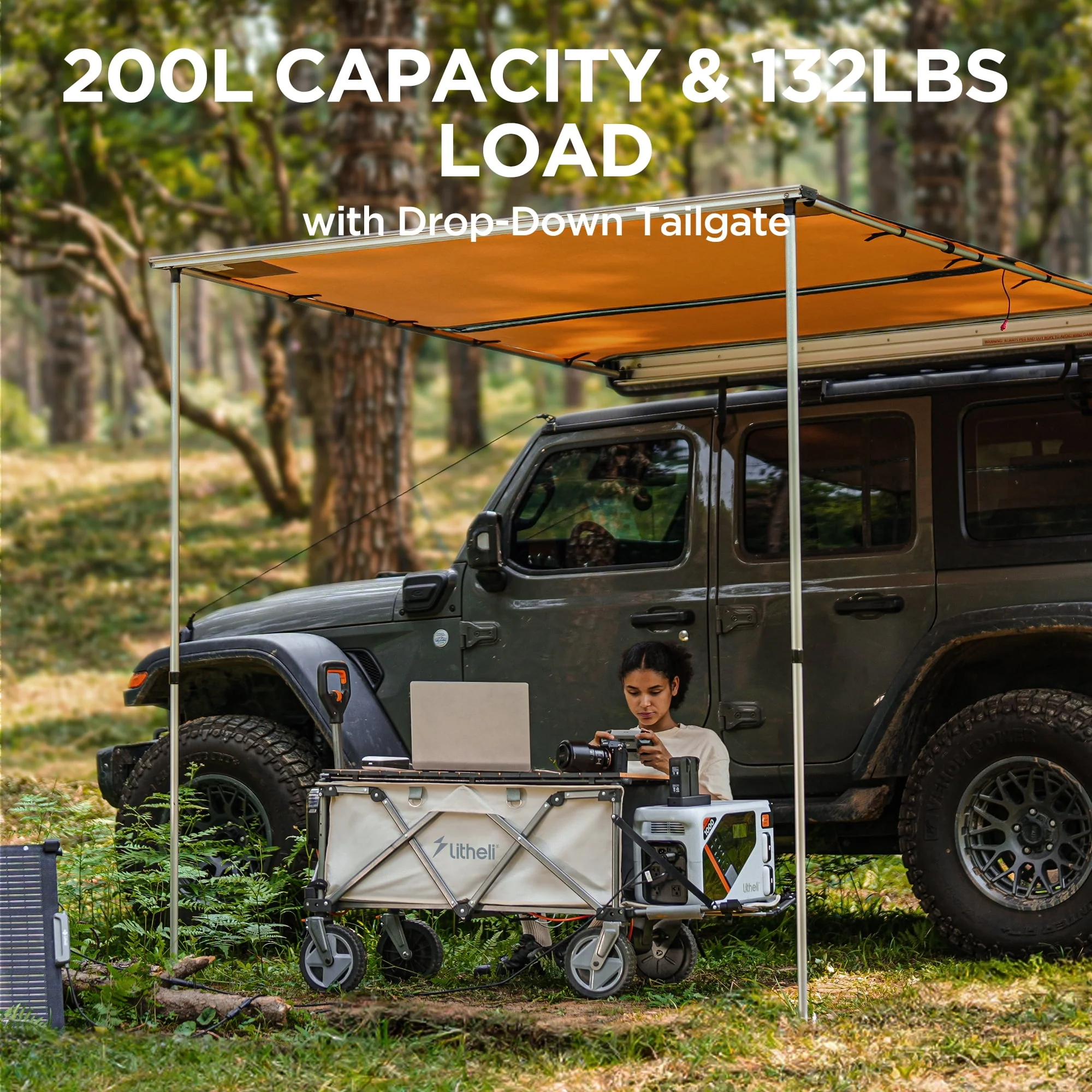 Litheli Electric Wagon Cart Utility Collapsible Garden Wagon Cart 176 lbs w/ Adjustable Handle and Height Fixed Net For Camping