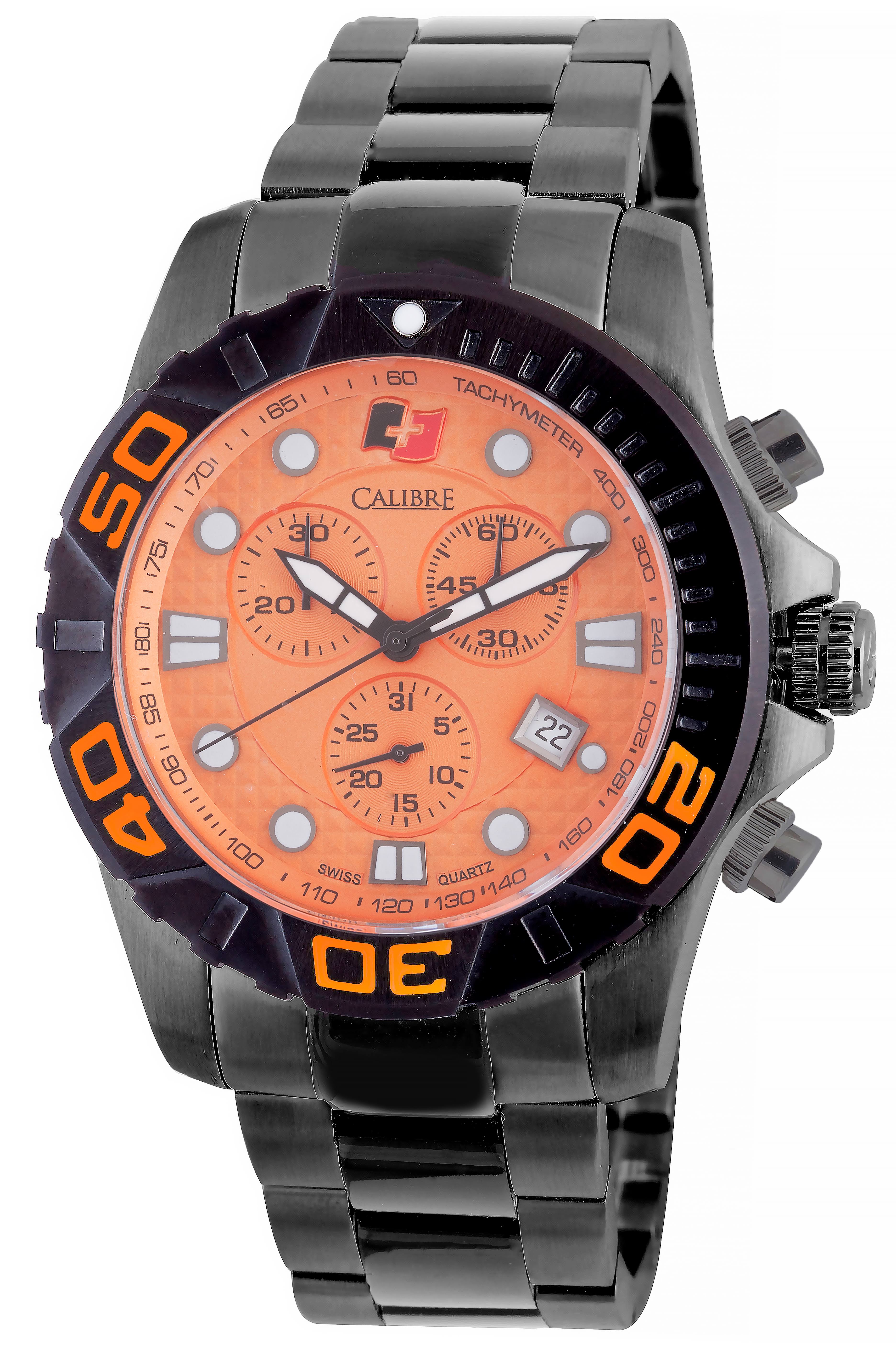 Calibre SC-5A1-13-079 Men's Akron Watch Black Stainless Steel Strap Orange Dial - Megean