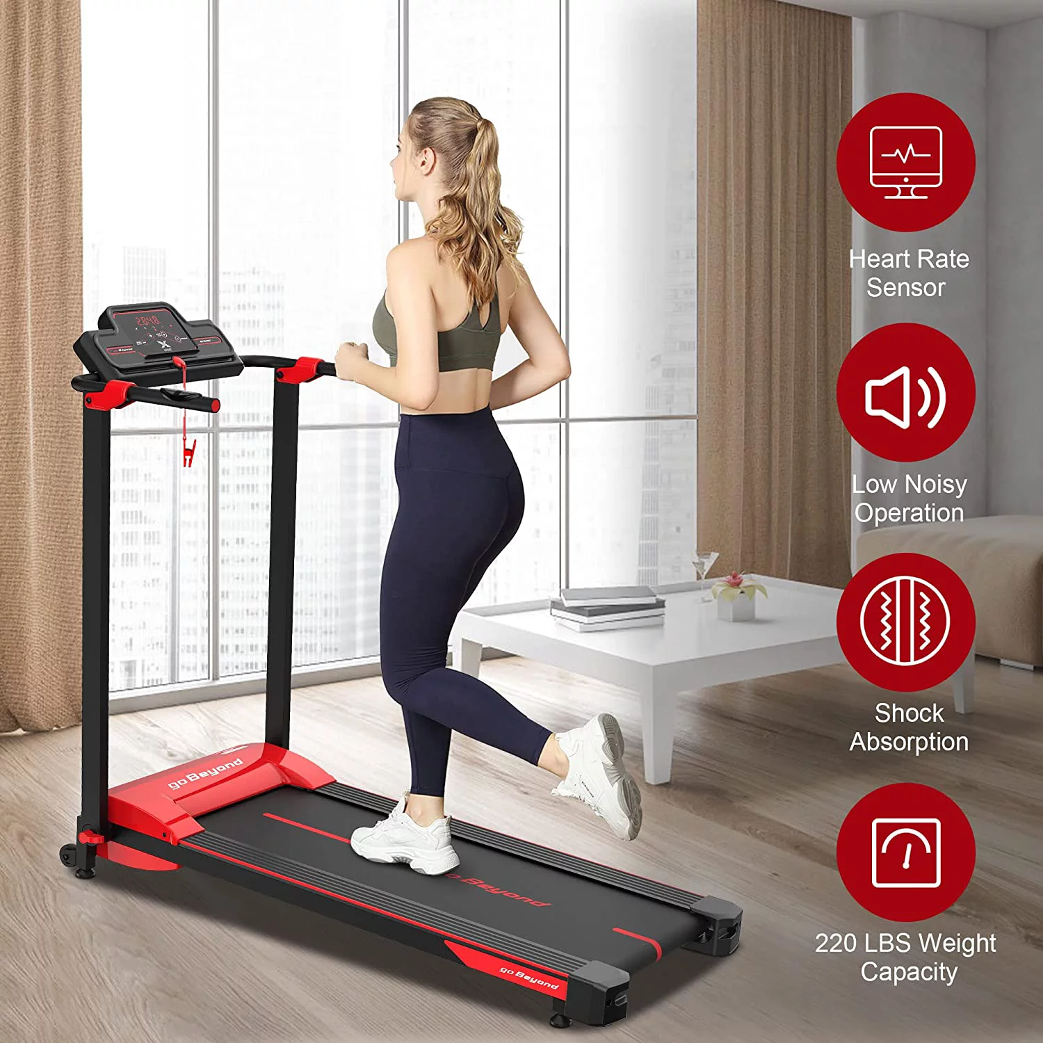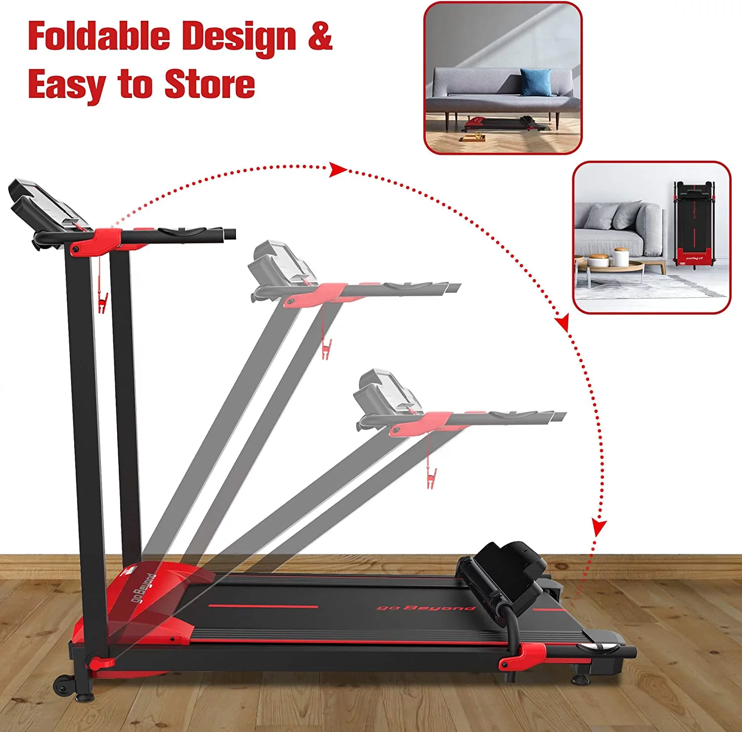 Superjoe Folding Treadmill 1.5HP Foldable Compact 220 LB Capacity Walking Running Exercise Machine for Home Office, Installation-Free