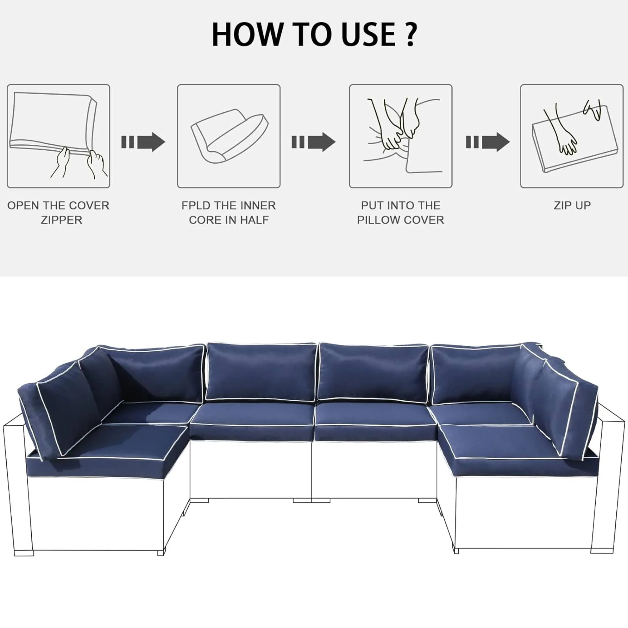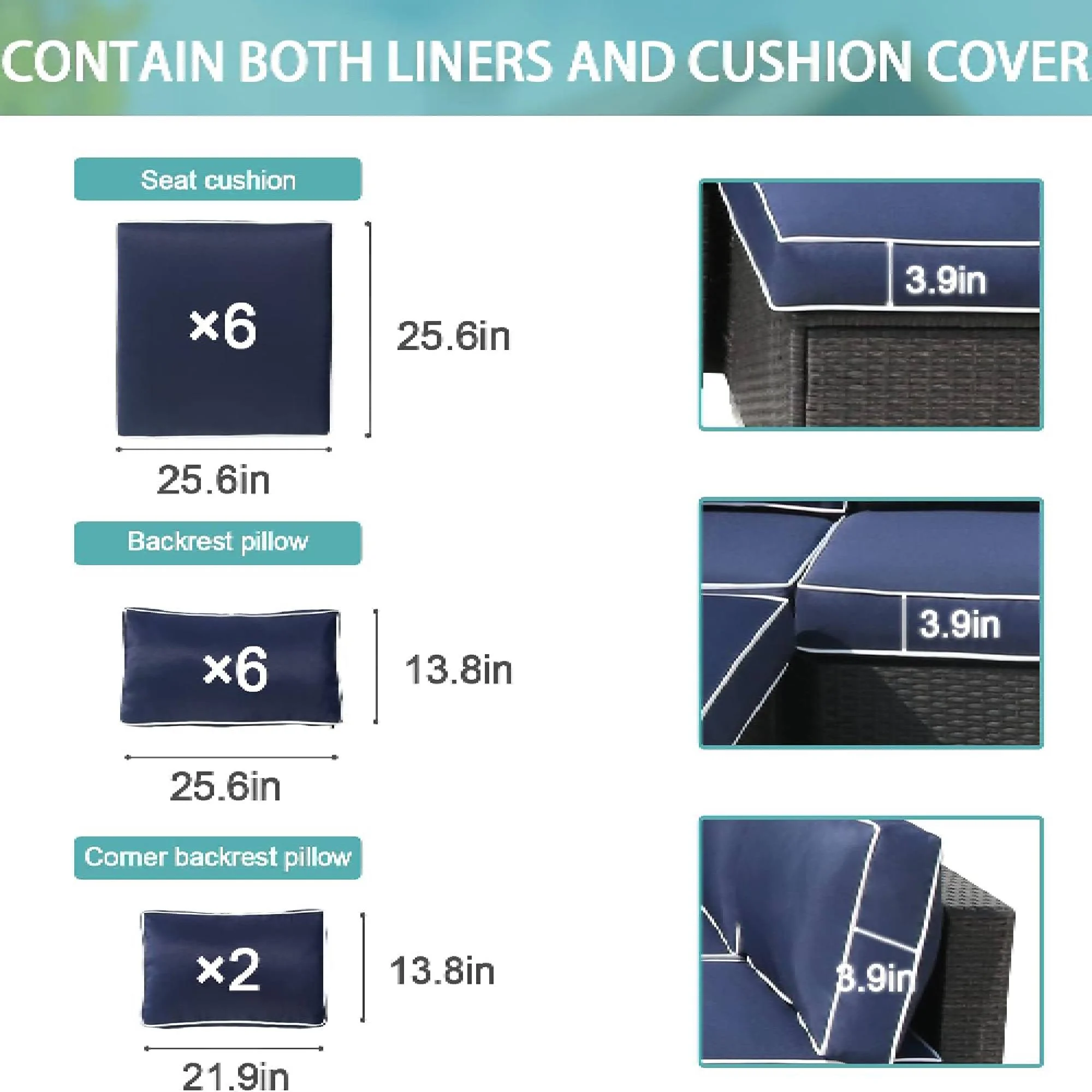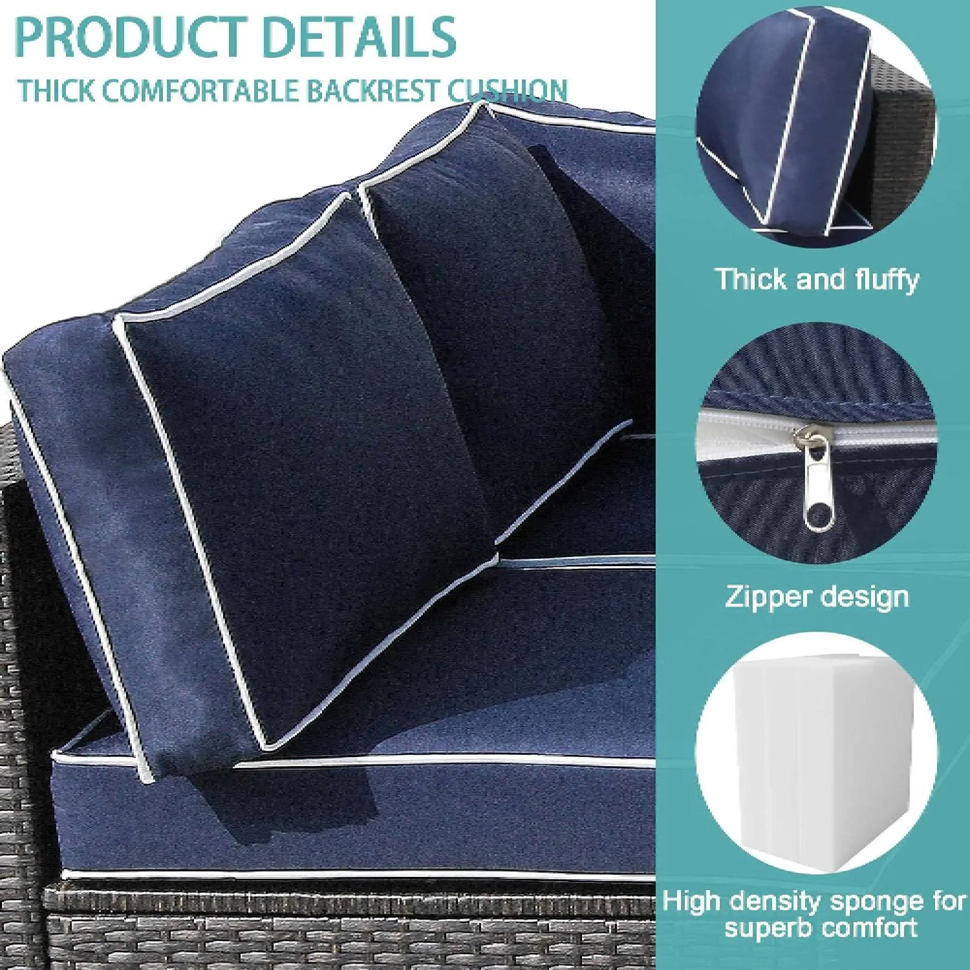 FKSLIFE Patio Furniture Replacement Cushions Outdoor Sectional Ratten Conversation Set Water-Resistant Sofa Cushions Liner and Cover Dark Blue and White 14 Piece 25.6"×25.6"×3.9" - Curated Treasures Market