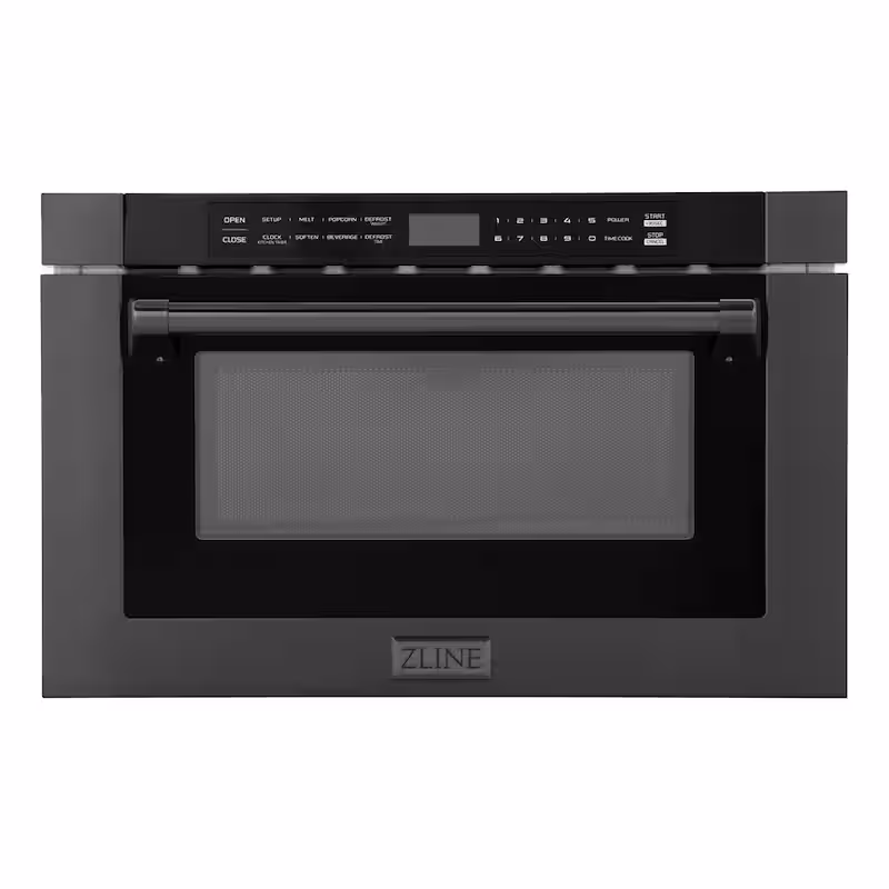 24 in. 1000-Watt Built-In Microwave Drawer in Black Stainless Steel & Traditional Handle