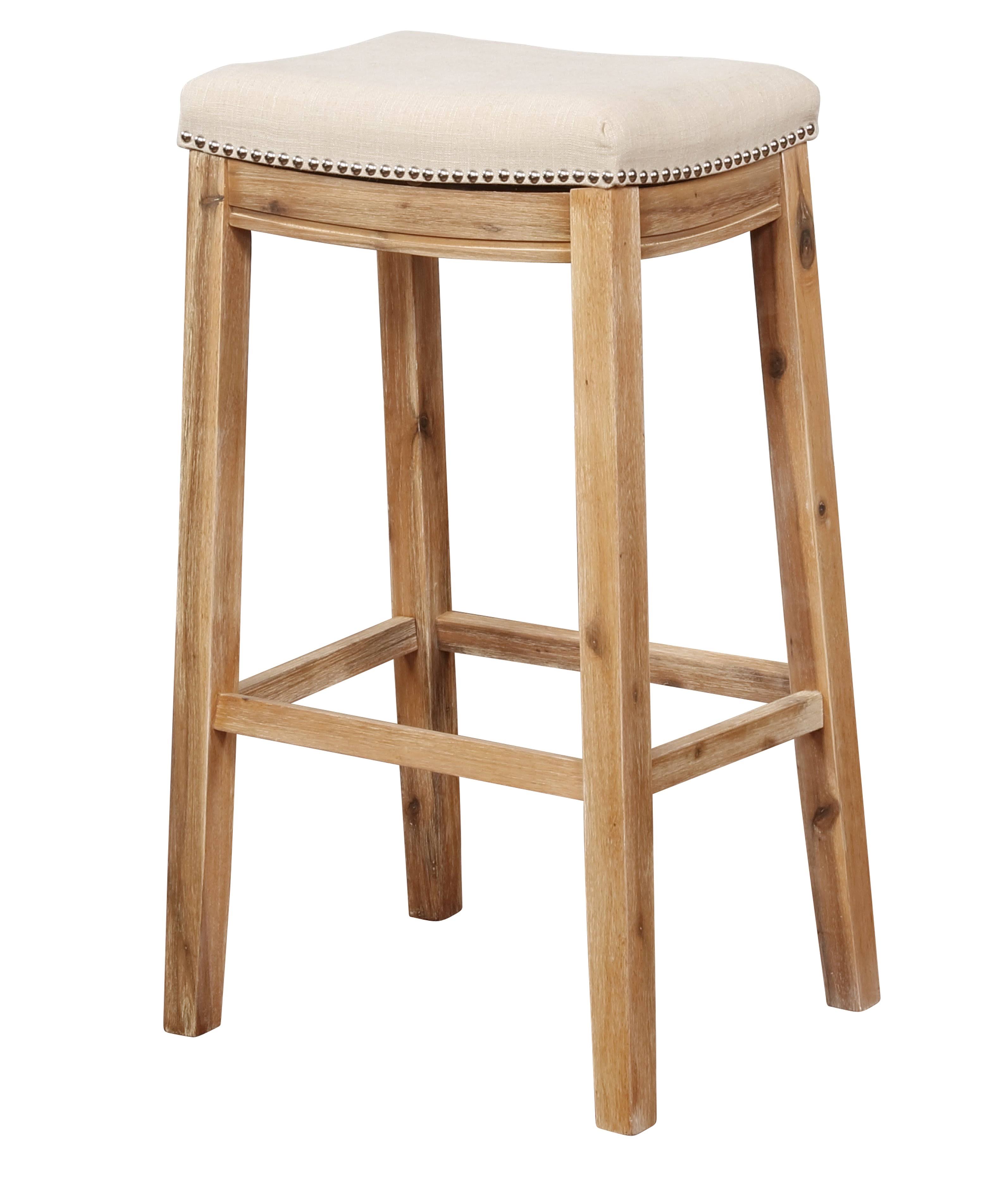 Saddle Top Wooden Bar Stool with Nailhead Accents Brown and Beige - Megean