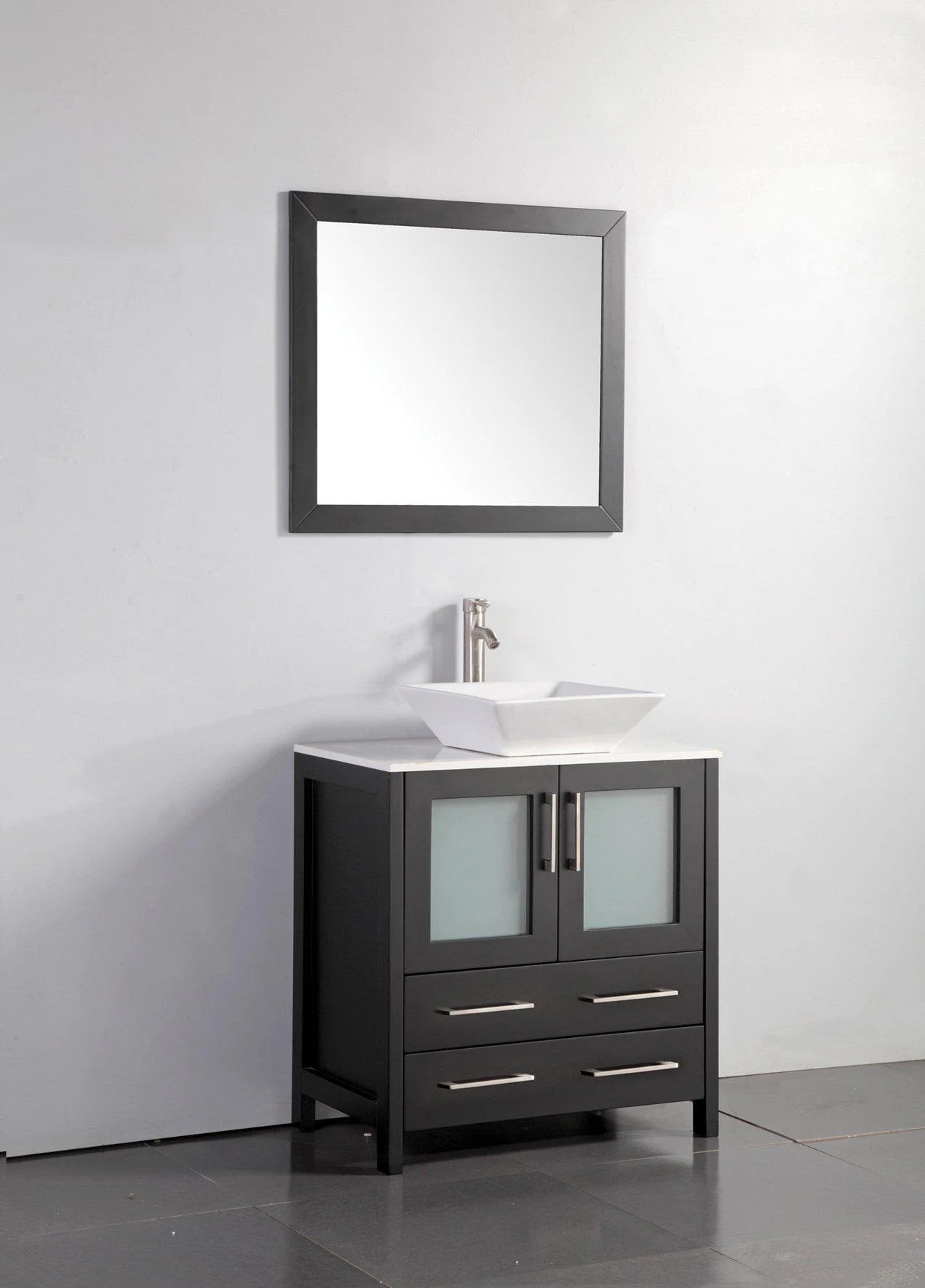 Vanity Art 30 in. Single Sink Vanity Cabinet with Ceramic Vessel Sink & Mirror - Espresso, VA3130E