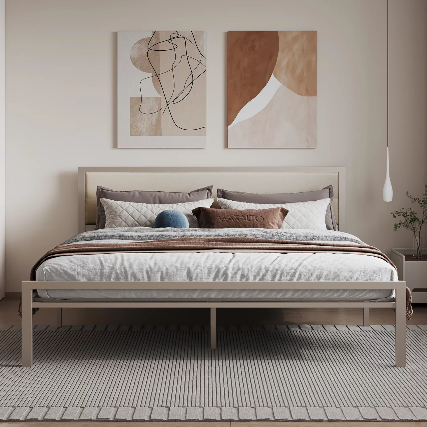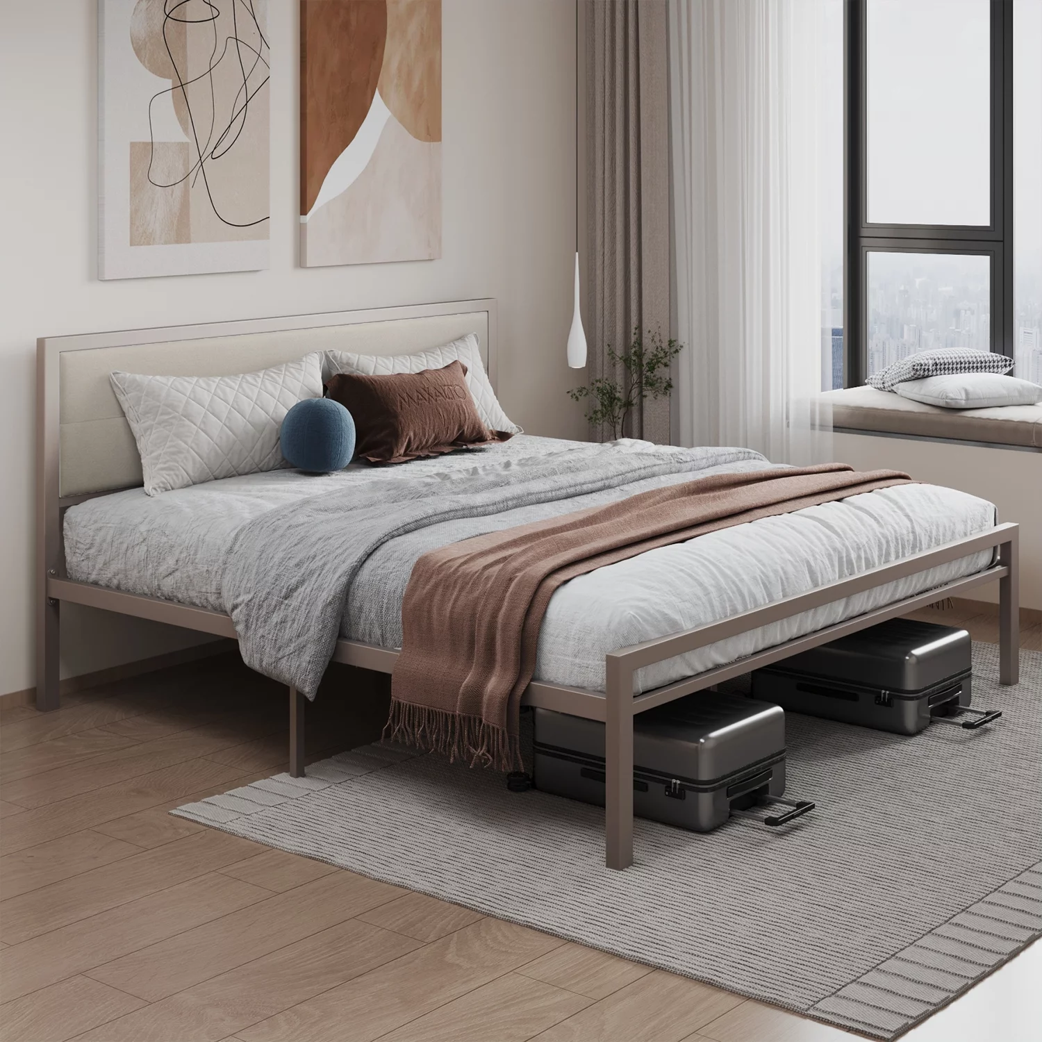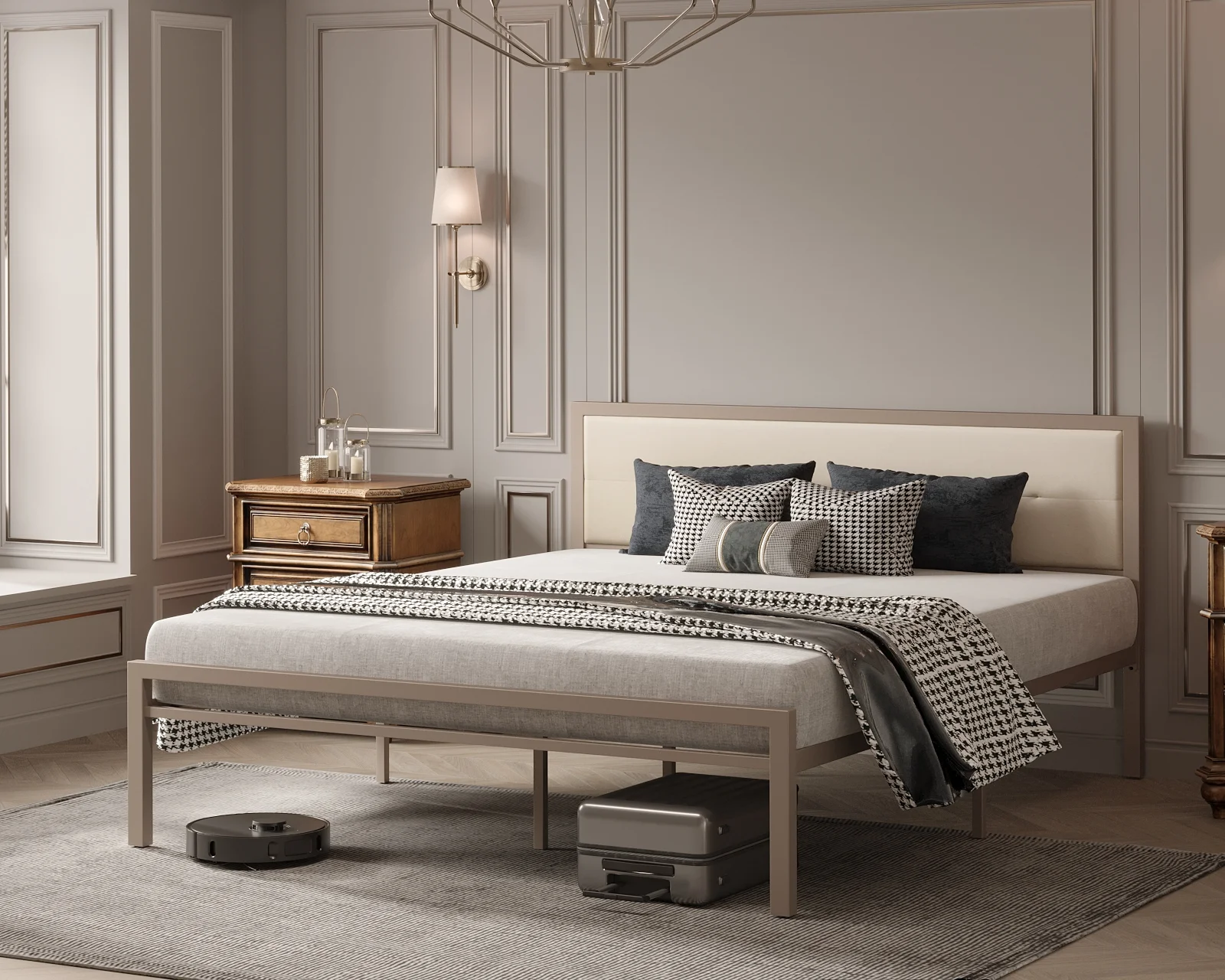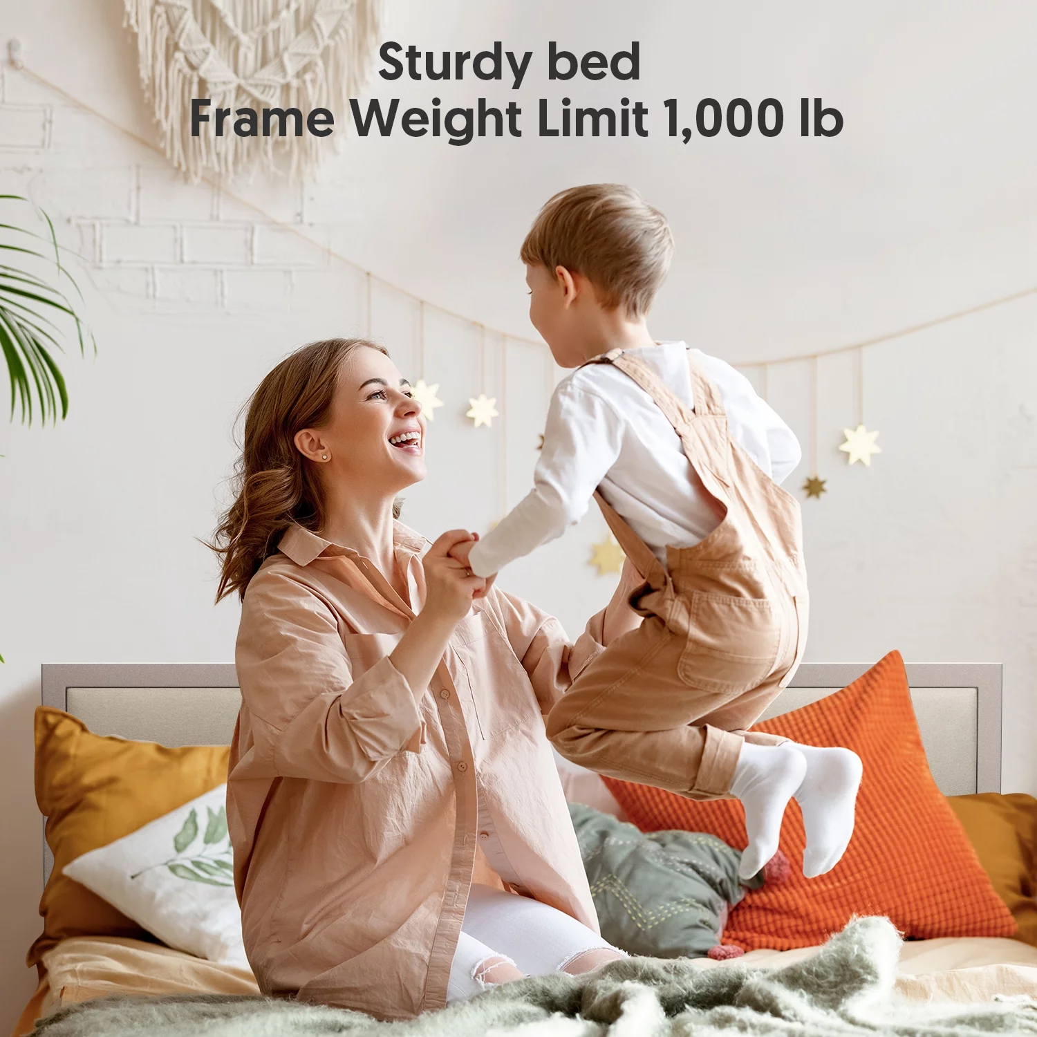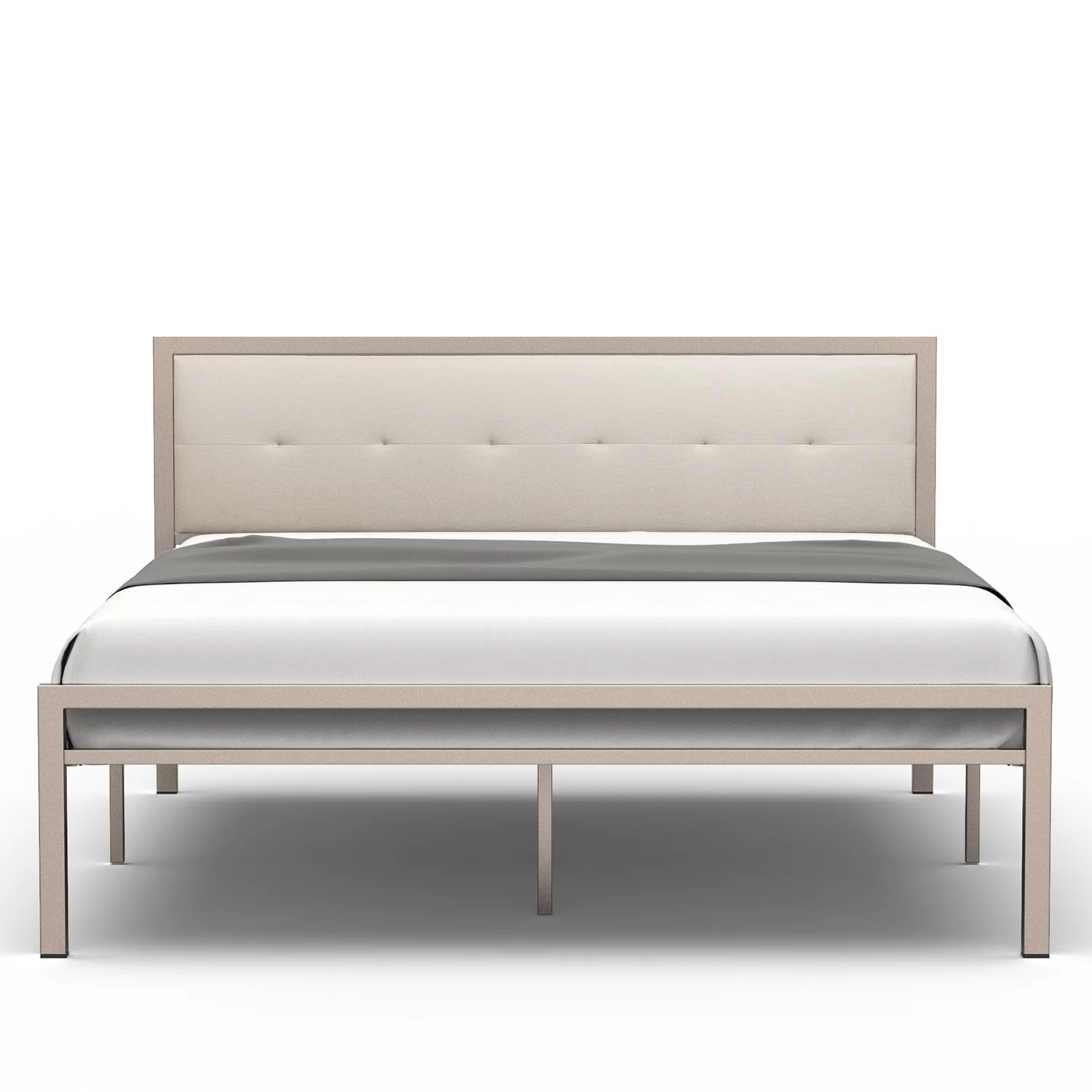 Bonsoir QUEEN Size Bed Frame Steady Steel Platform with Fabric Headboard/Footboard (Champagne Color Frame)