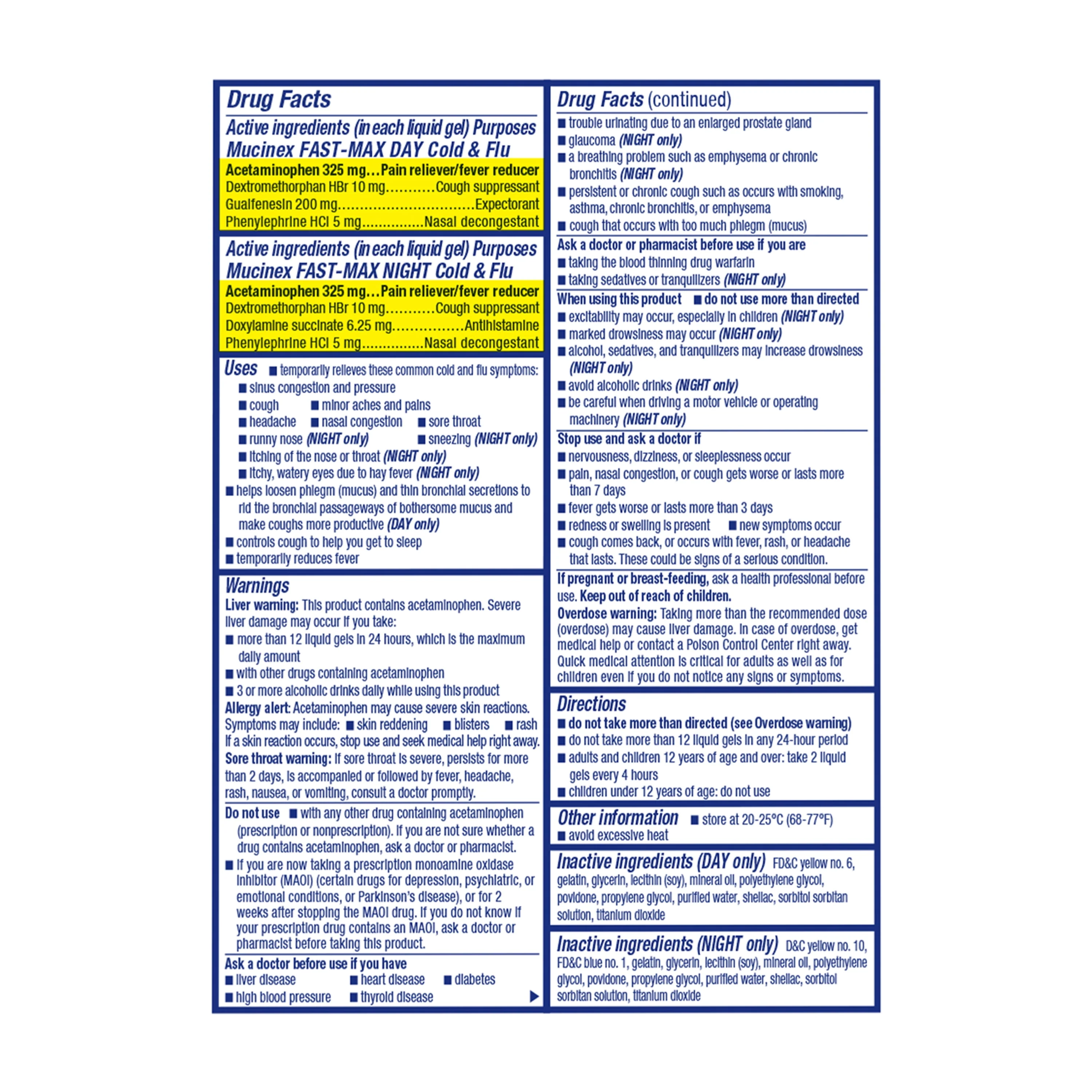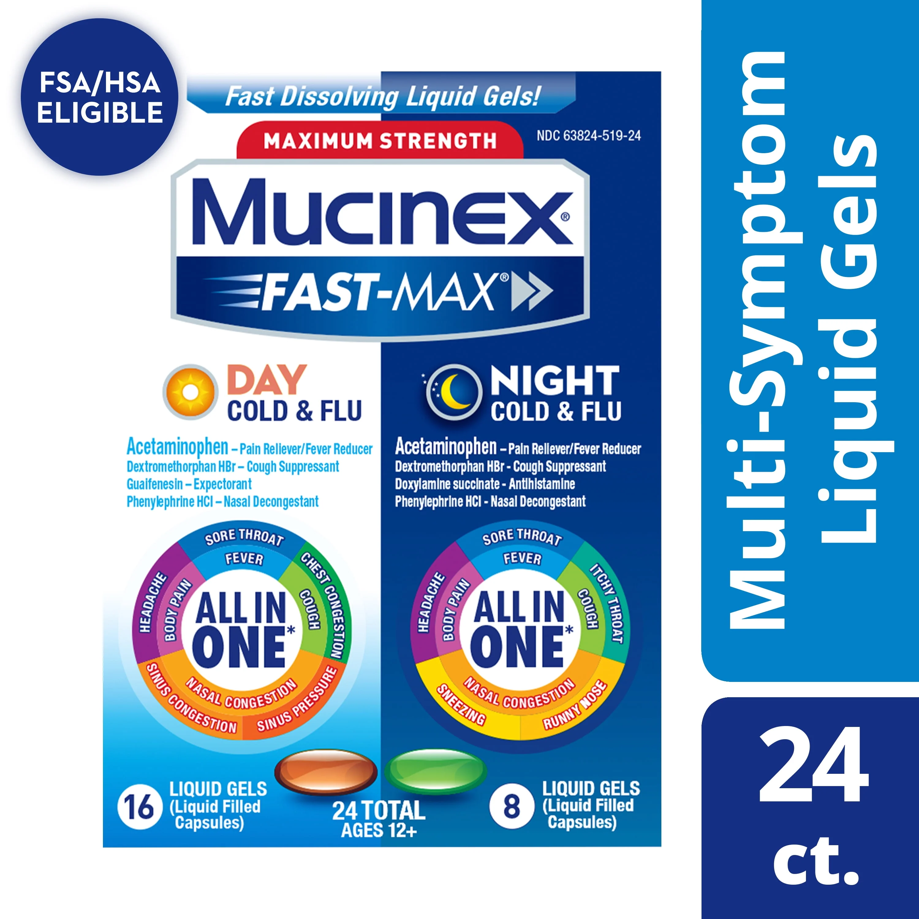 Mucinex All in One Fast Max, Cold and Flu Medicine, Day & Night Combo Pack (16 Day + 8 Night) Liquid Gels