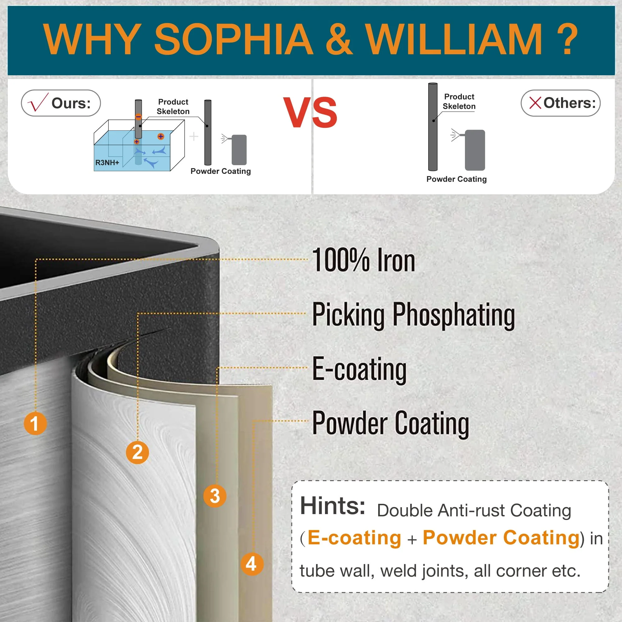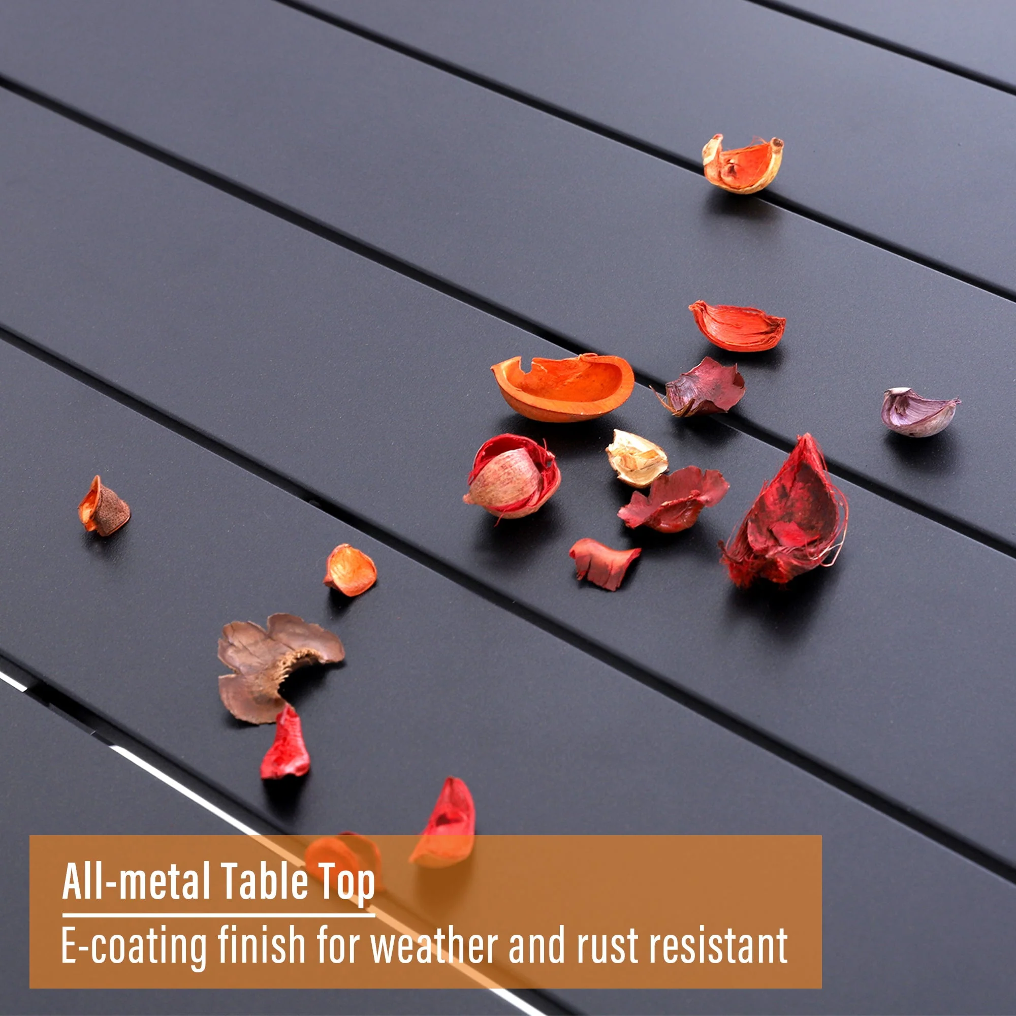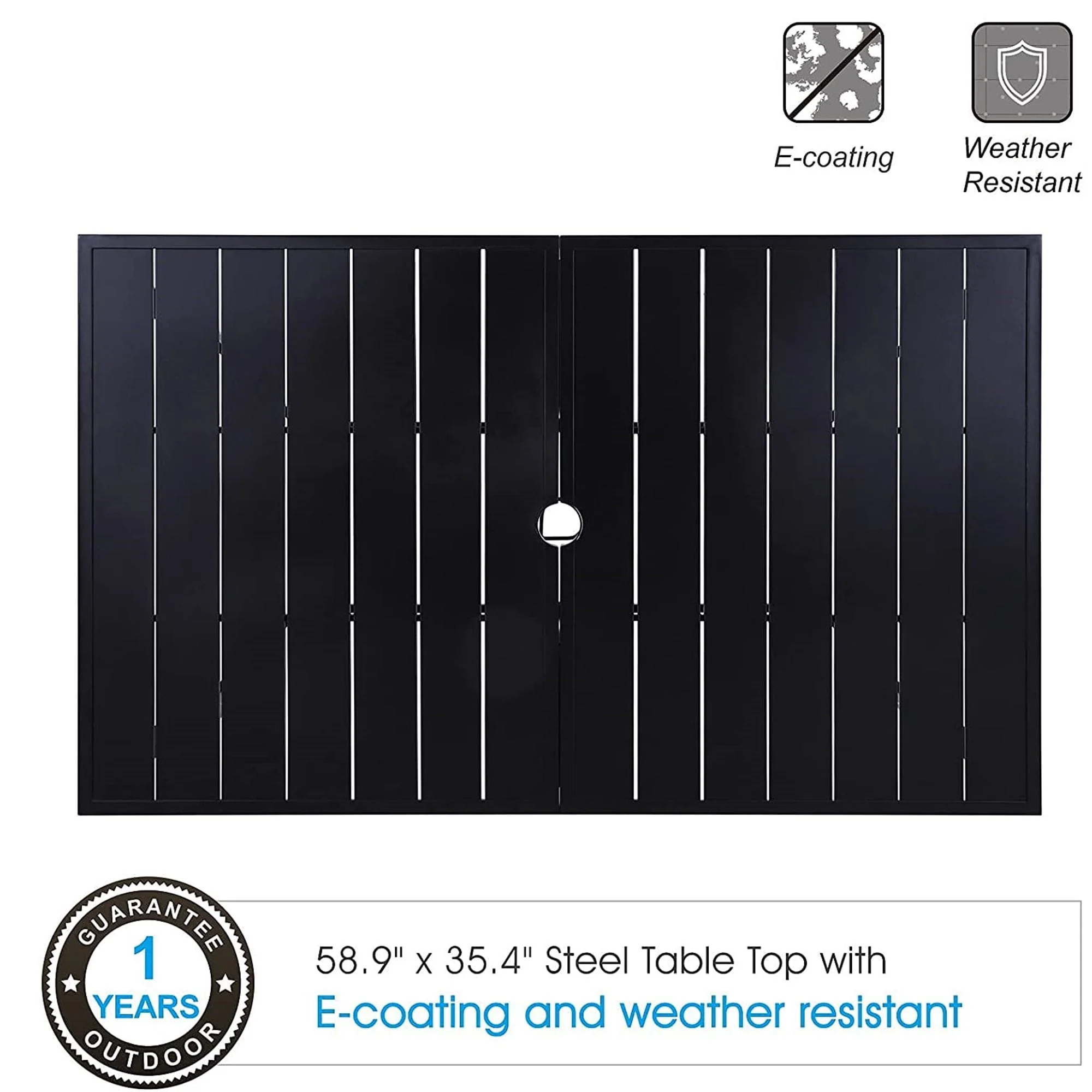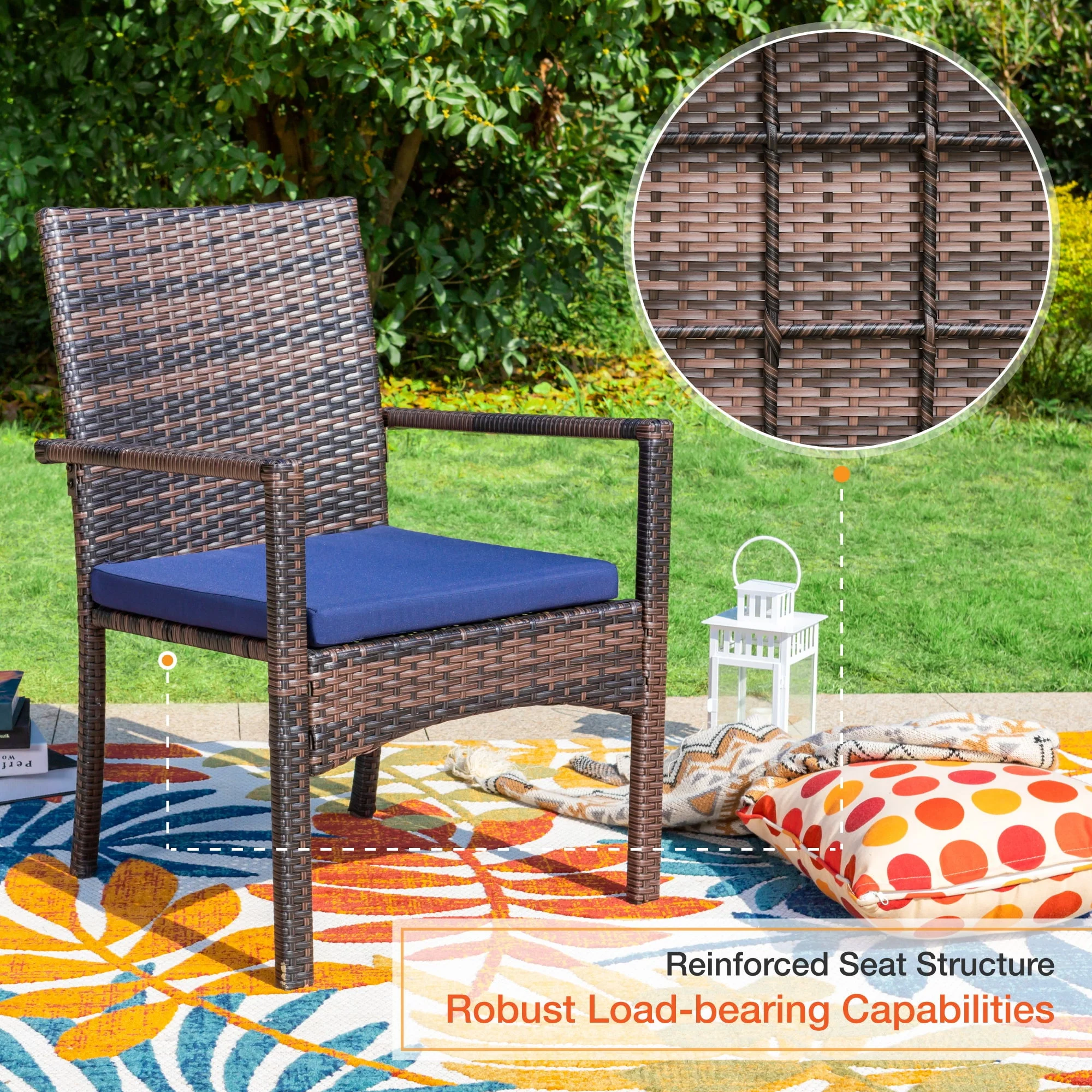 Sophia & William 8 Pieces Outdoor Patio Dining Set with 13 ft Navy Umbrella, Rattan Chairs & Metal Table for 6