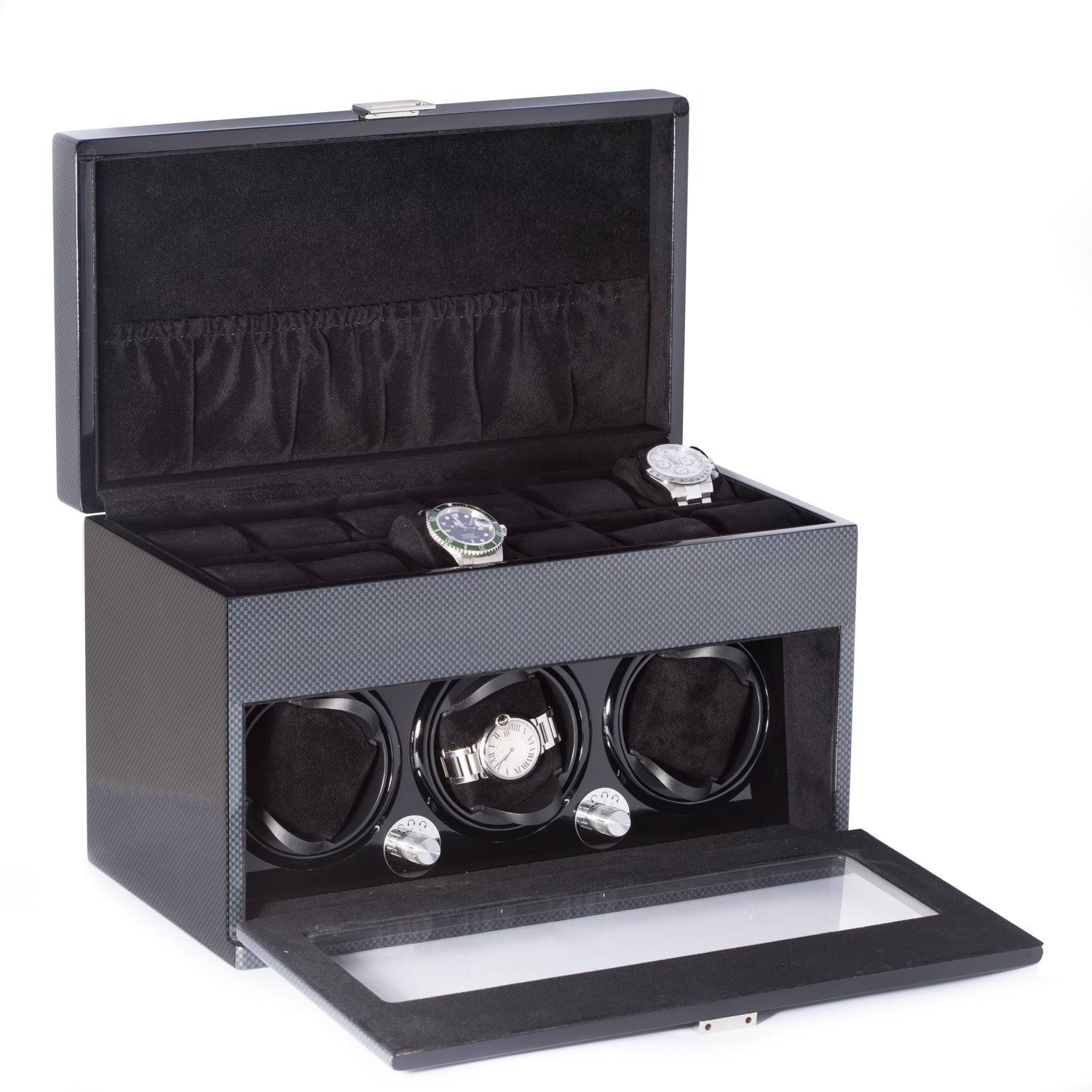 Bey-Berk - Lacquered Carbon Fiber Steel Gray 3 Watch Winder - Megean