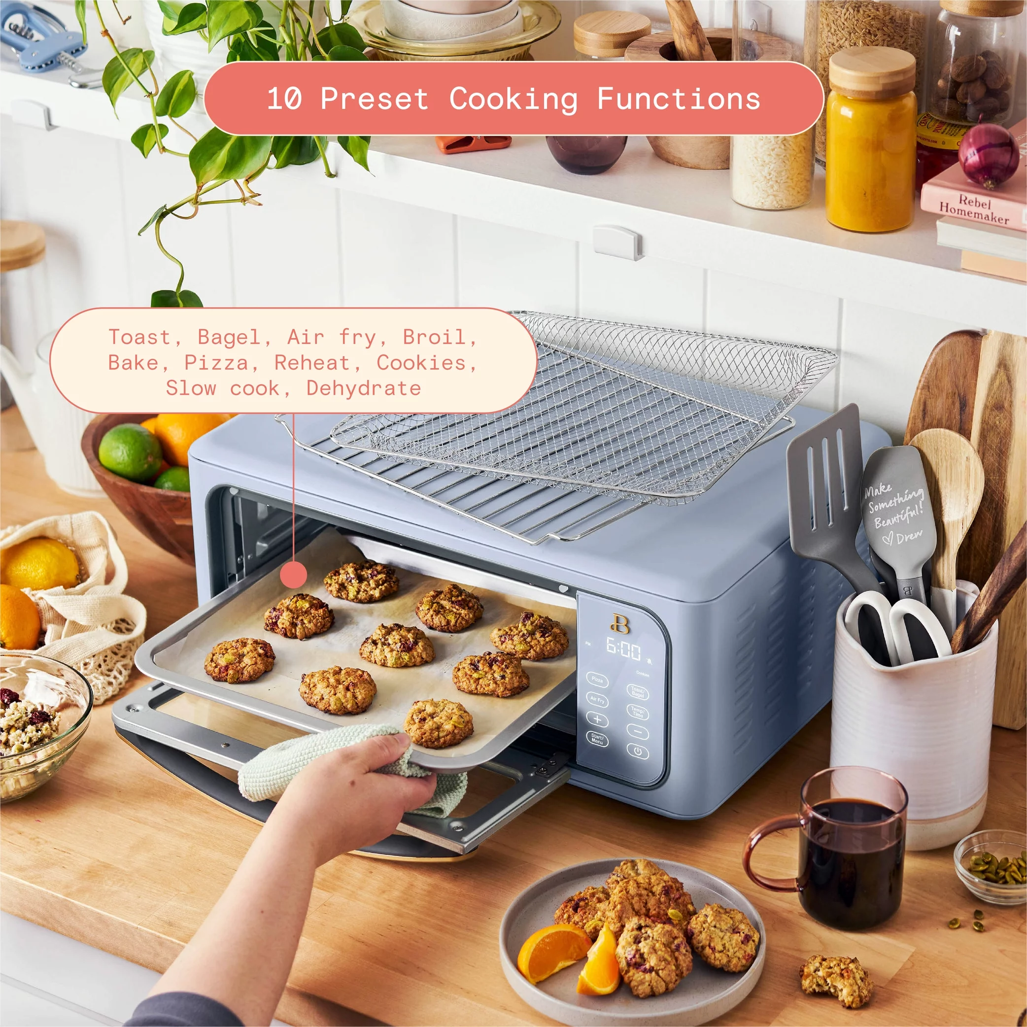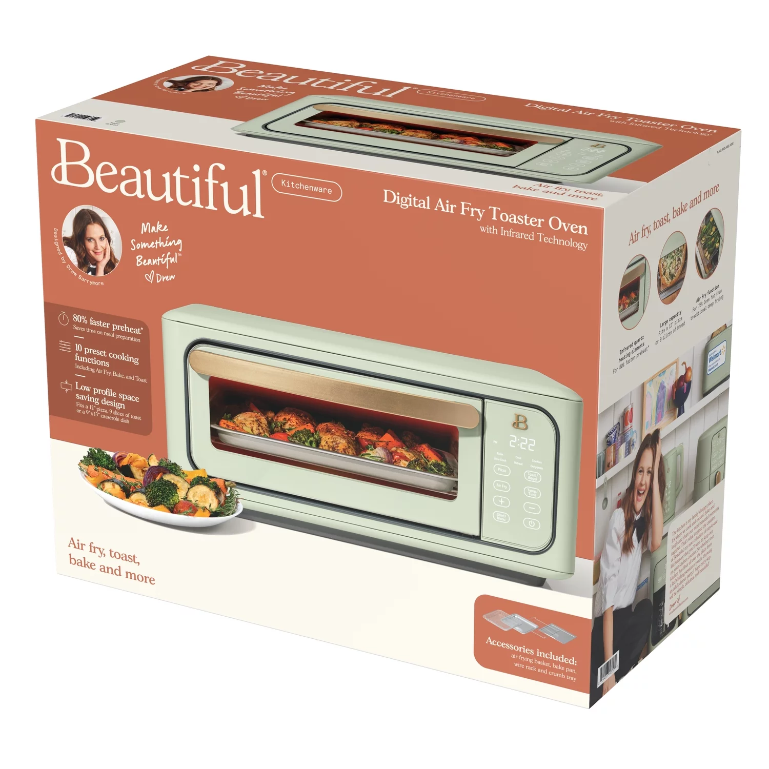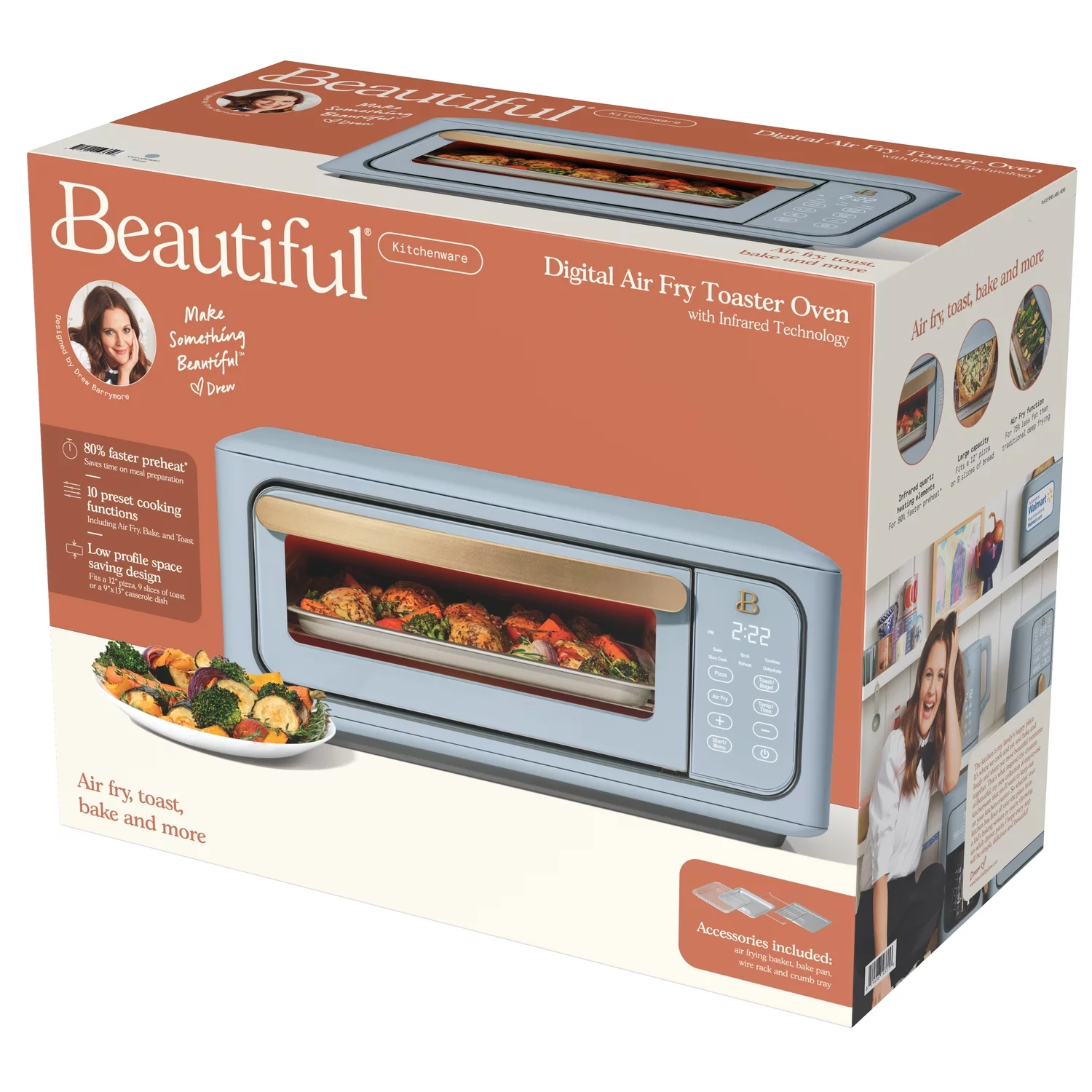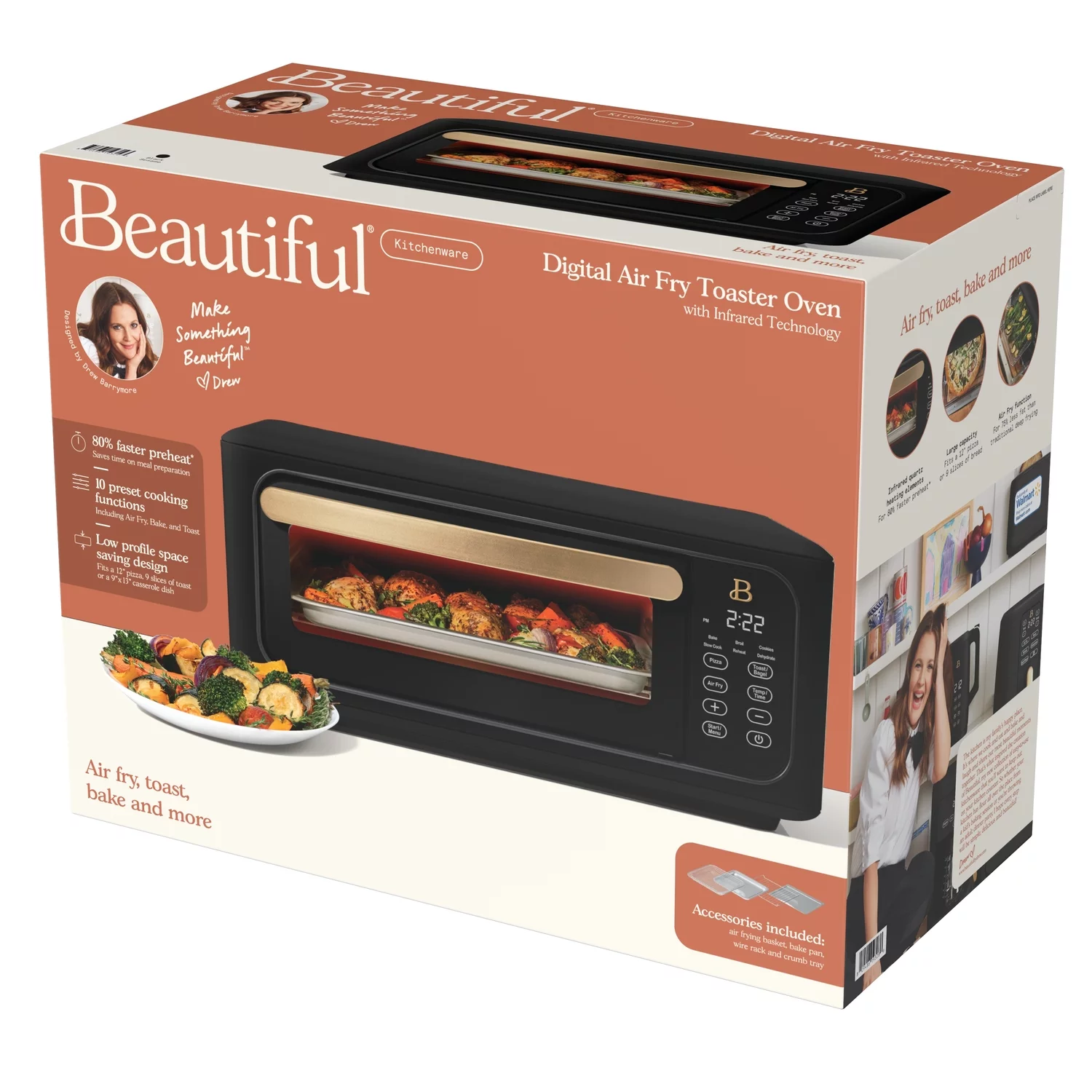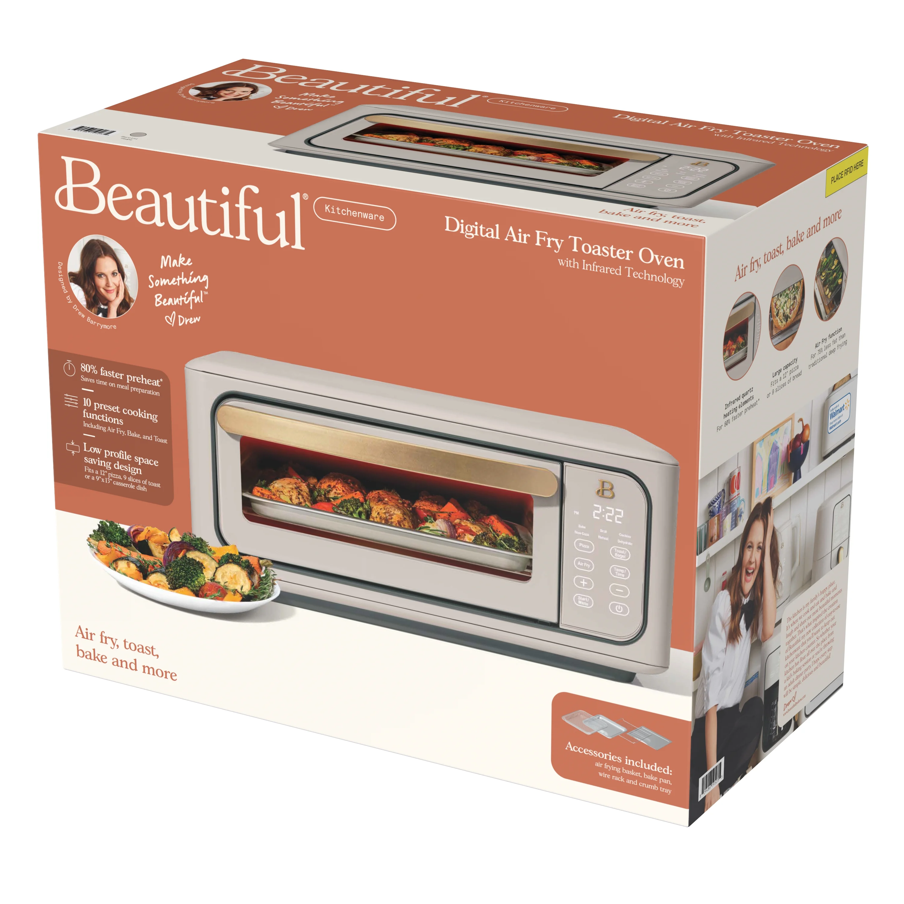 Beautiful Infrared Air Fry Toaster Oven, 9-Slice, 1800 W, White Icing by Drew Barrymore