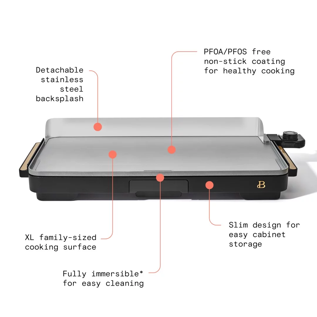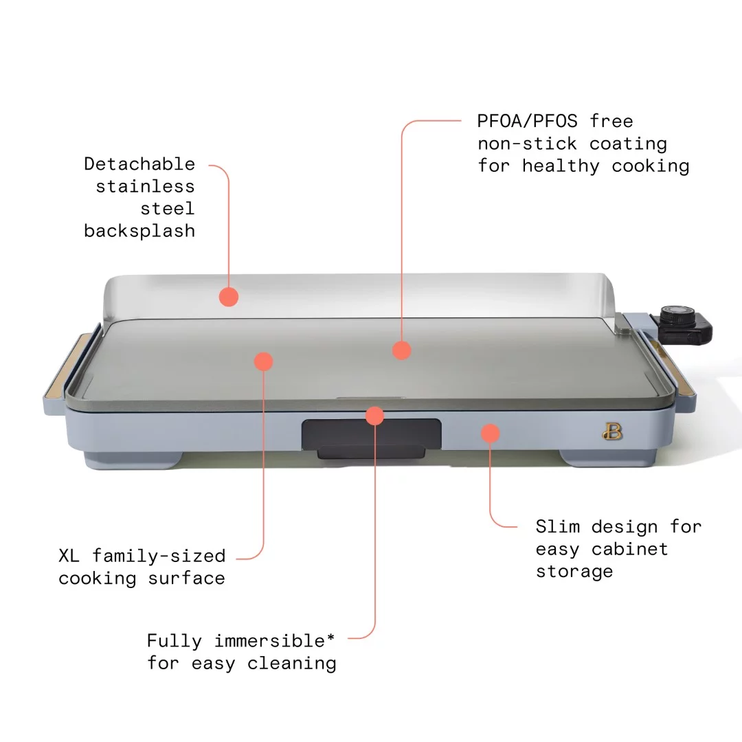 Beautiful XL Electric Griddle 12 x 22- Non-Stick, White Icing by Drew Barrymore