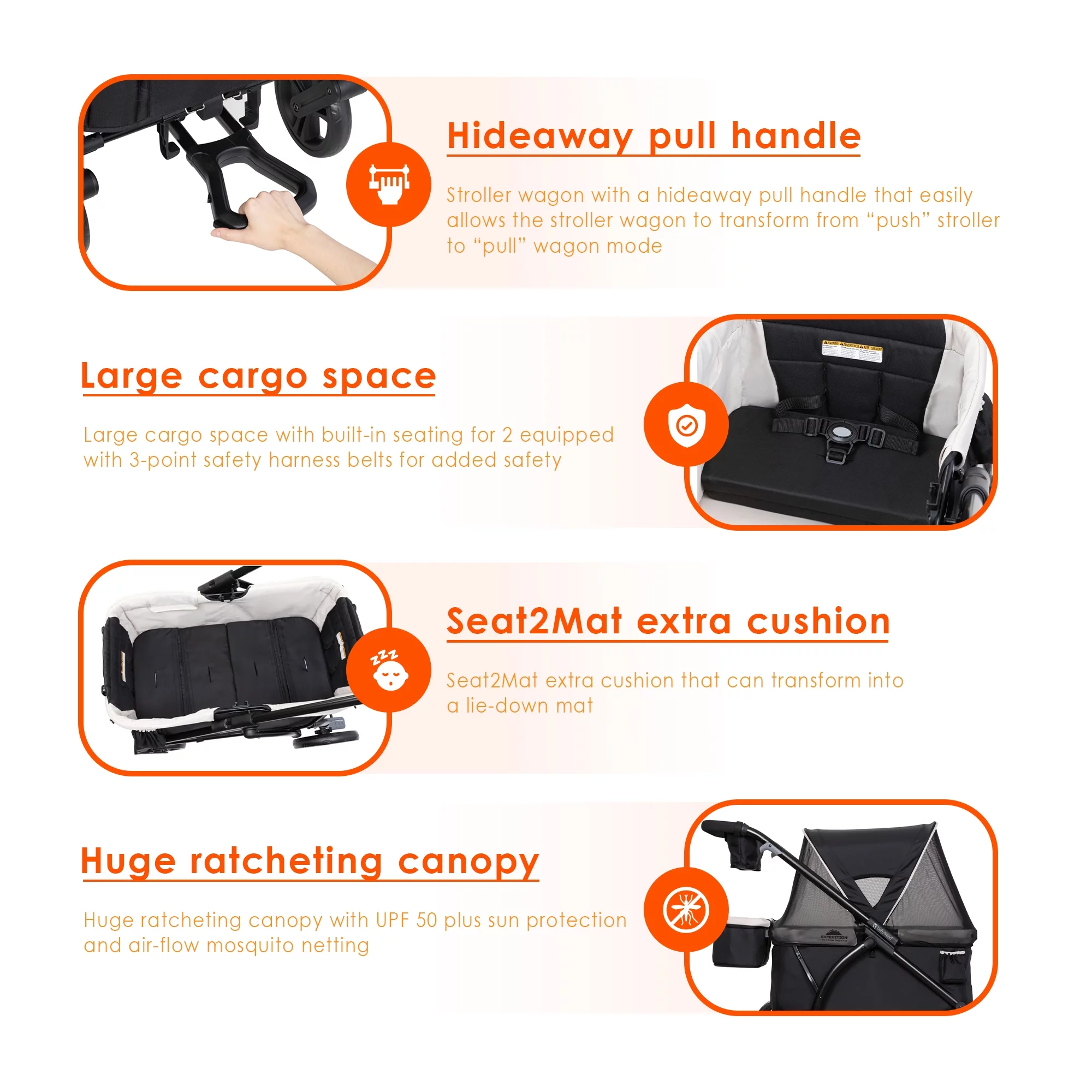 Baby Trend Expedition 2-in-1 Stroller Wagon PLUS with Canopy, Modern Khaki