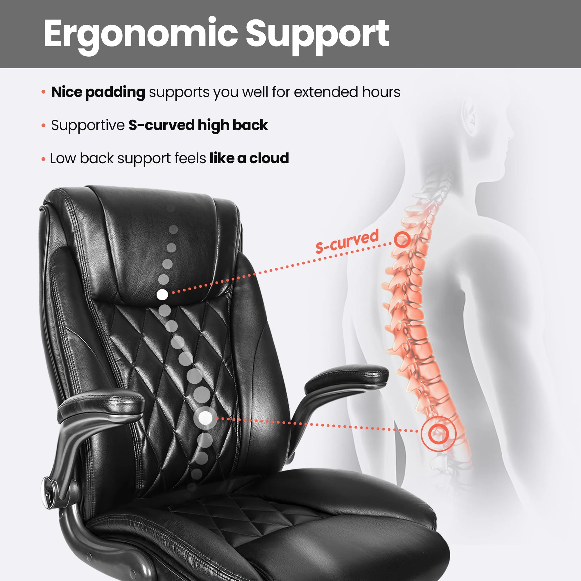 Neo Chair Chairman Ergonomic High Back Leather Computer Desk Executive Office Chair, Black