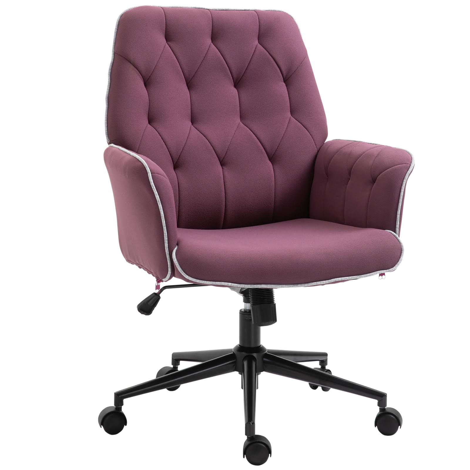 Vinsetto Modern Mid-Back Tufted Linen Fabric Home Office Task Chair with Arms, Swivel Adjustable - Megean