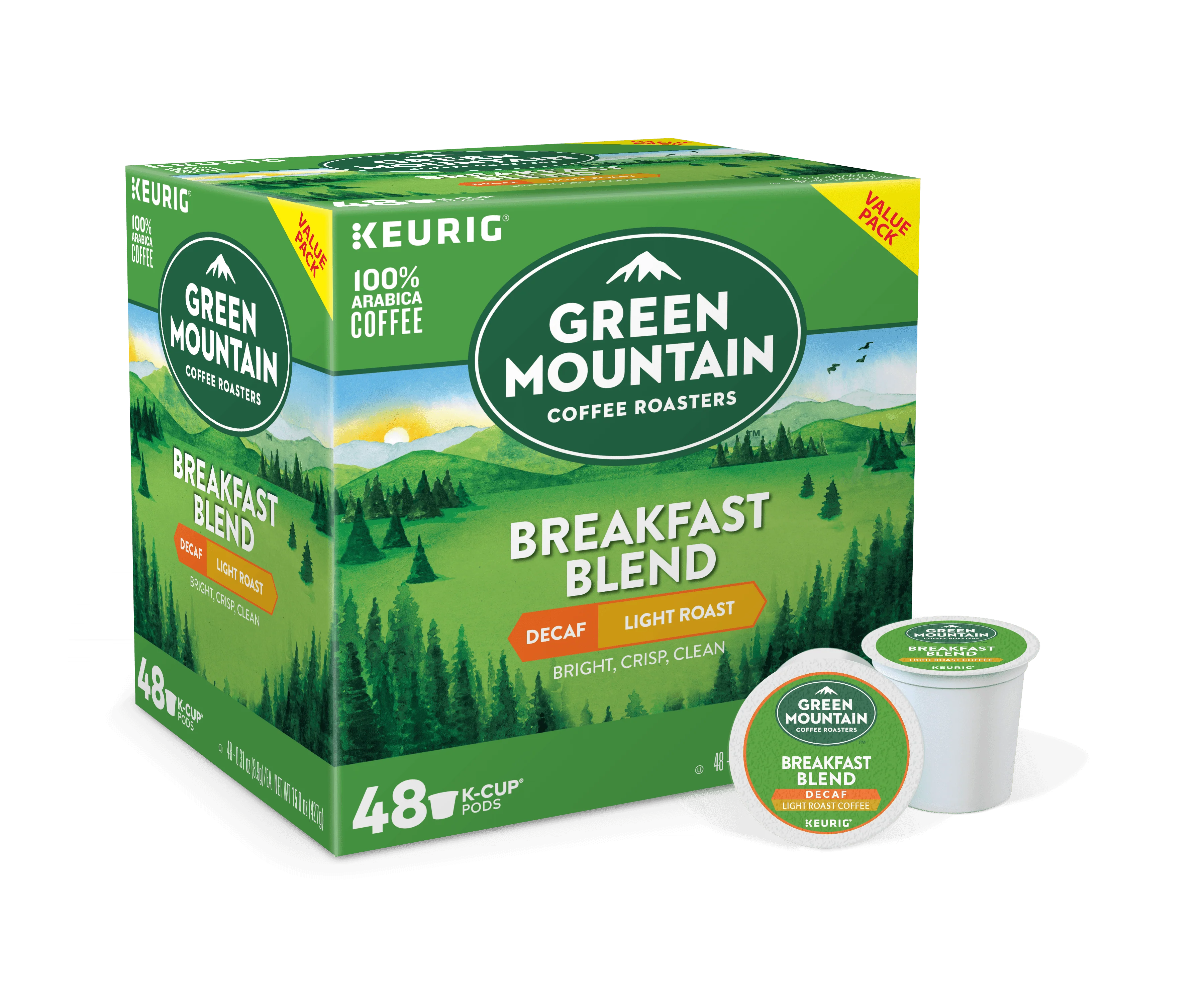 Green Mountain Coffee Roasters Breakfast Blend Decaf, Keurig K-Cup Pods, Light Roast Coffee, 48 Count