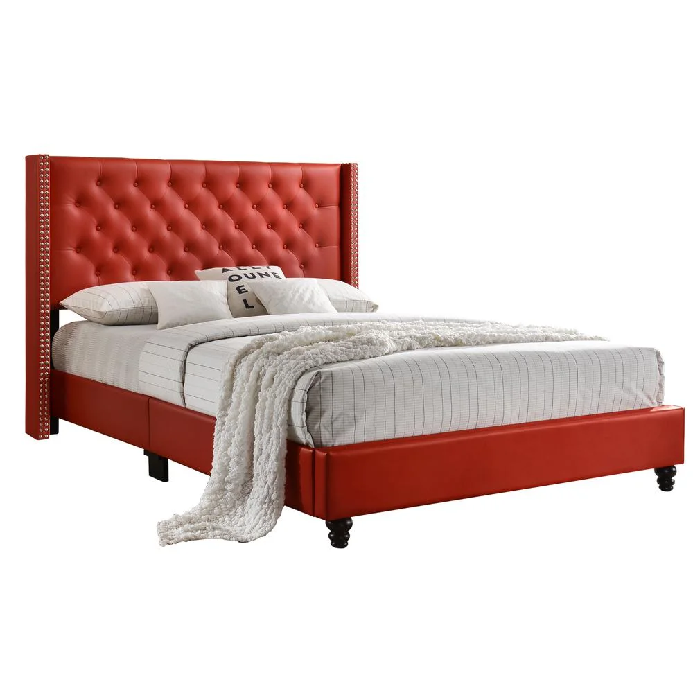 Glory Furniture Julie Faux Leather Upholstered Full Bed in Red