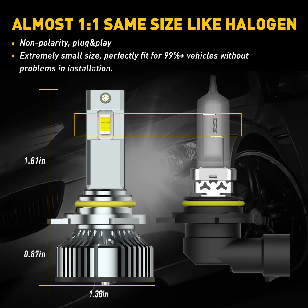 AUXITO 9012 HIR2 LED Headlight Bulb,120W 24000 Lumens, 700% Brighter, 6500K Cool White, Replace hi/lo Beam Halogen, Pack of 2
