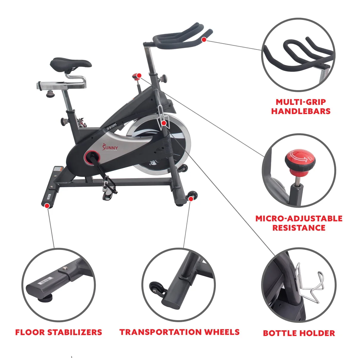 Sunny Health & Fitness Stationary Belt Drive Indoor Cycling Exercise Bike with 40 Lb., Flywheel for Home Cardio Training, SF-B1509