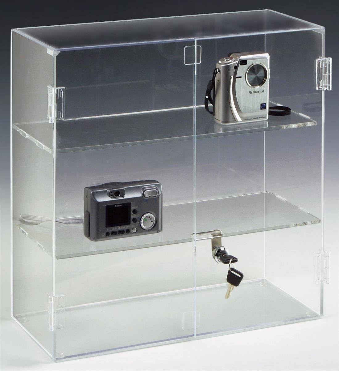 Displays2go 16.5 by 16.25-Inch Countertop Acrylic Display Case with 2 Shelves - Megean