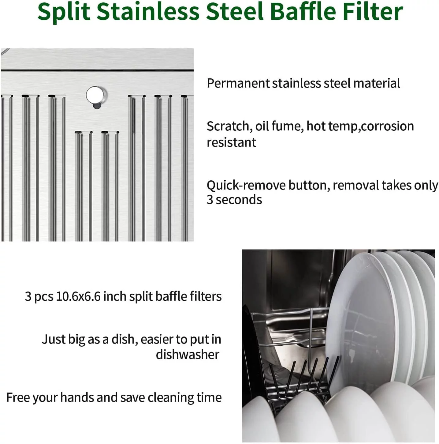 Range Hood Insert 36 inch 600CFM Stainless Steel Built-in Vent Hood Home Kitchen