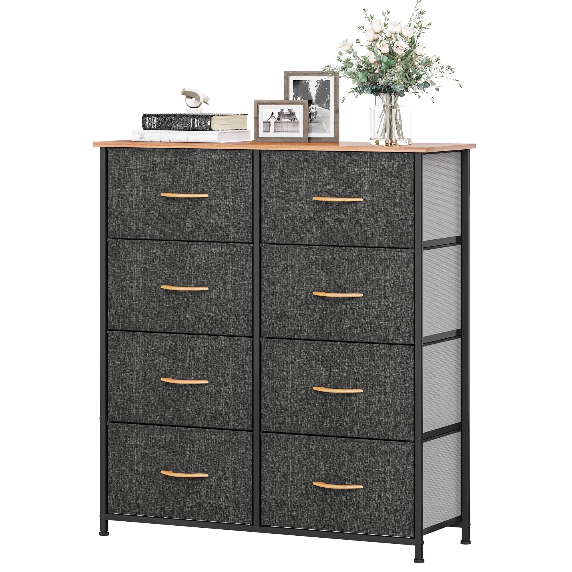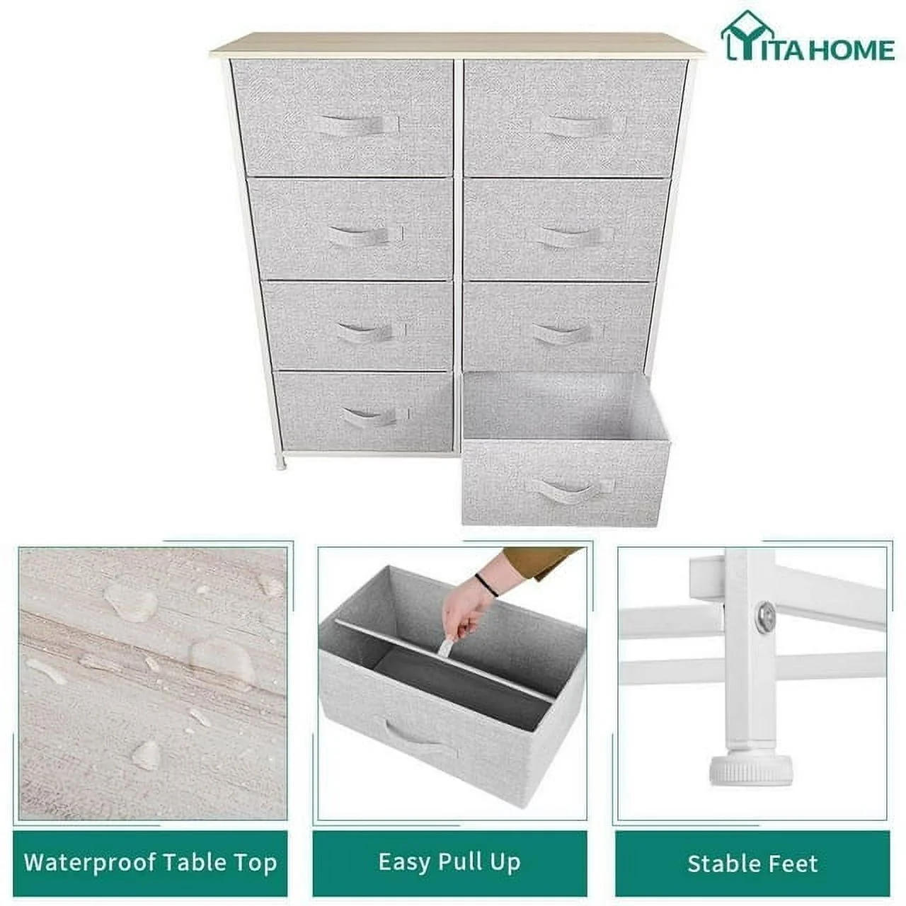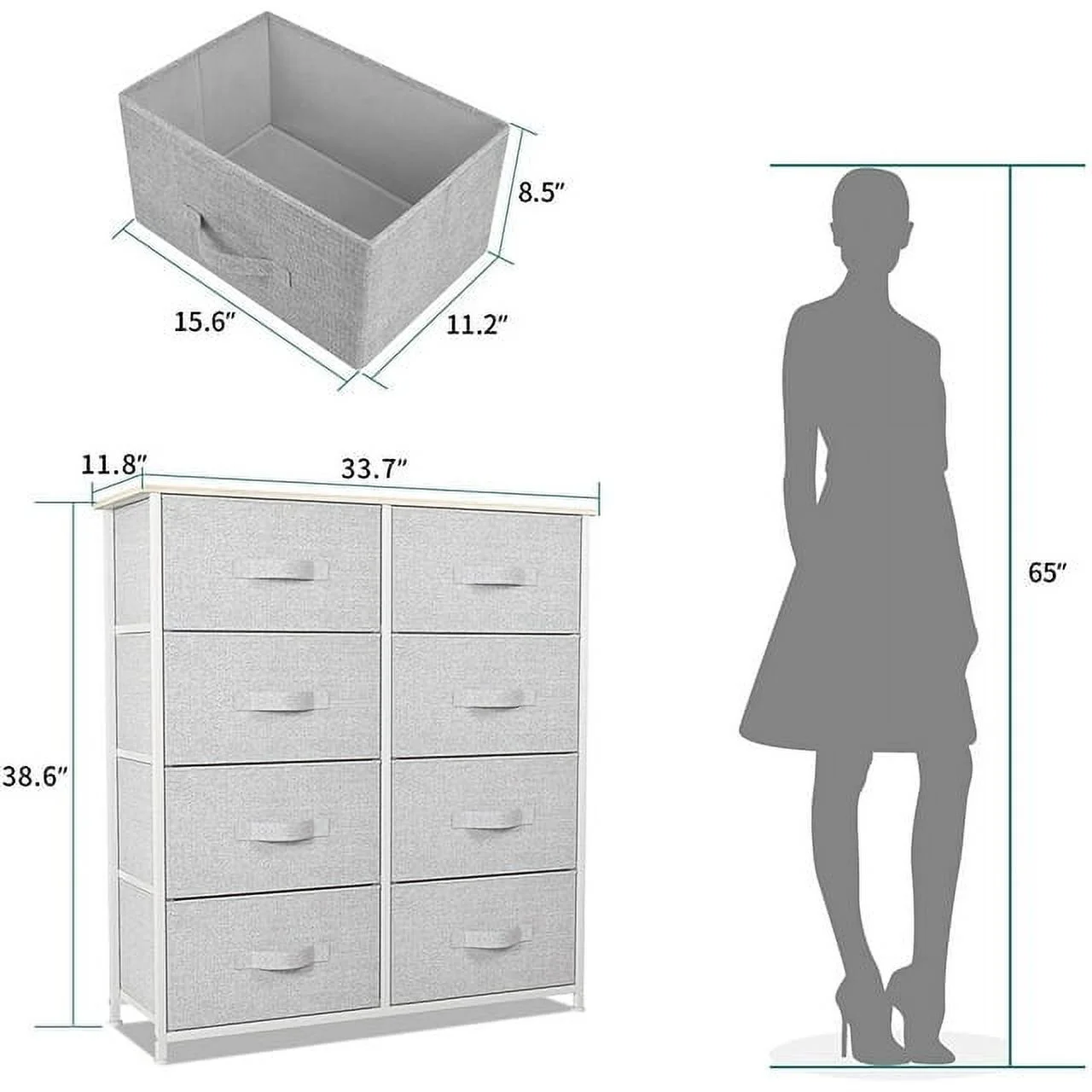 Dextrus High Storage Tower with 8 Fabric Drawers Organizer Unit Steel Frame, Light Gray