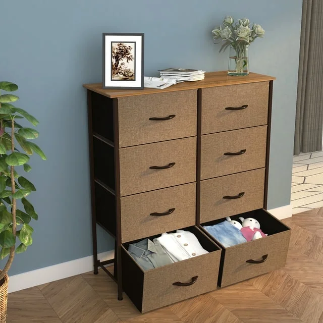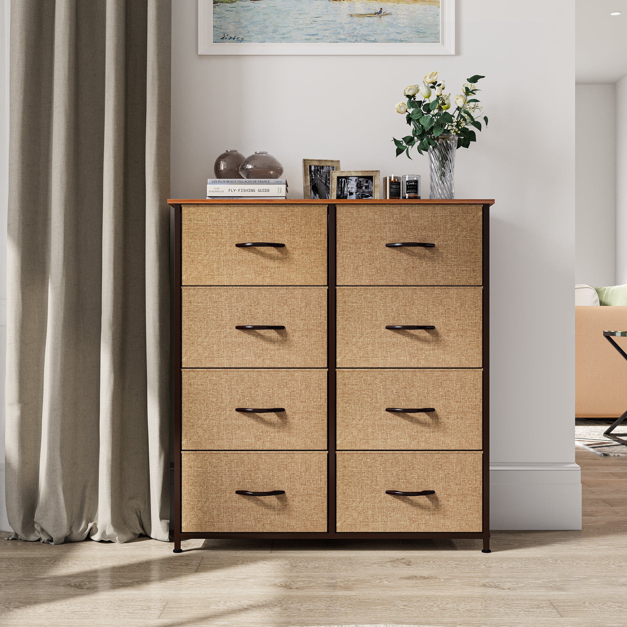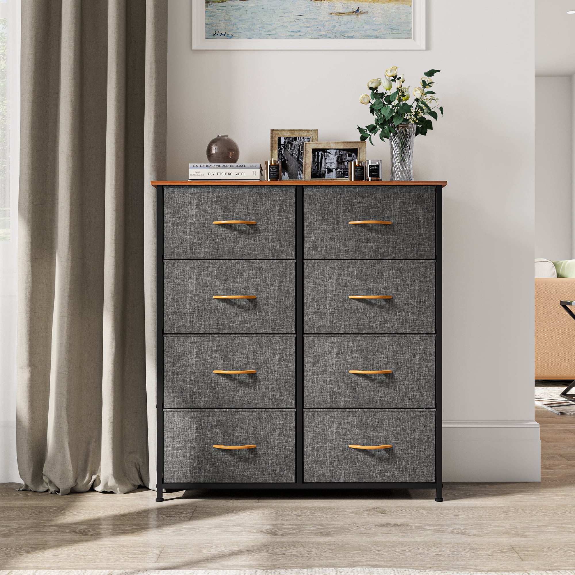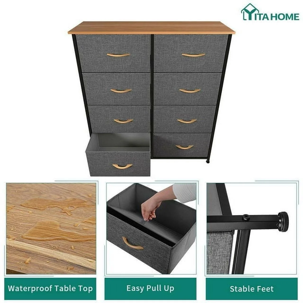 Dextrus High Storage Tower with 8 Fabric Drawers Organizer Unit Steel Frame, Light Gray