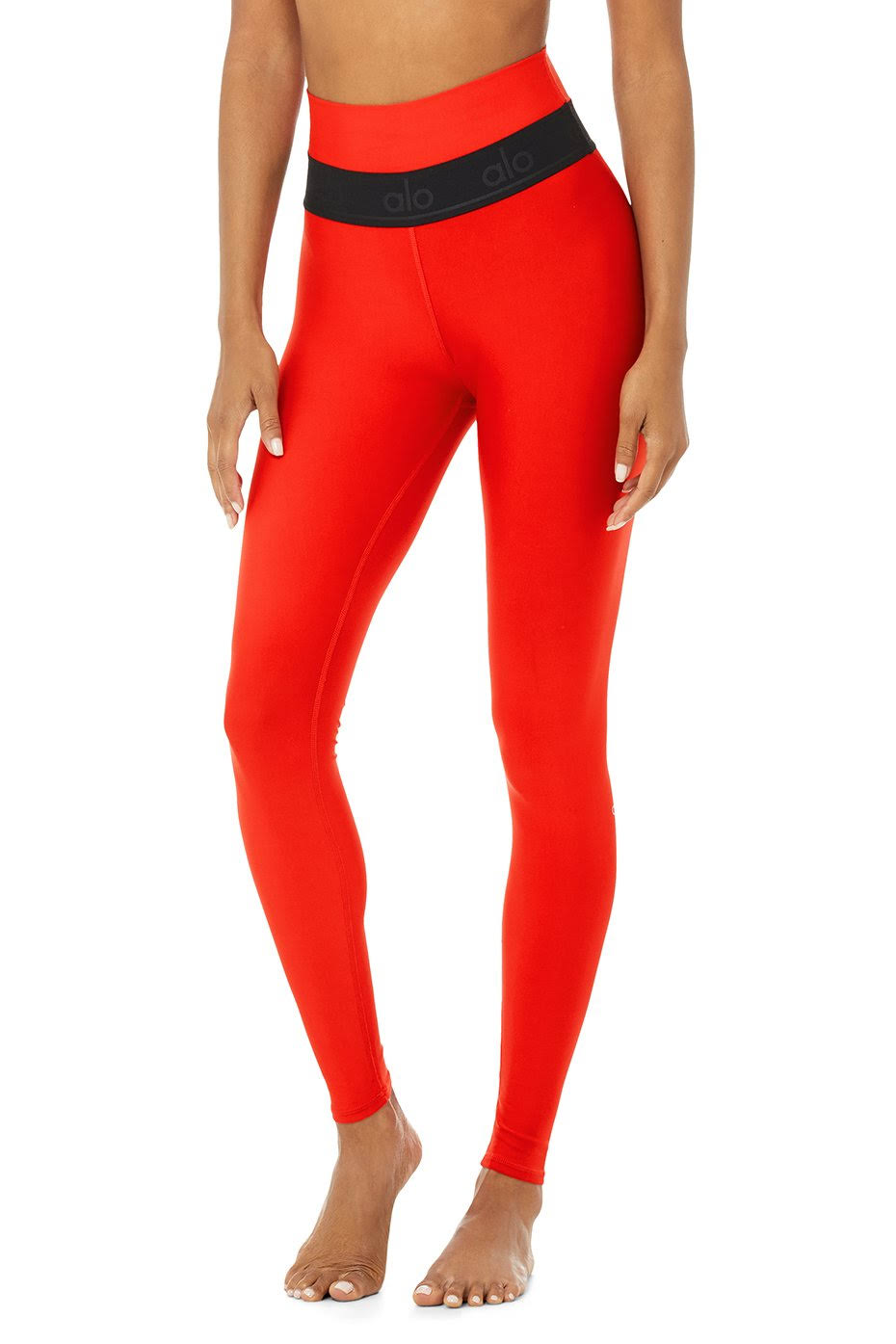 Alo Yoga | High-Waist Fitness Legging in Cherry/Black, Size: Large - Megean