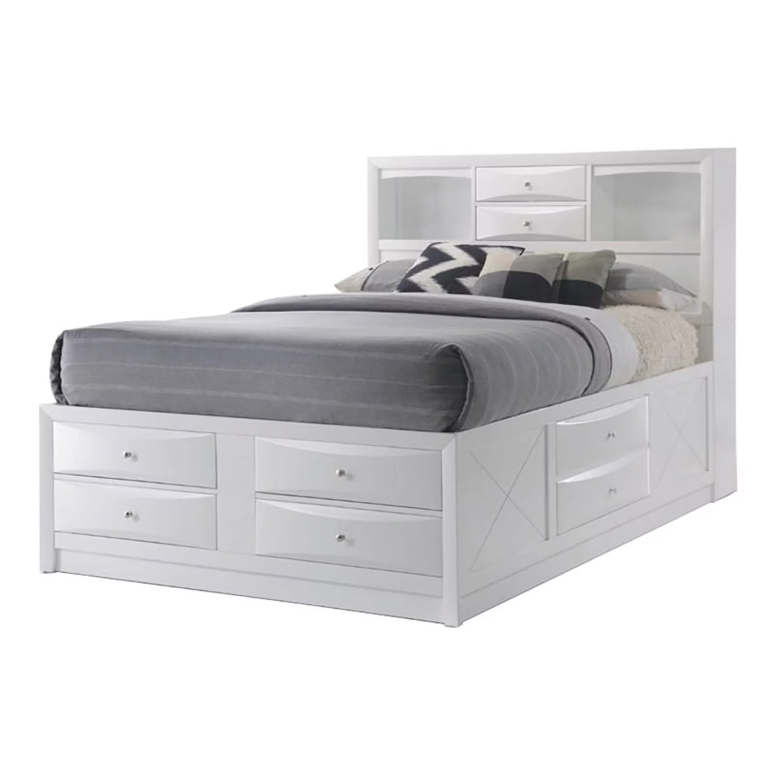Pemberly Row Transitional Wood Queen Bed with Storage in White