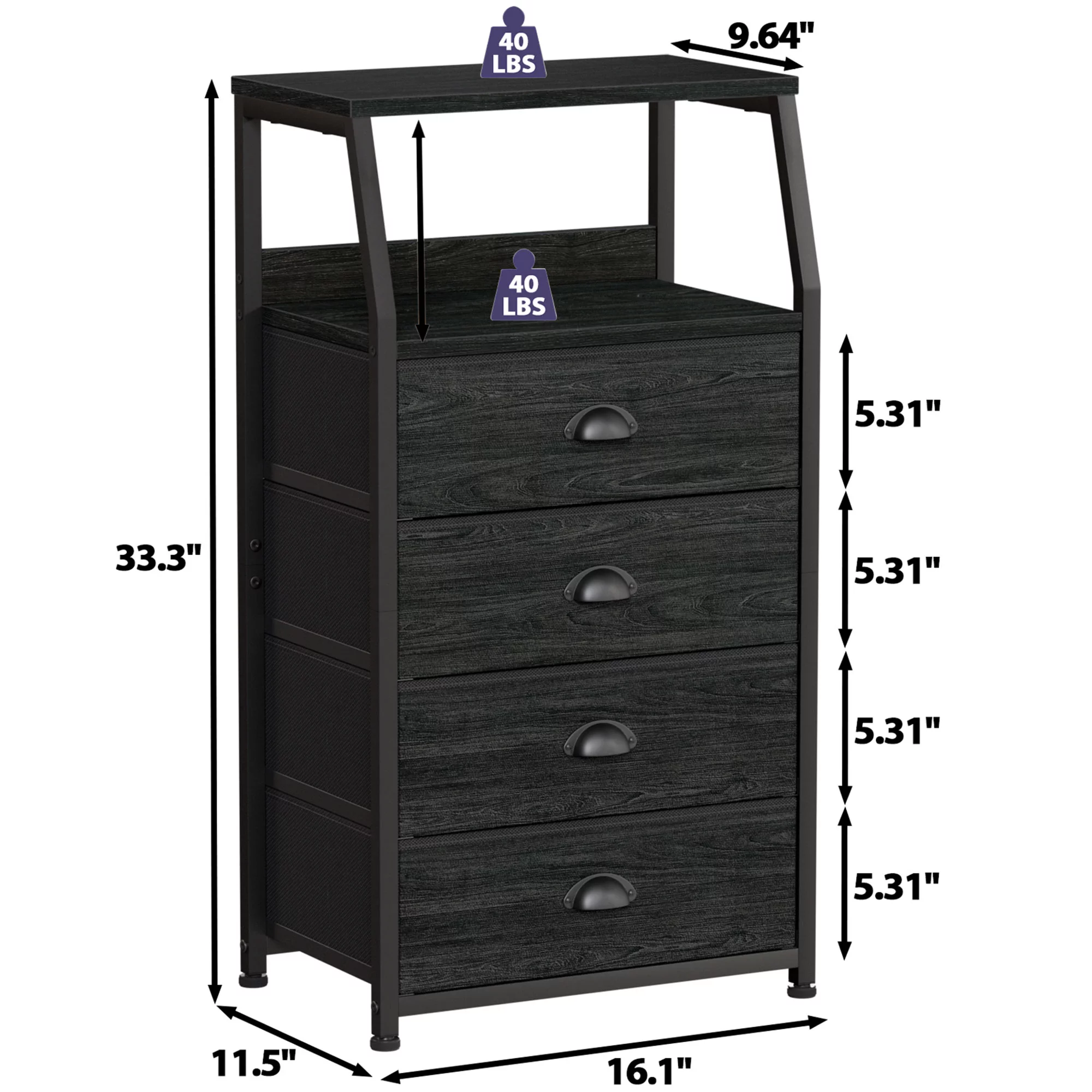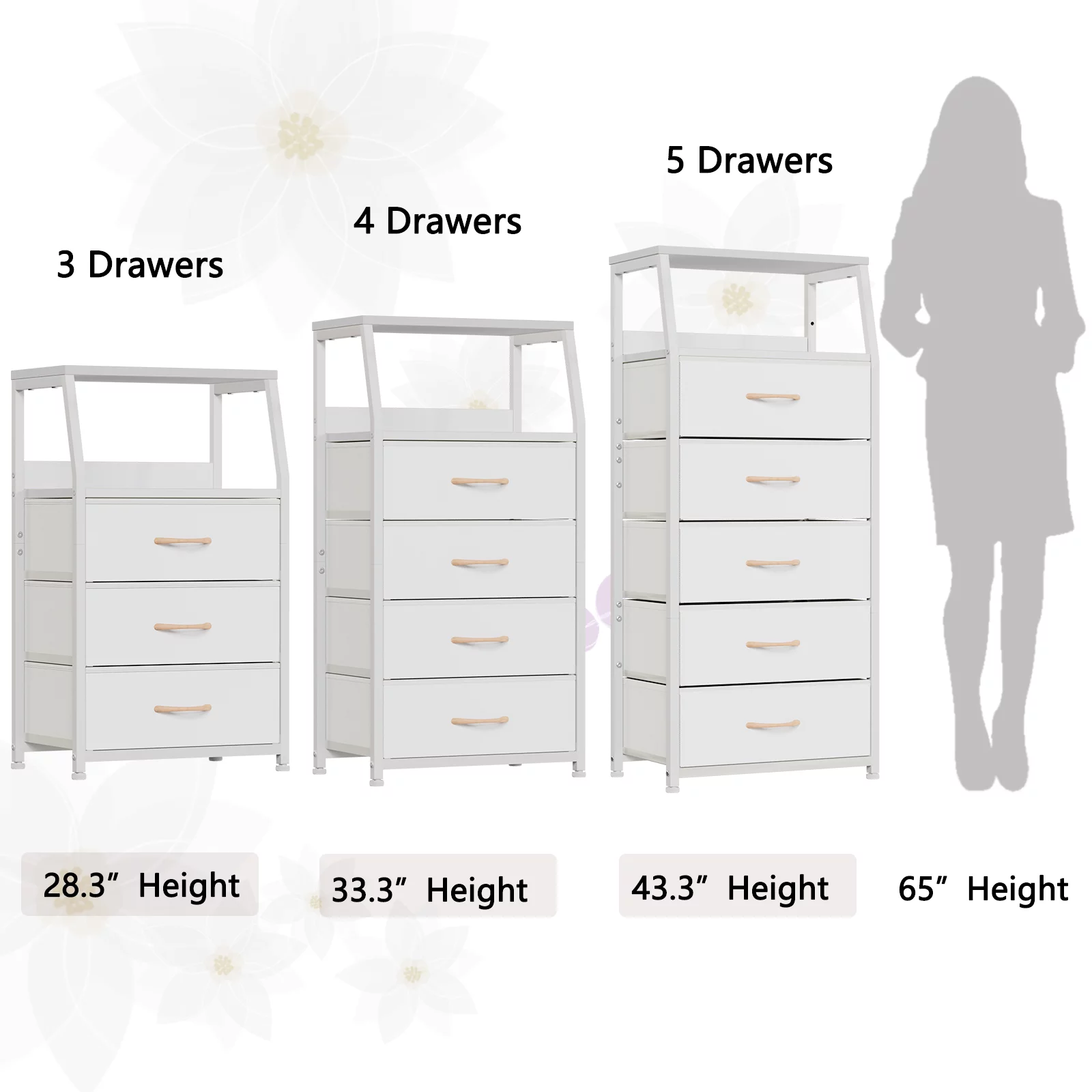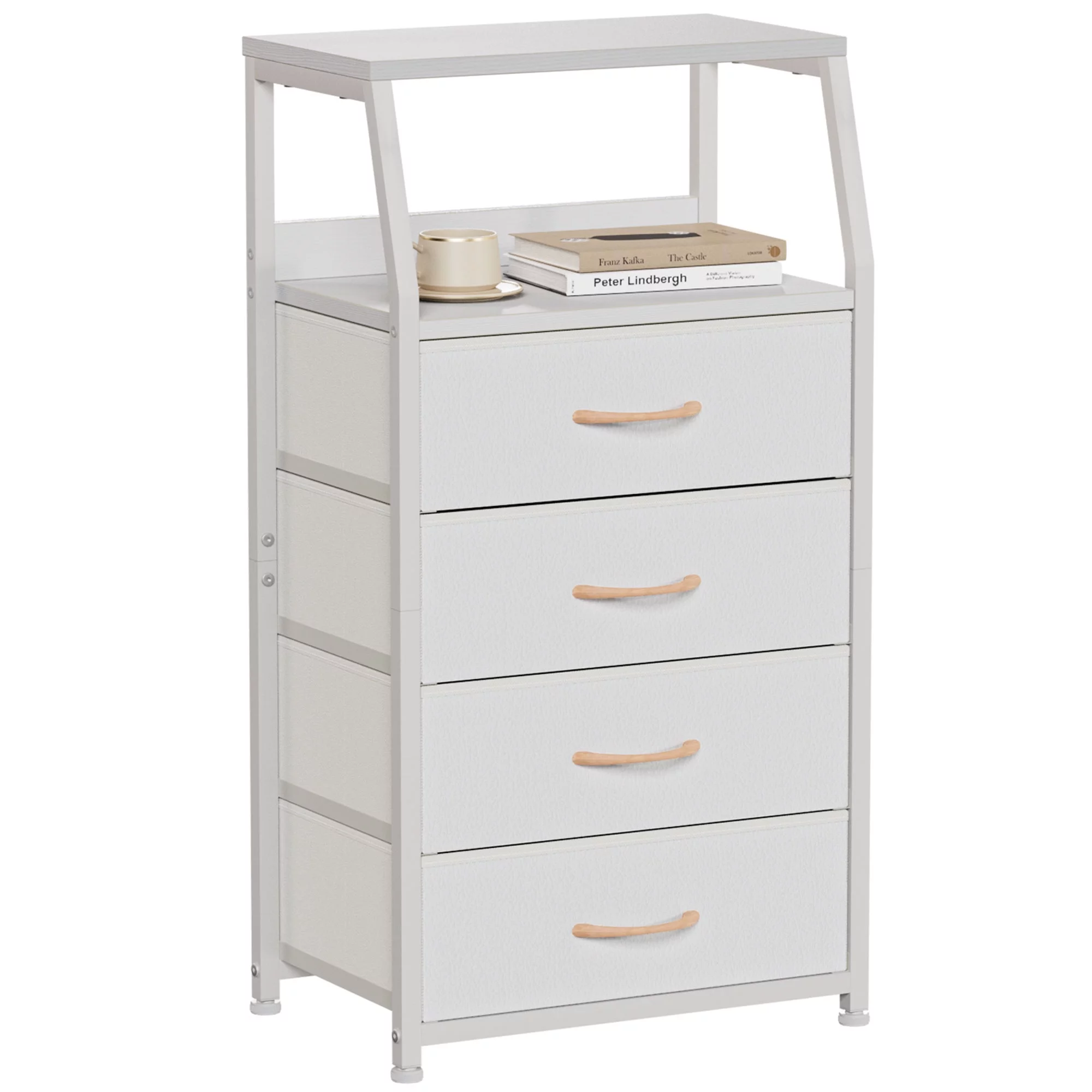 Furnulem White 4-Drawer Dresser Fabric, Adults Bedside Table, Sturdy Kids Bedroom Nightstand, Vertical Storage Tower for Living Room