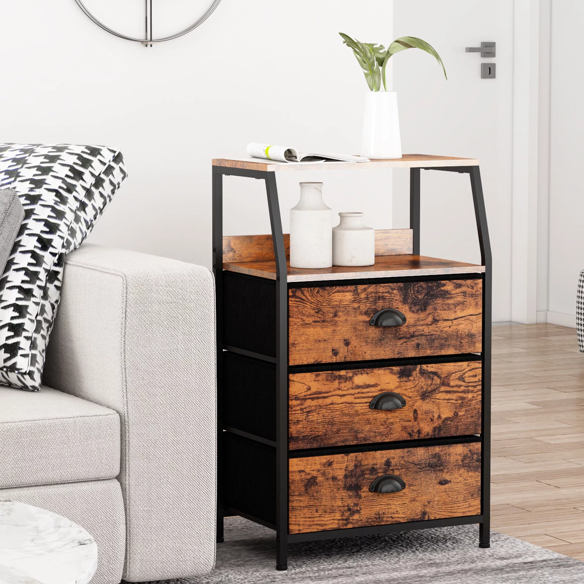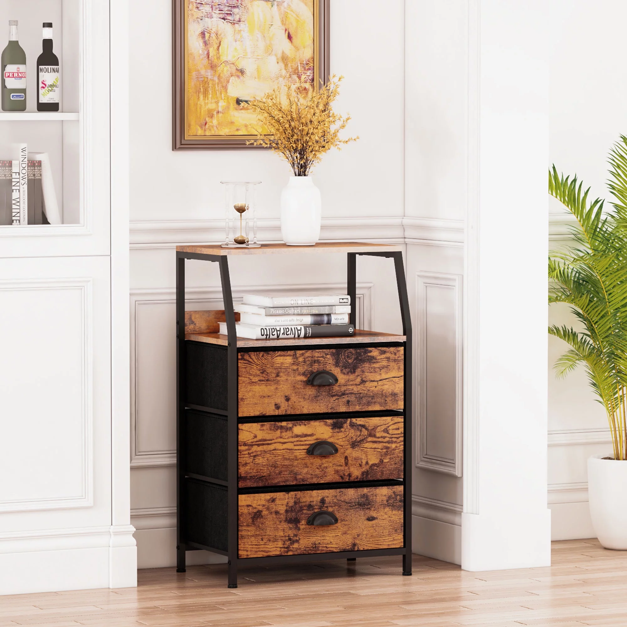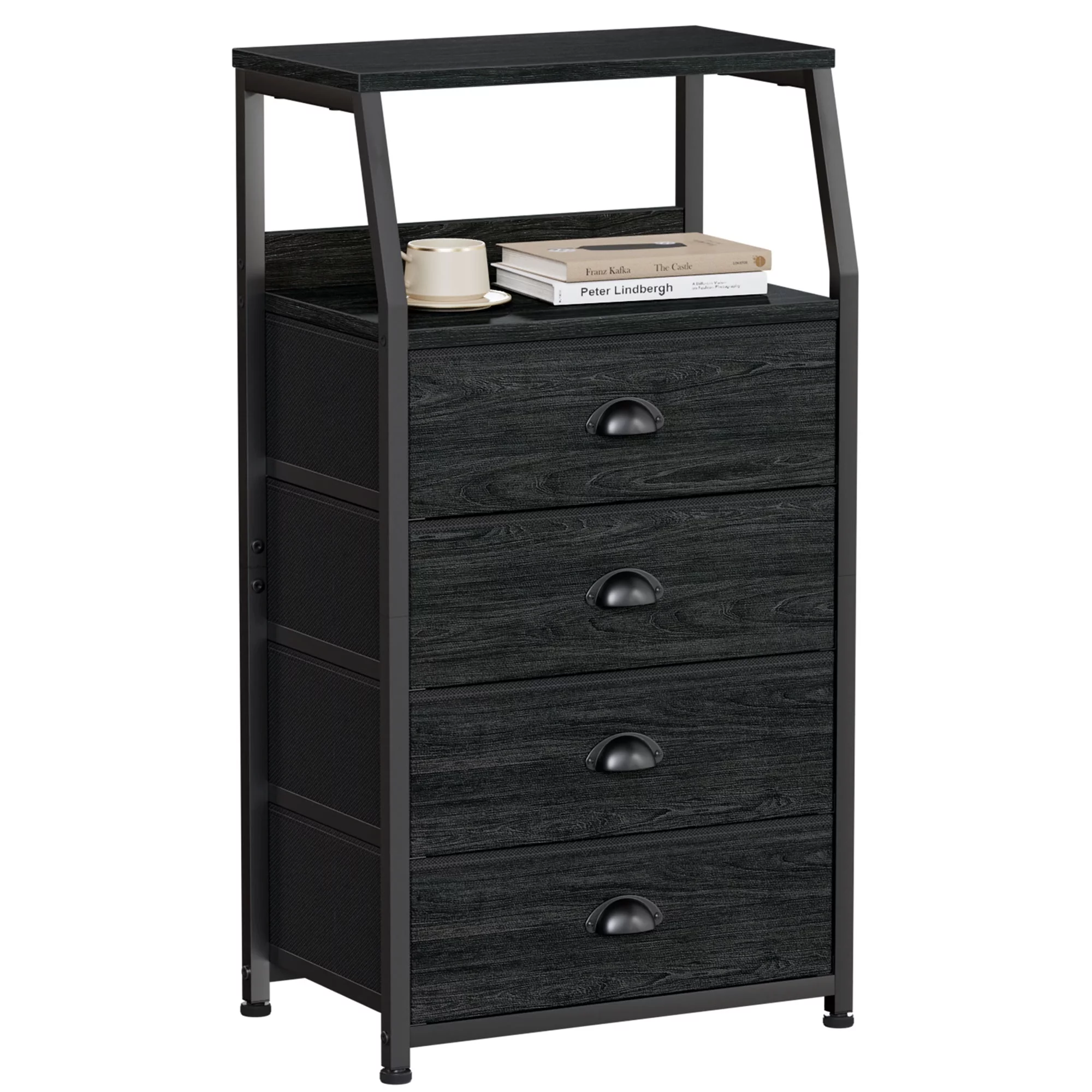 Furnulem White 4-Drawer Dresser Fabric, Adults Bedside Table, Sturdy Kids Bedroom Nightstand, Vertical Storage Tower for Living Room