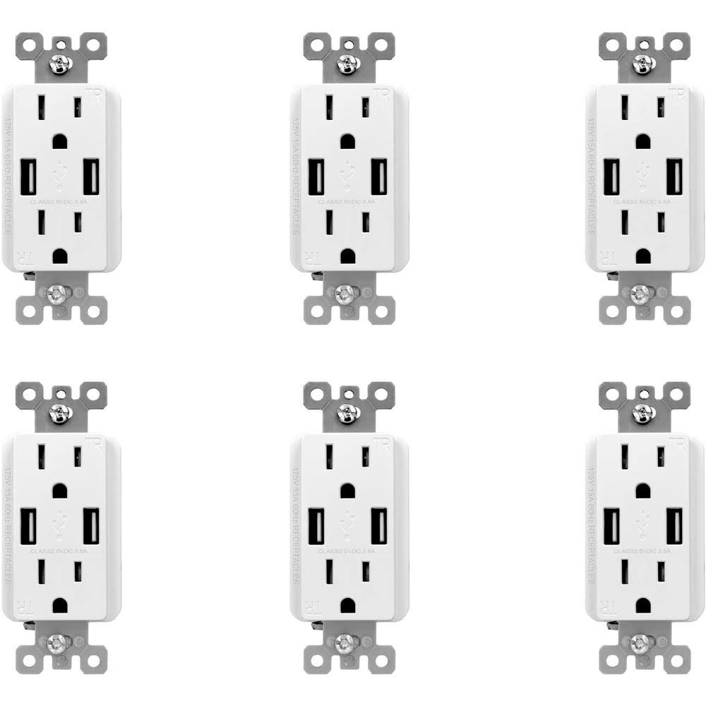 Commercial Electric 3.6 Amp Dual USB Charger and 15 Amp Receptacle White 6-Pack - Avayadevconnect