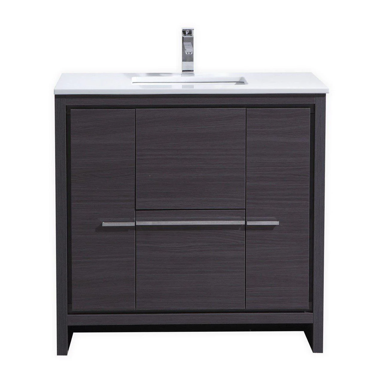 KubeBath Dolce 36 in. Modern Bathroom Vanity with White Quartz Counter Top - Gray Oak, AD636WB