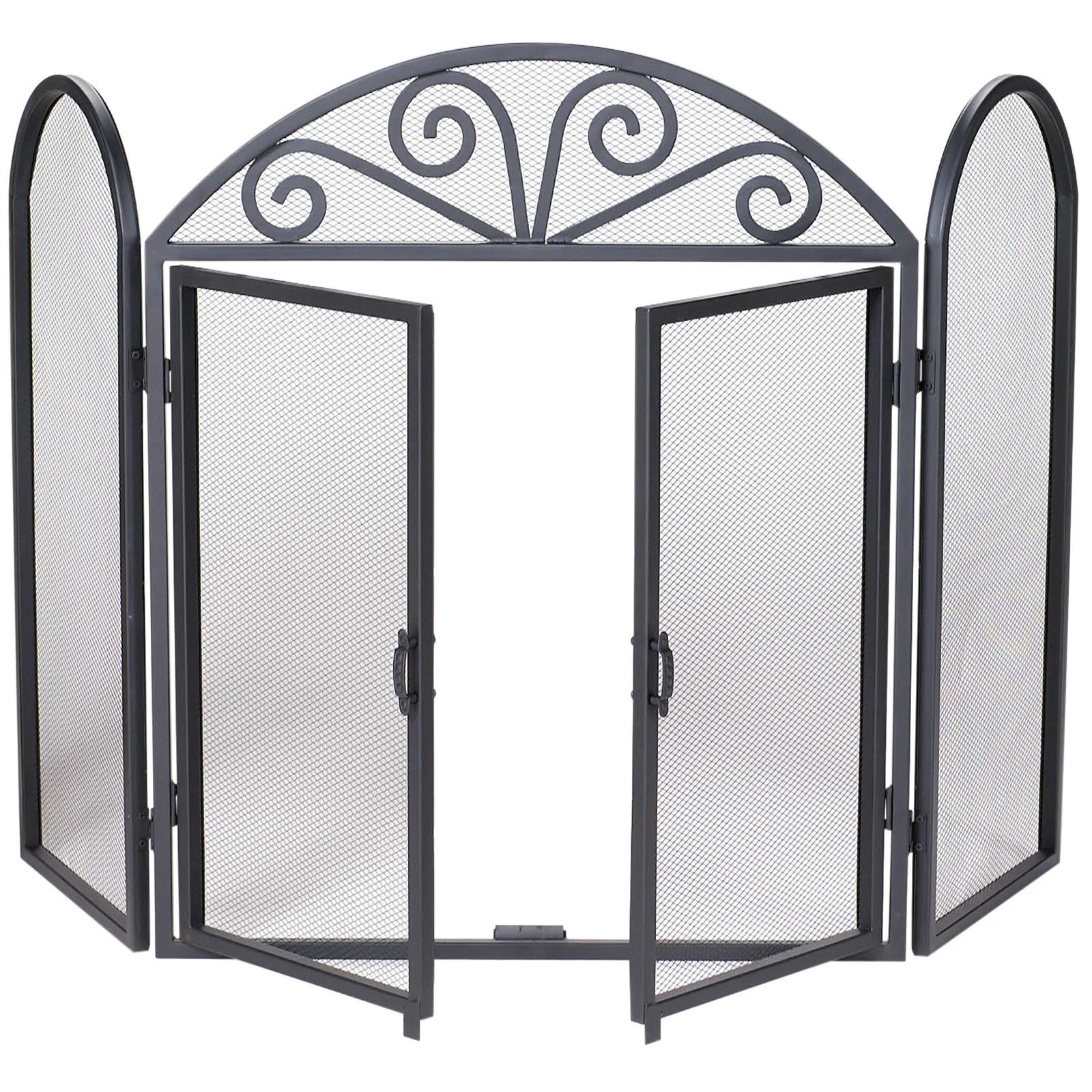 Uniflame 3 Fold Black Wrought Iron Screen with Scrolls - Avayadevconnect